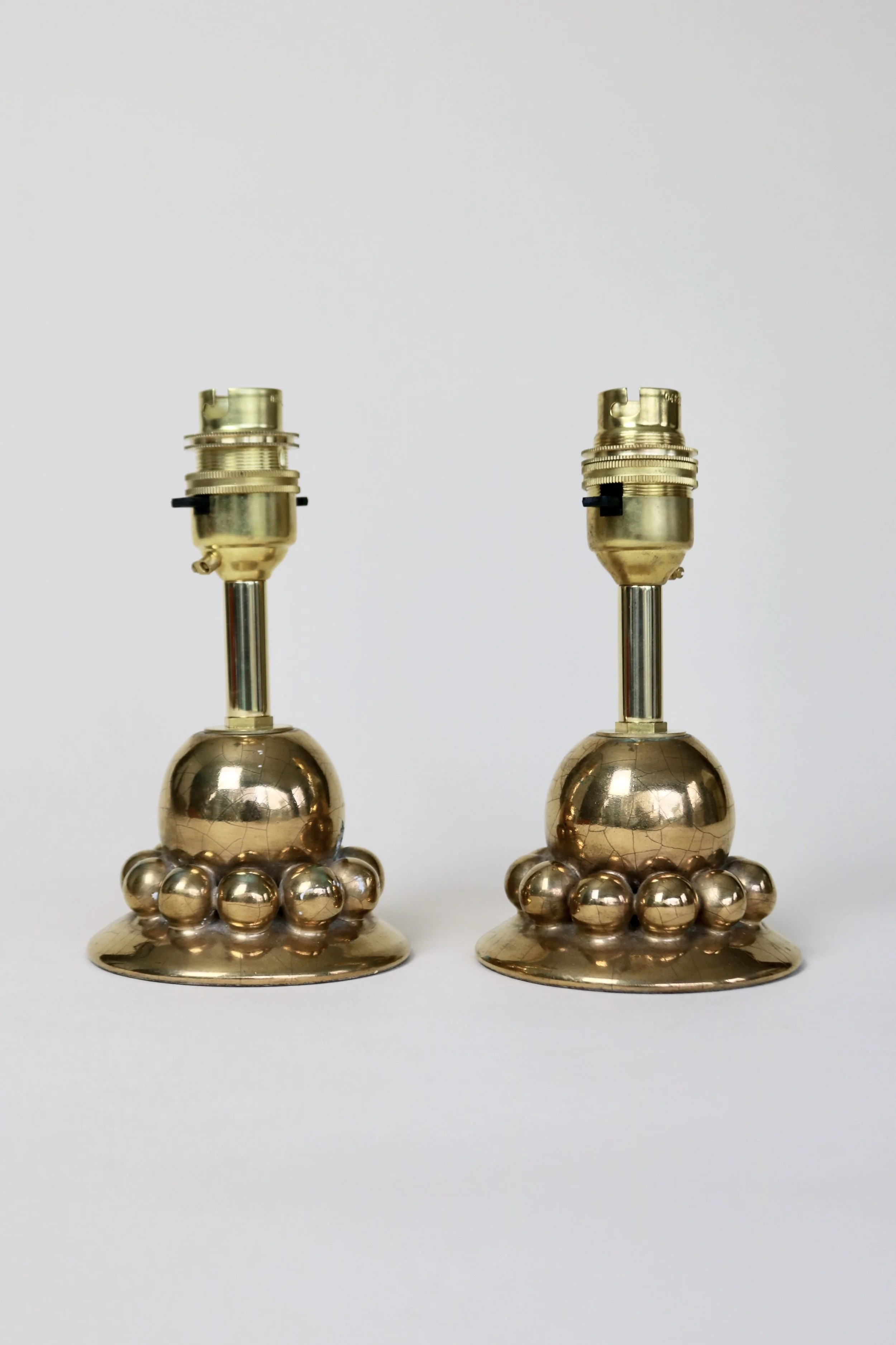 A pair of ceramic lamps with a gold crackle glaze by Kaza France 1920s.