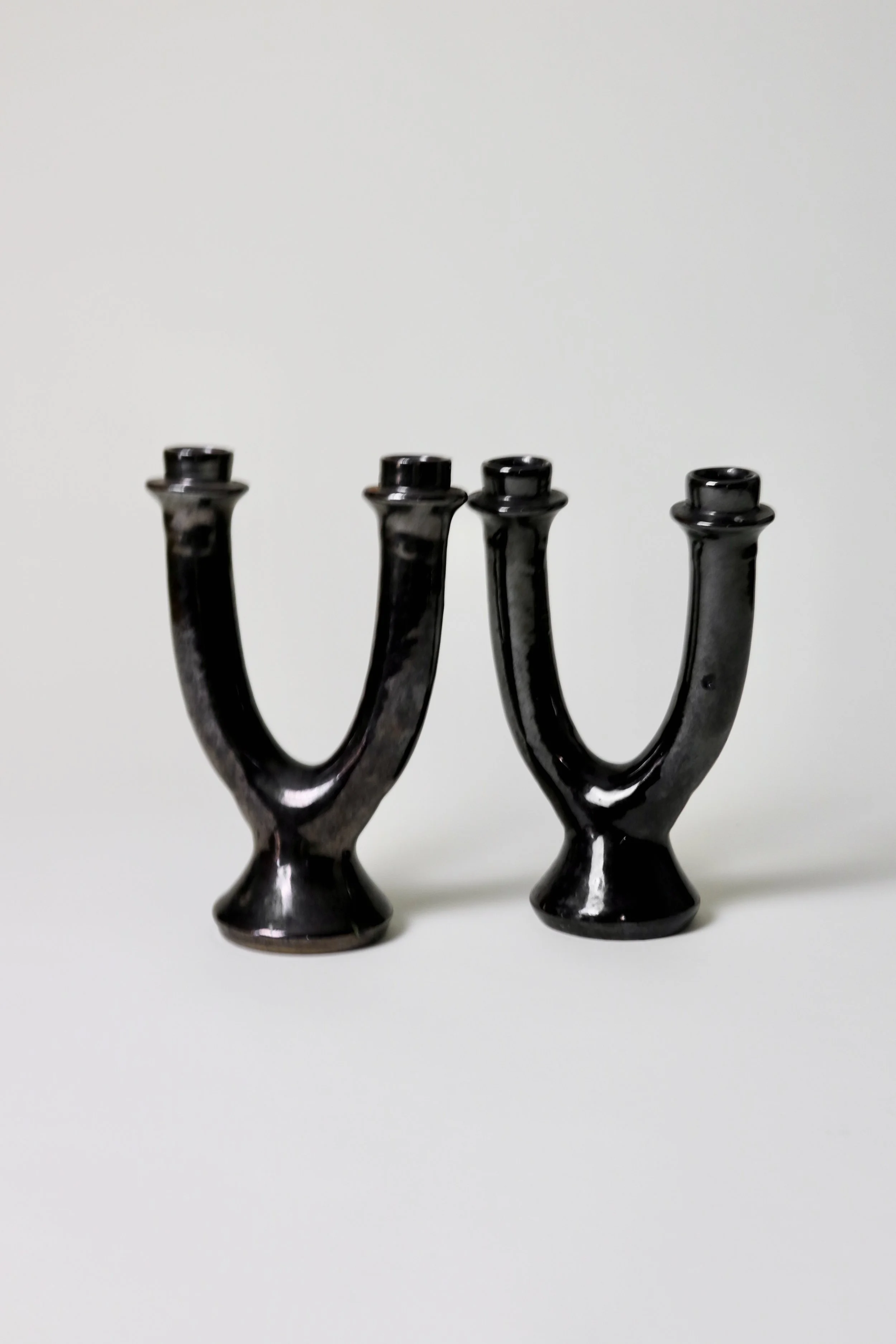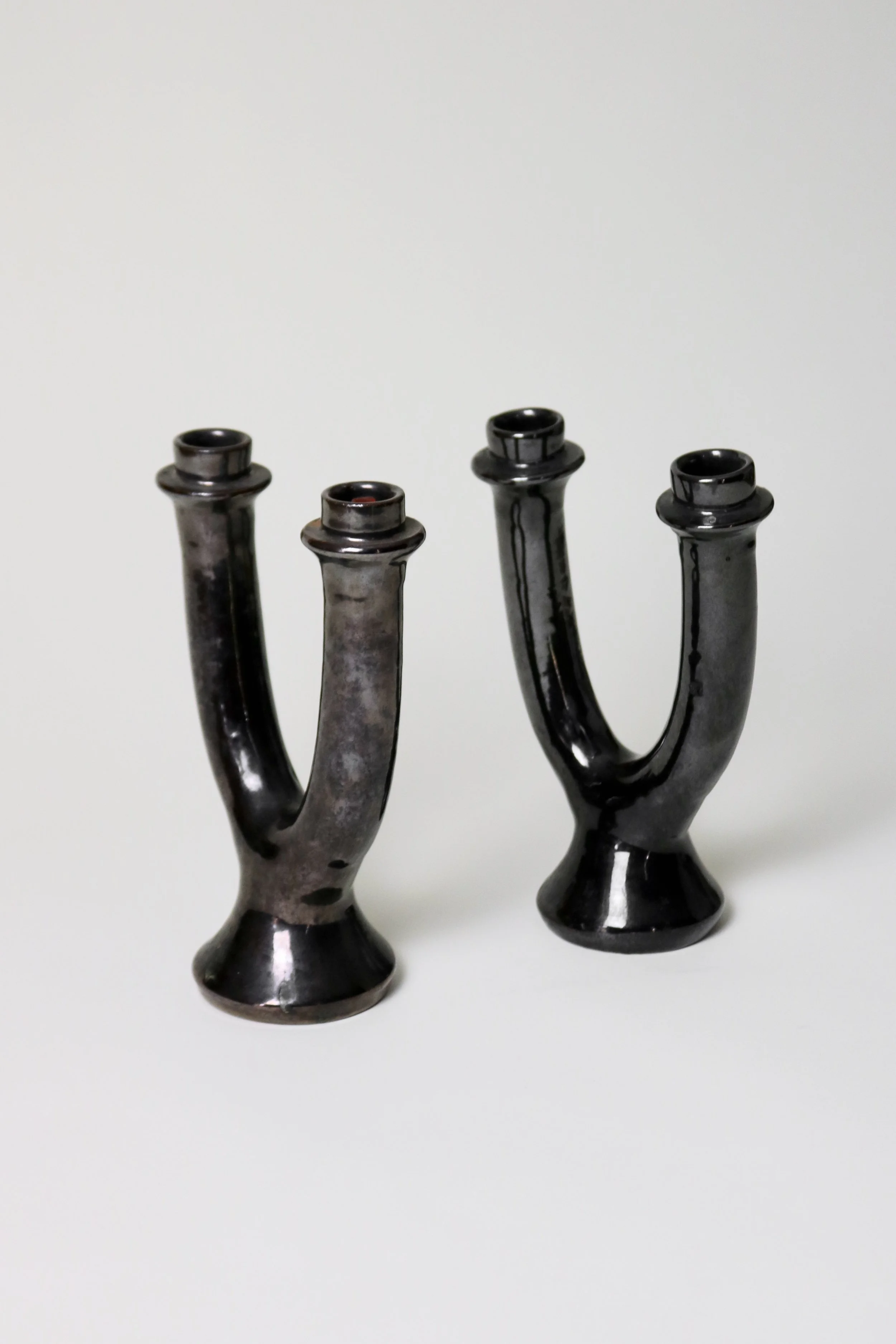 They were handmade in Poland and differ very slightly from one another. One has a slight lean.