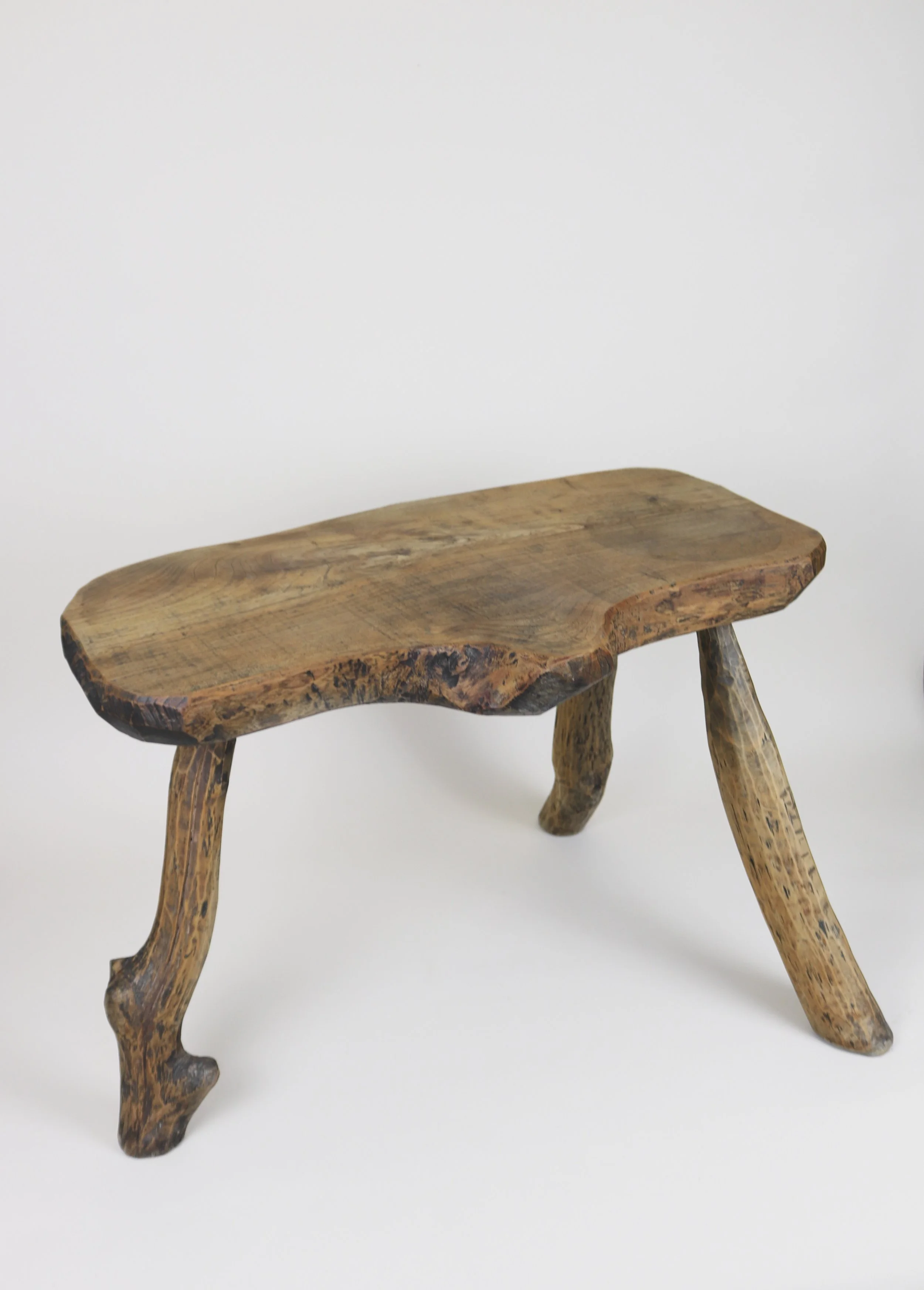 A French Elm bench, knocked up by a farmer for resting whilst at work. This one was used on a farm in Normandy up until recent years.