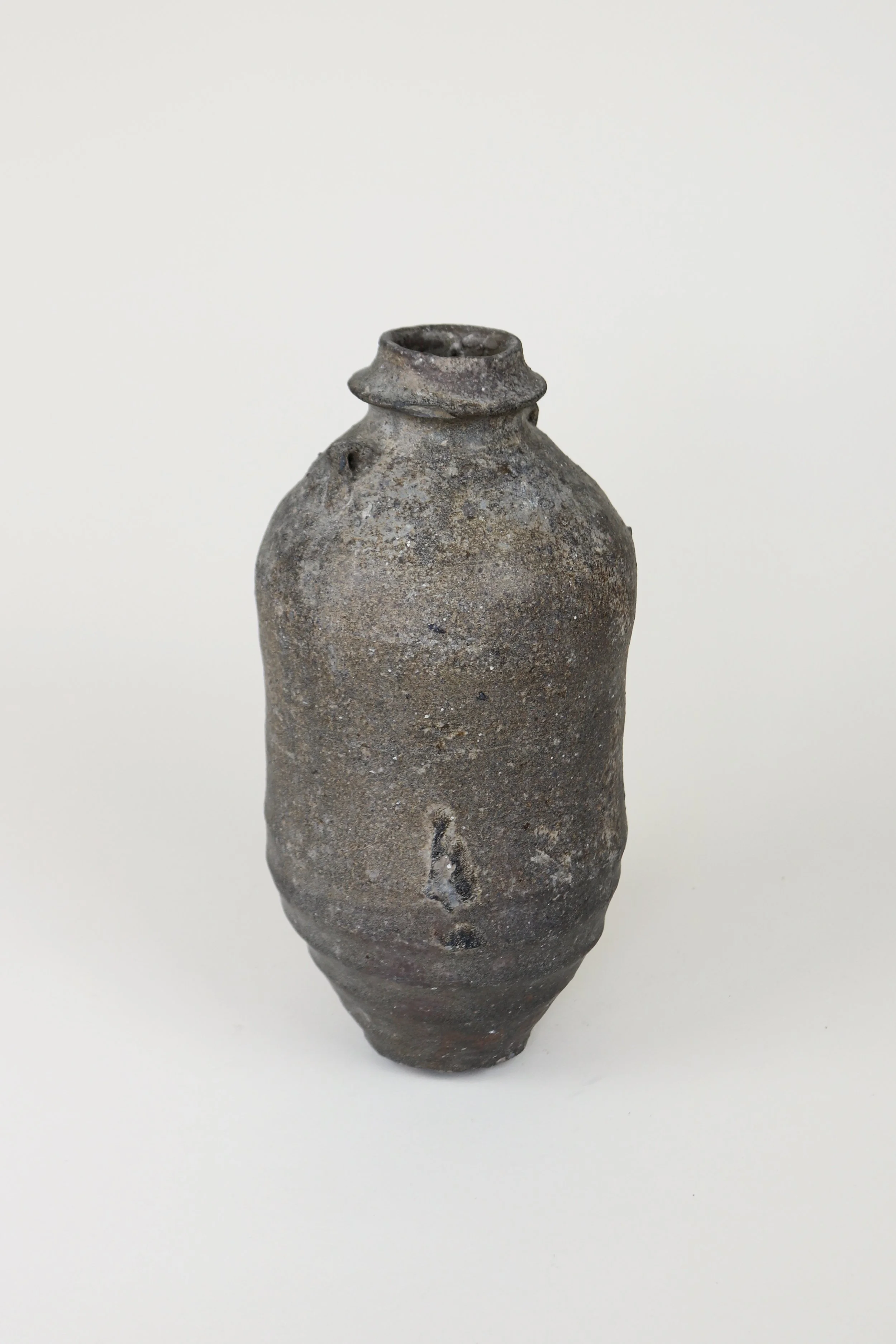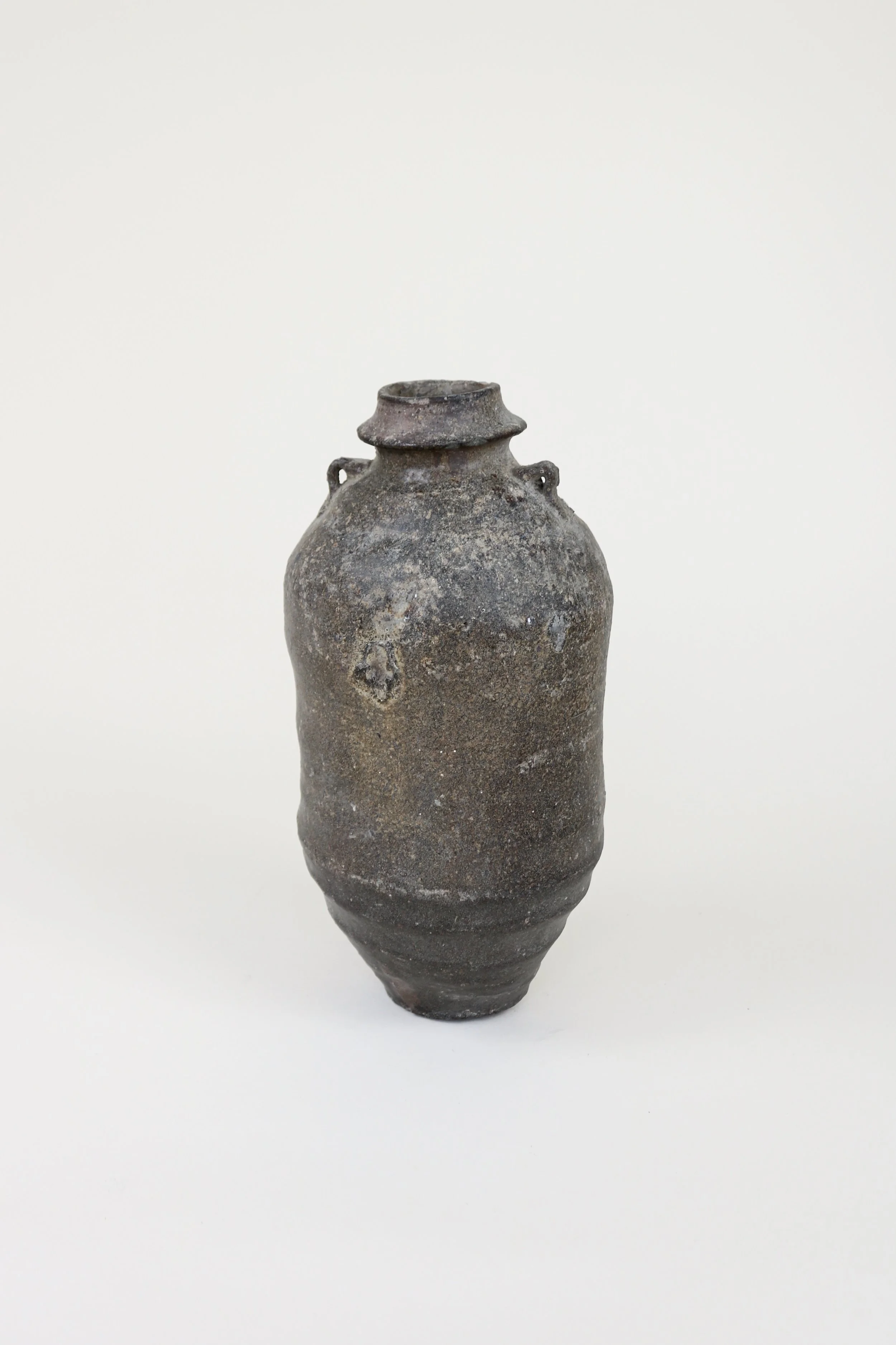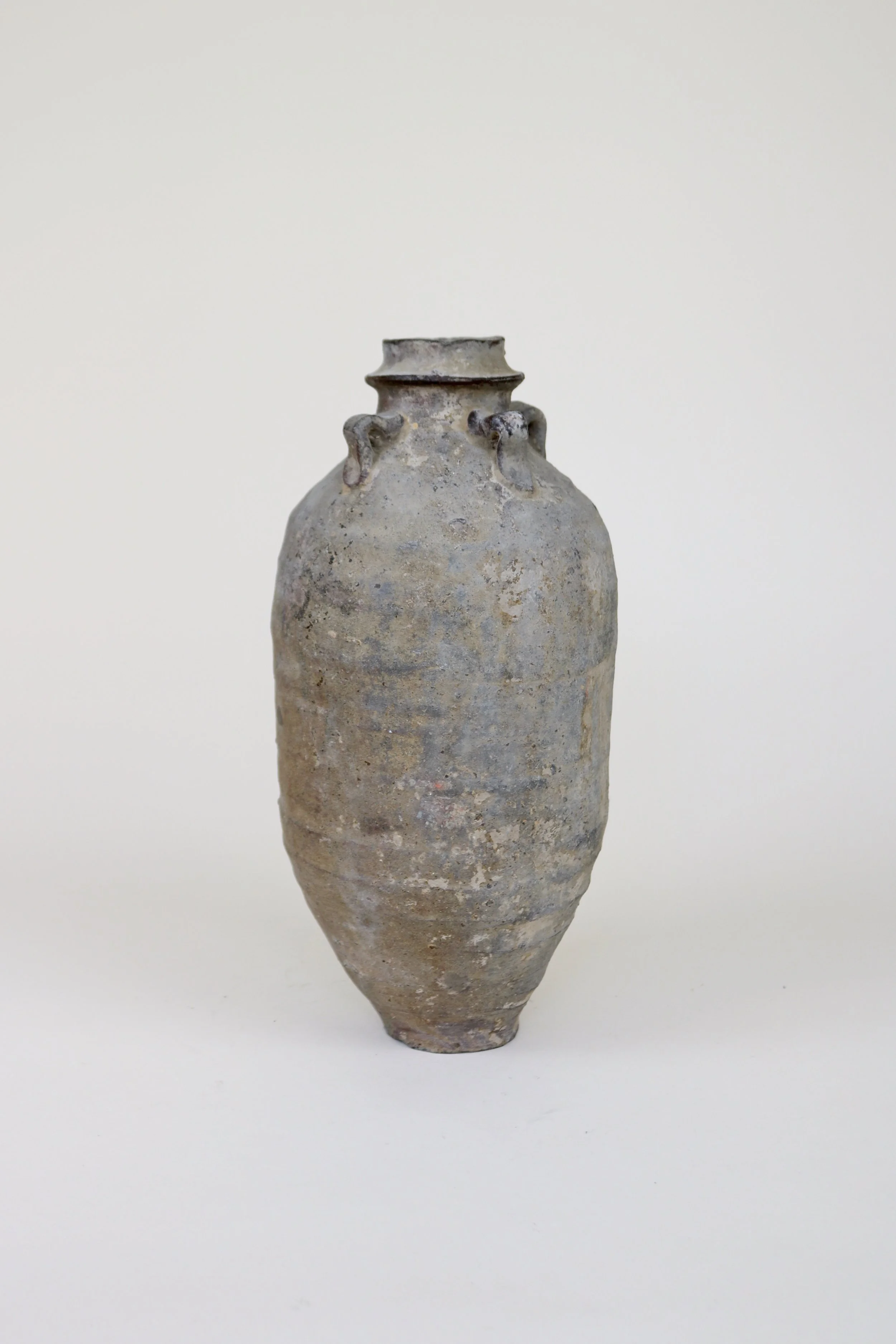 These Han Dynasty vessels are thought to be made around 2000 years ago and retrieved from burial sights. The ‘Cigar’ shaped vessels have lug handles to the top and their irregular and imperfect forms show they were made quickly and used practically rather than decoratively.