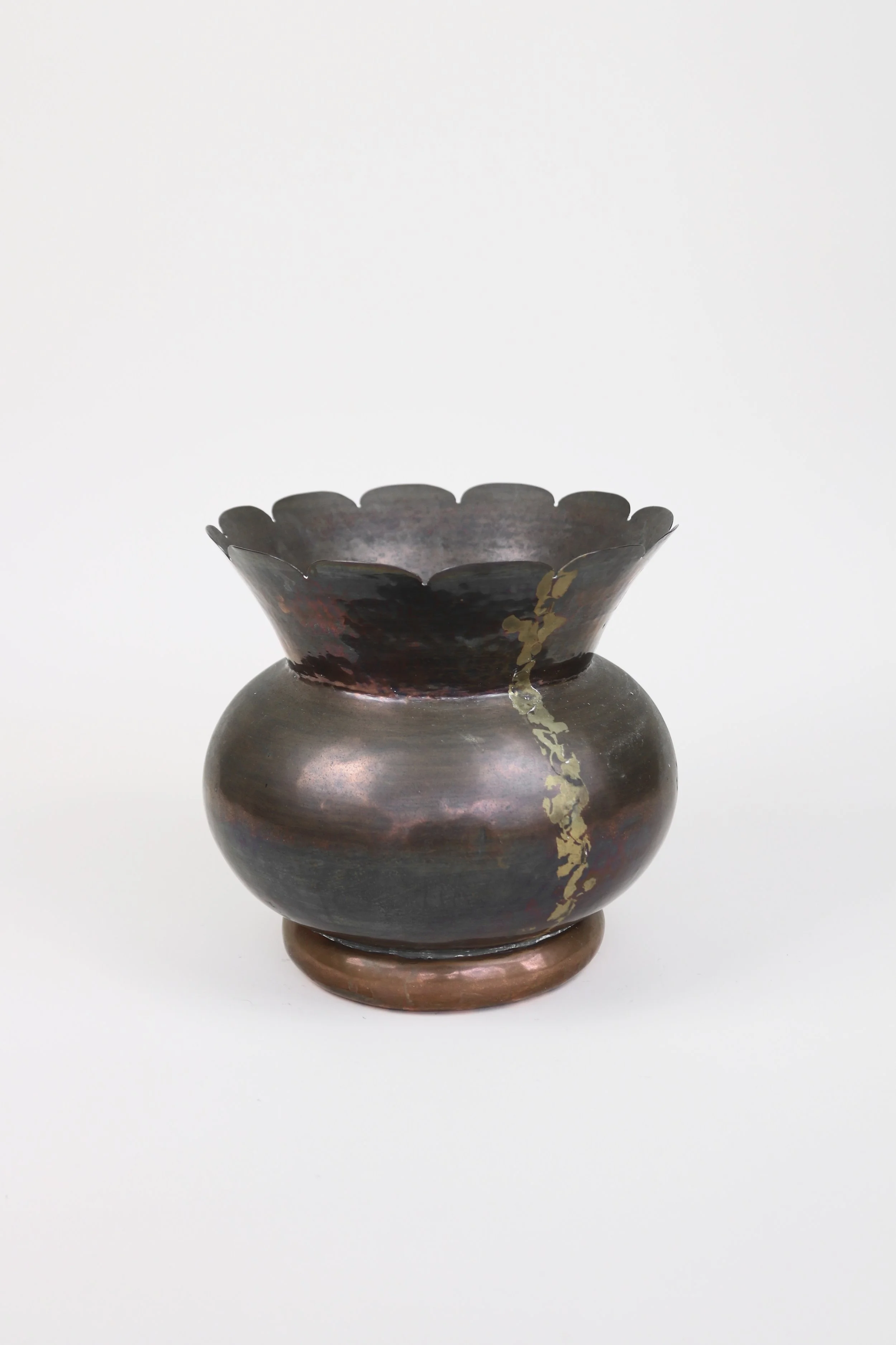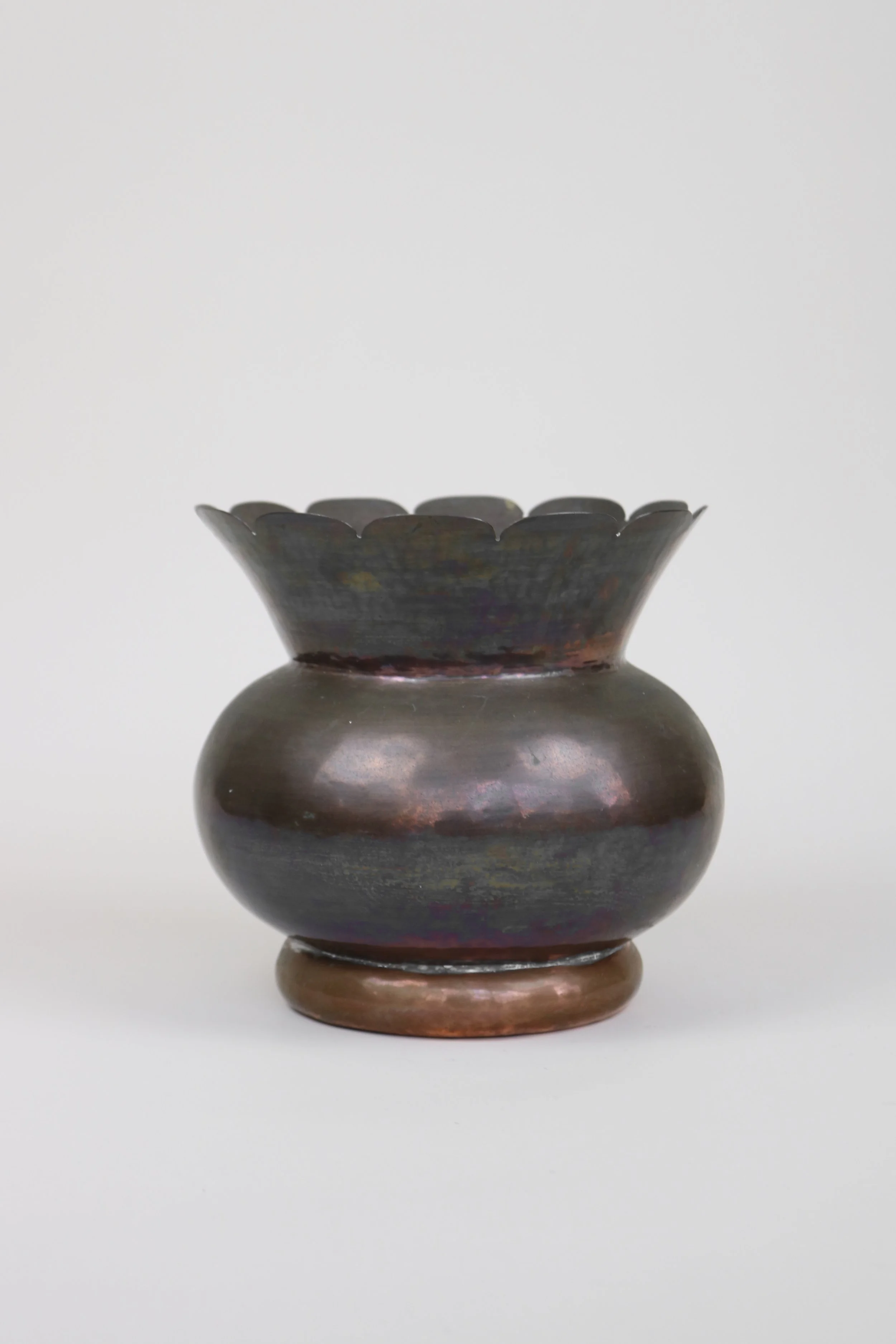 Archive › Scalloped Vase Image 1 of 5 Image 2 of 5 Image 3 of 5 Image 4 of 5 Image 5 of 5 Scalloped Vase £95.00 sold out A French copper vase with a scalloped edge.H 18.5cmW 19cm Sold Out Added! A French copper vase with a scalloped edge.H 18.5cmW 19cm