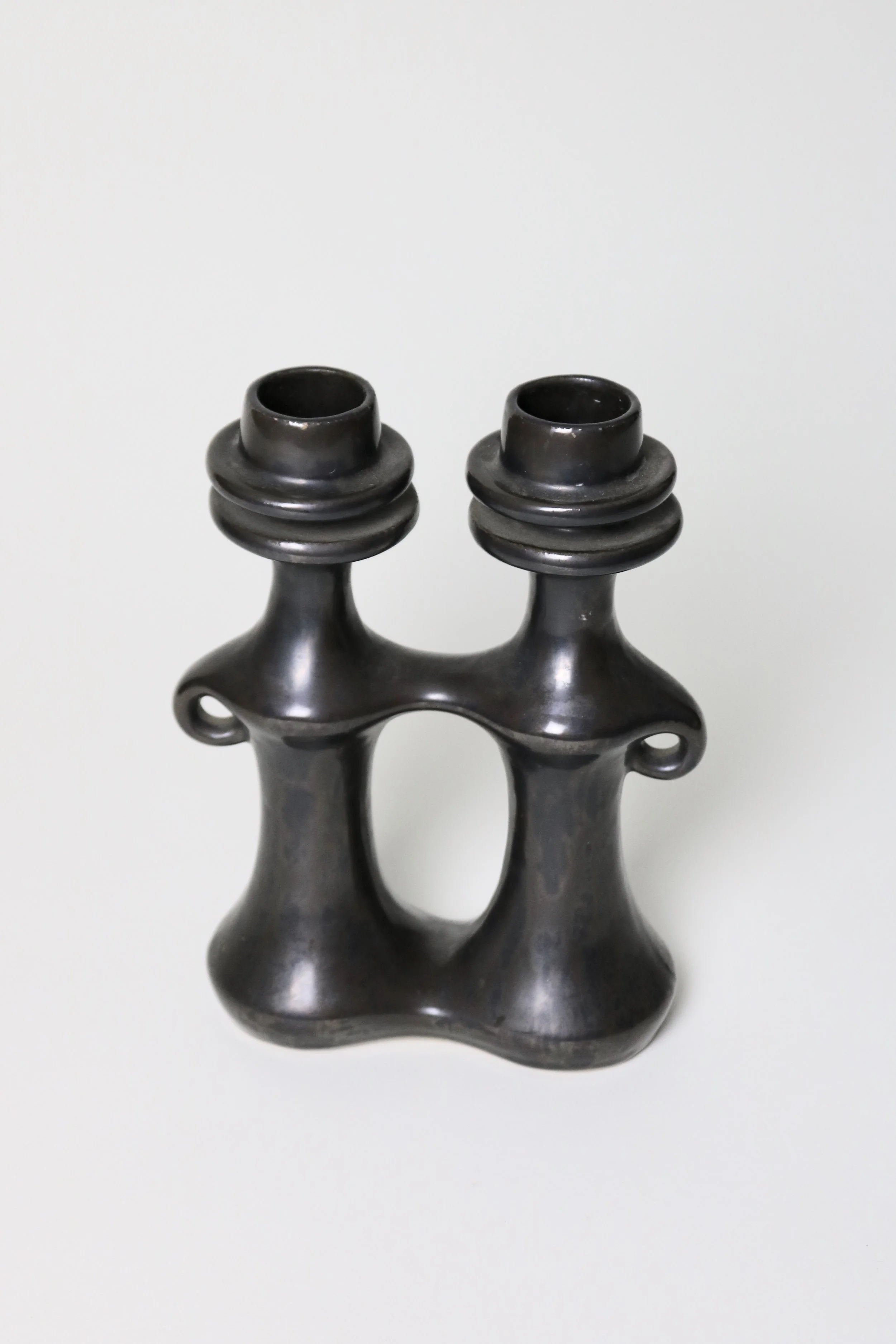 Archive › Double Candlestick Image 1 of 5 Image 2 of 5 Image 3 of 5 Image 4 of 5 Image 5 of 5 Double Candlestick £145.00 sold out A double candlestick with a figurative form and black lustre glaze. Made in France.for candles of 3cm.H 23cmW 16cm Sold Out Added! A double candlestick with a figurative form and black lustre glaze. Made in France.for candles of 3cm.H 23cmW 16cm