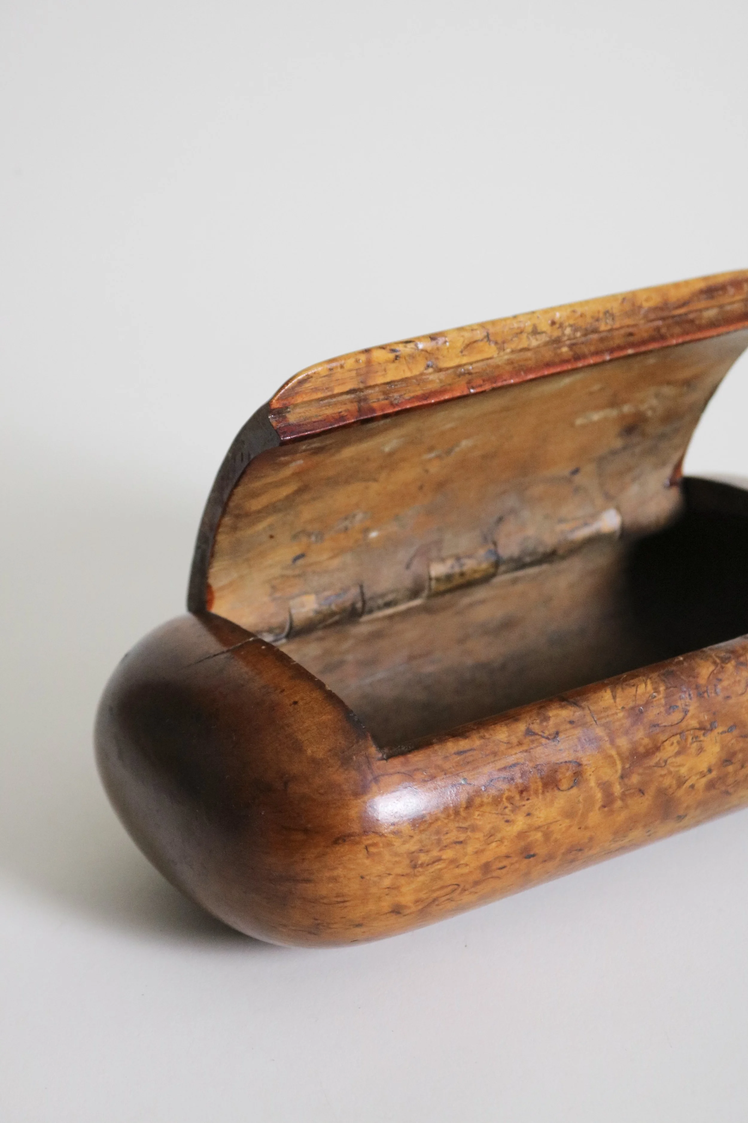 An antique Swedish large scale snuff box. Hand carved and likely used to hold a large amount of snuff in a smoking room.