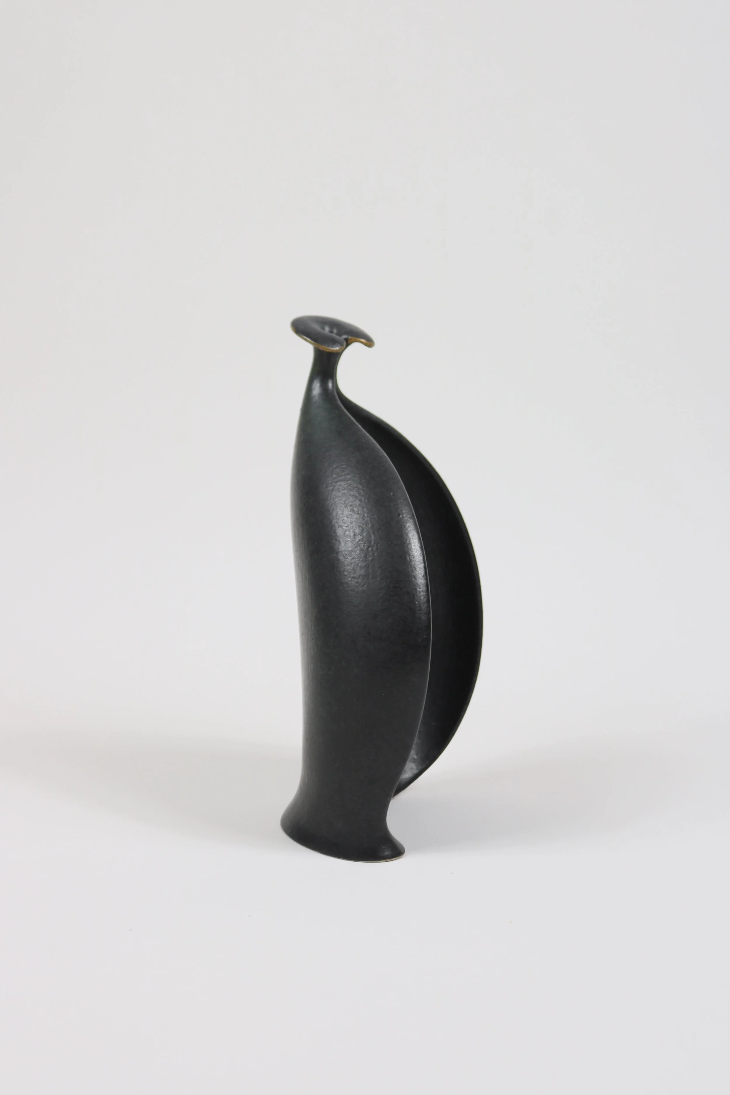 A beautifully elegant ceramic object made by artist Melanie Russ-Knels, Germany. The object shows undulating curves from every angle and has a beautiful organic form.