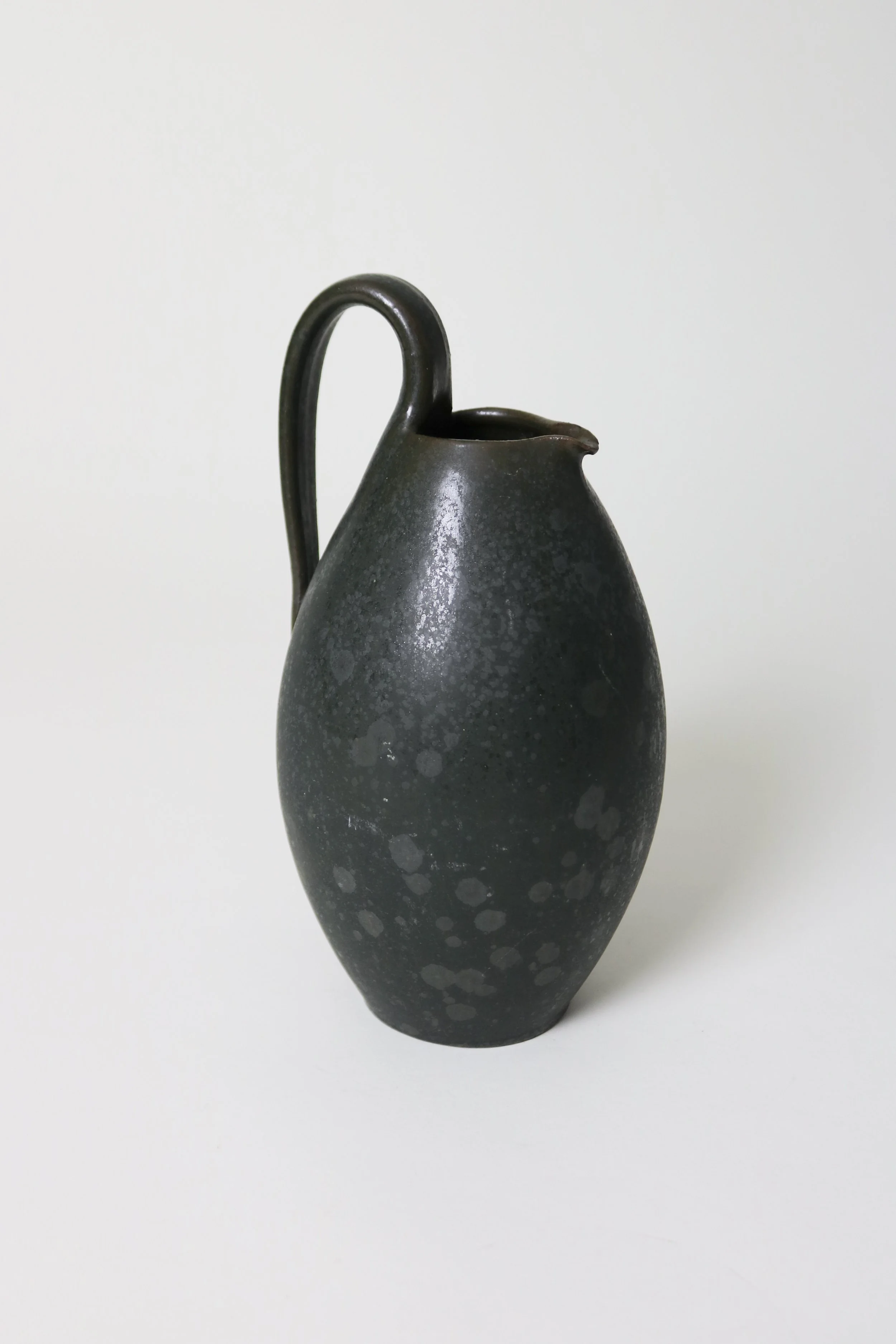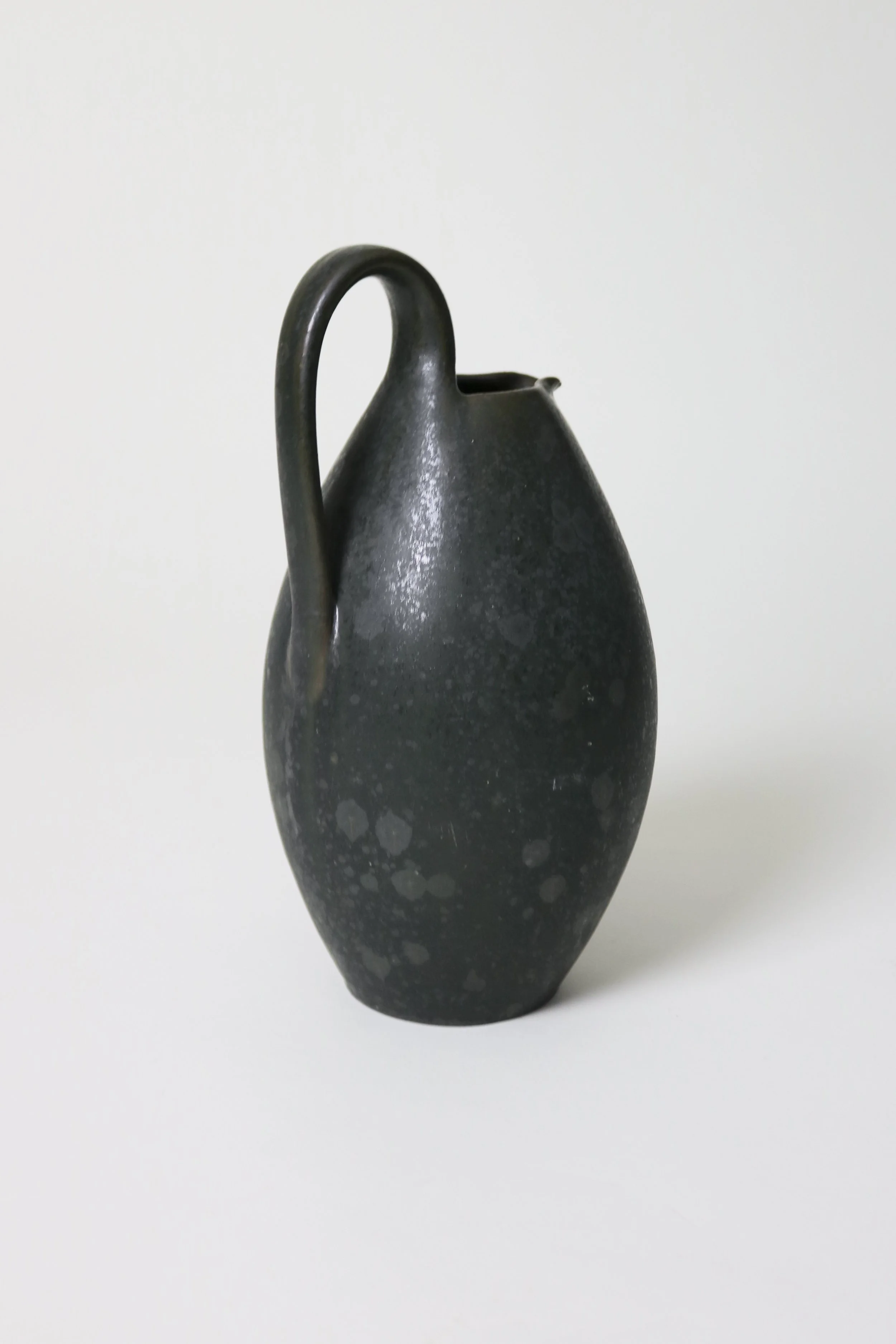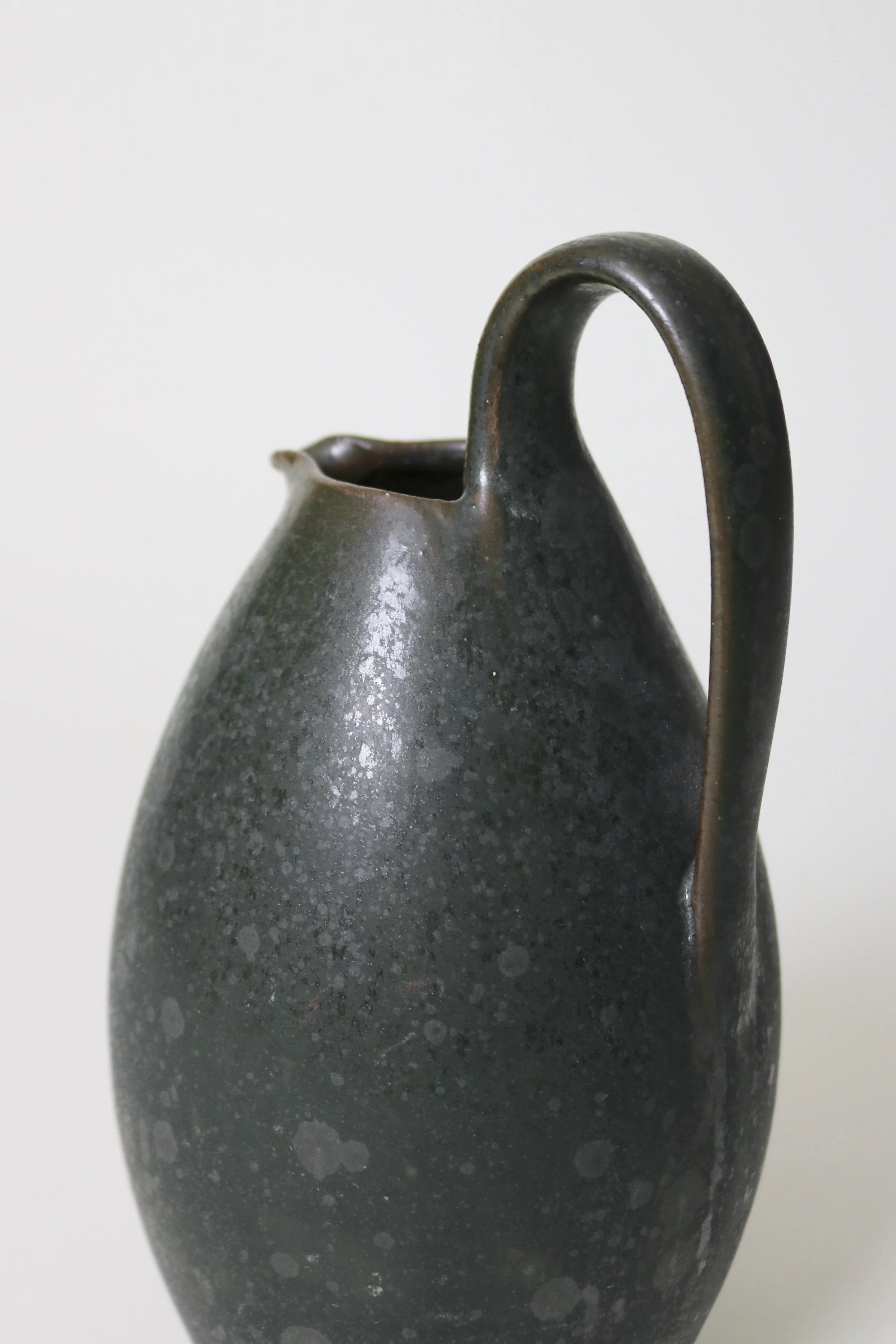 A beautifully proportioned jug with a matt mottled glaze and a delicate handle. Signed by a German potter but the maker is unknown.
