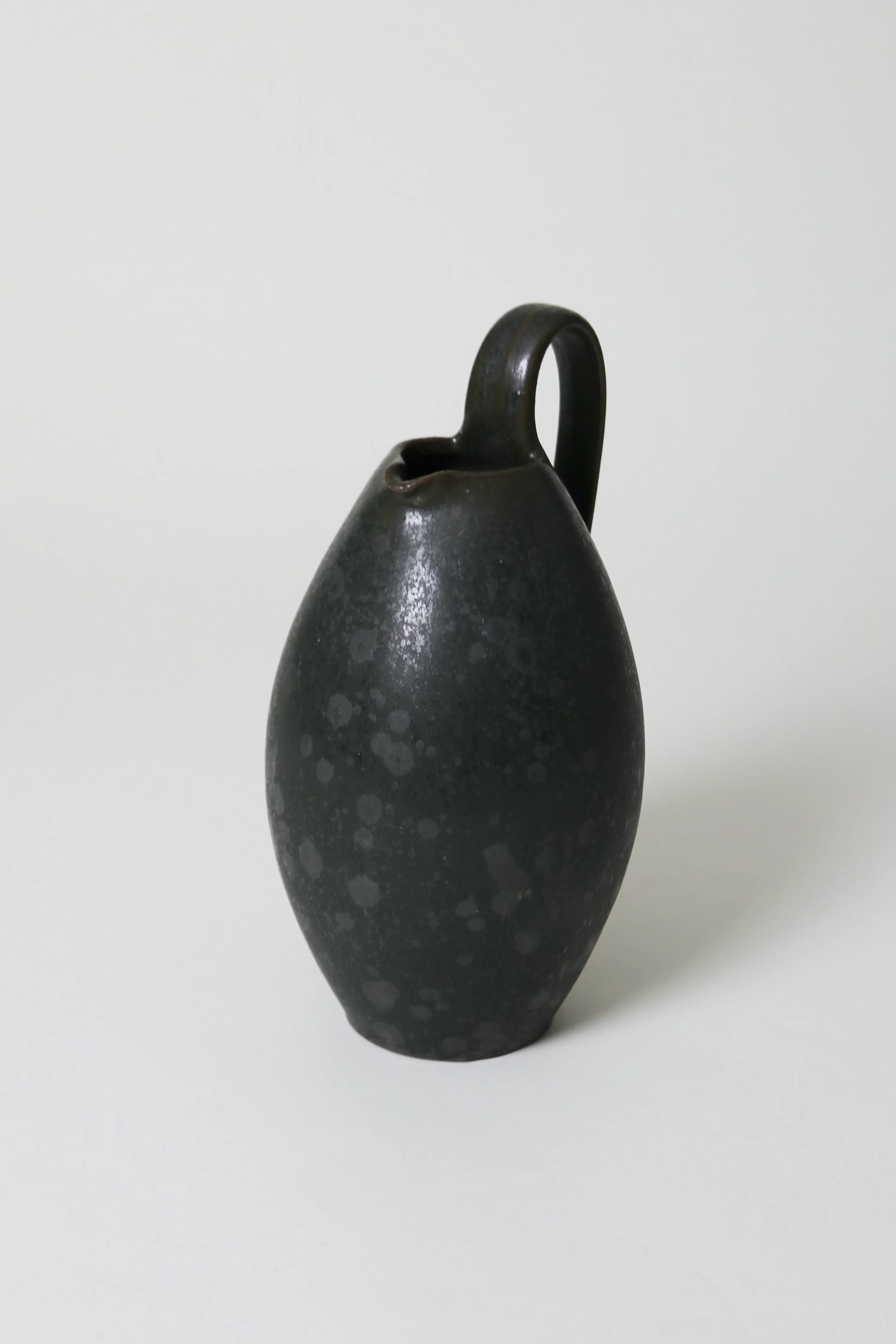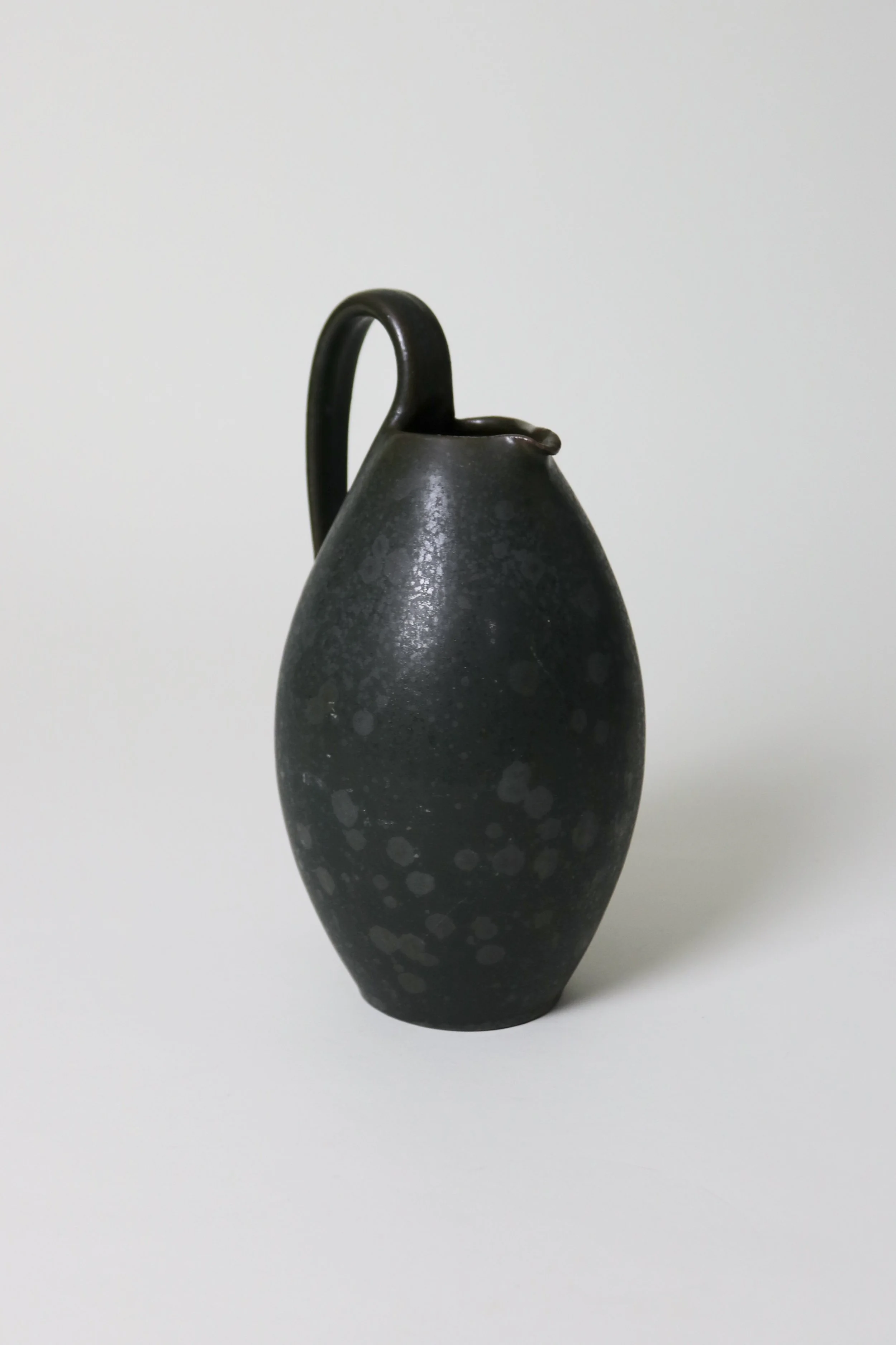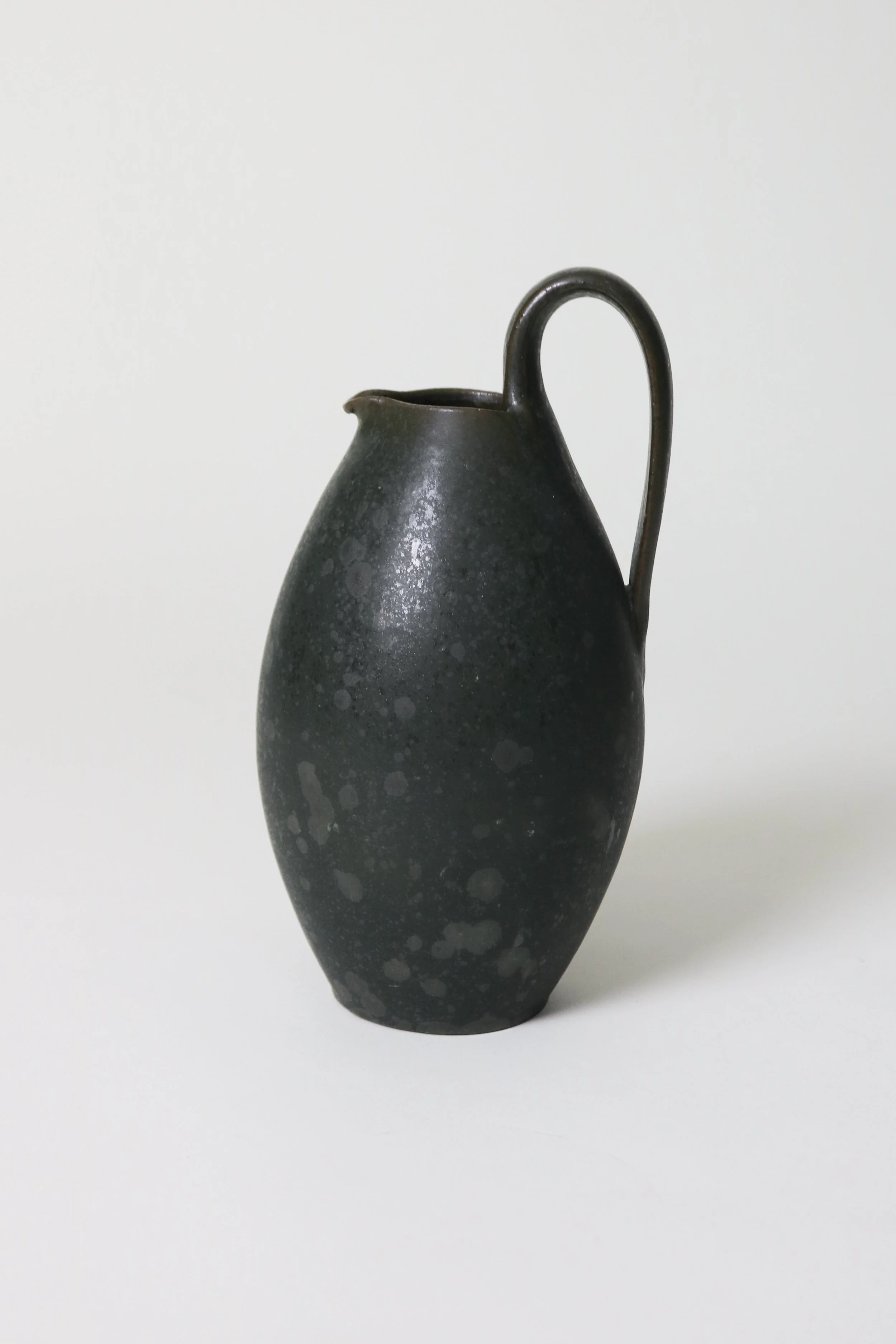 A beautifully proportioned jug with a matt mottled glaze and a delicate handle. Signed by a German potter but the maker is unknown.