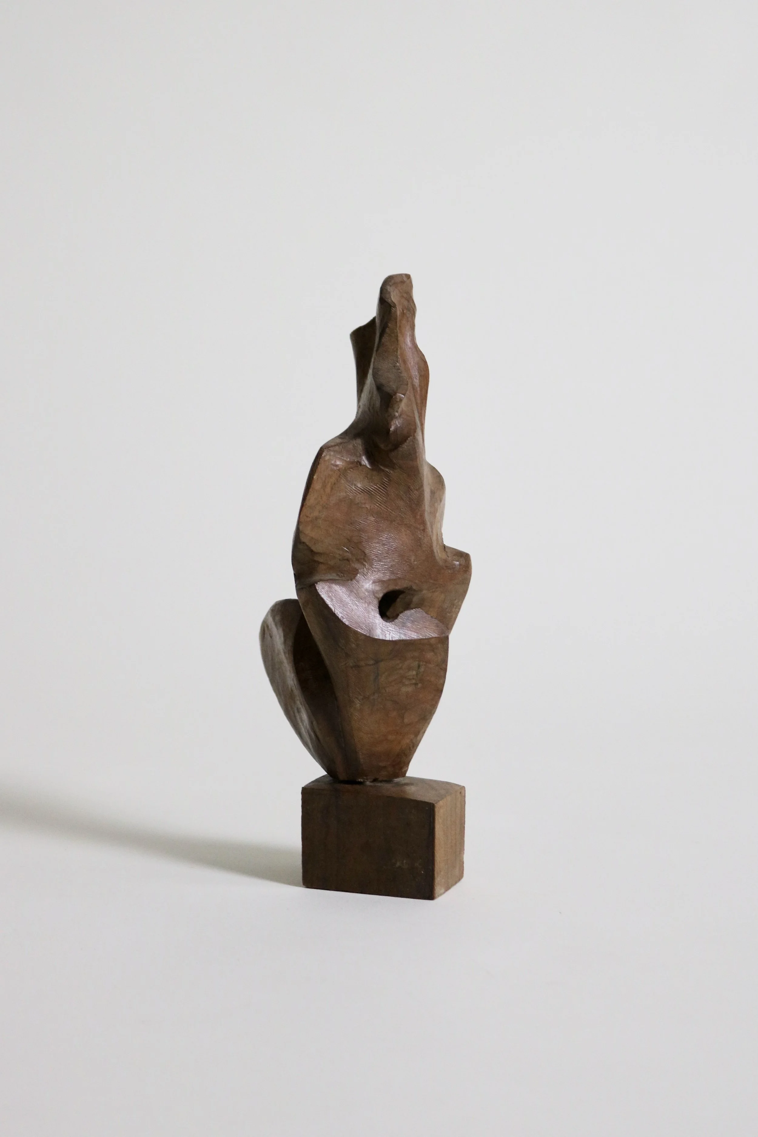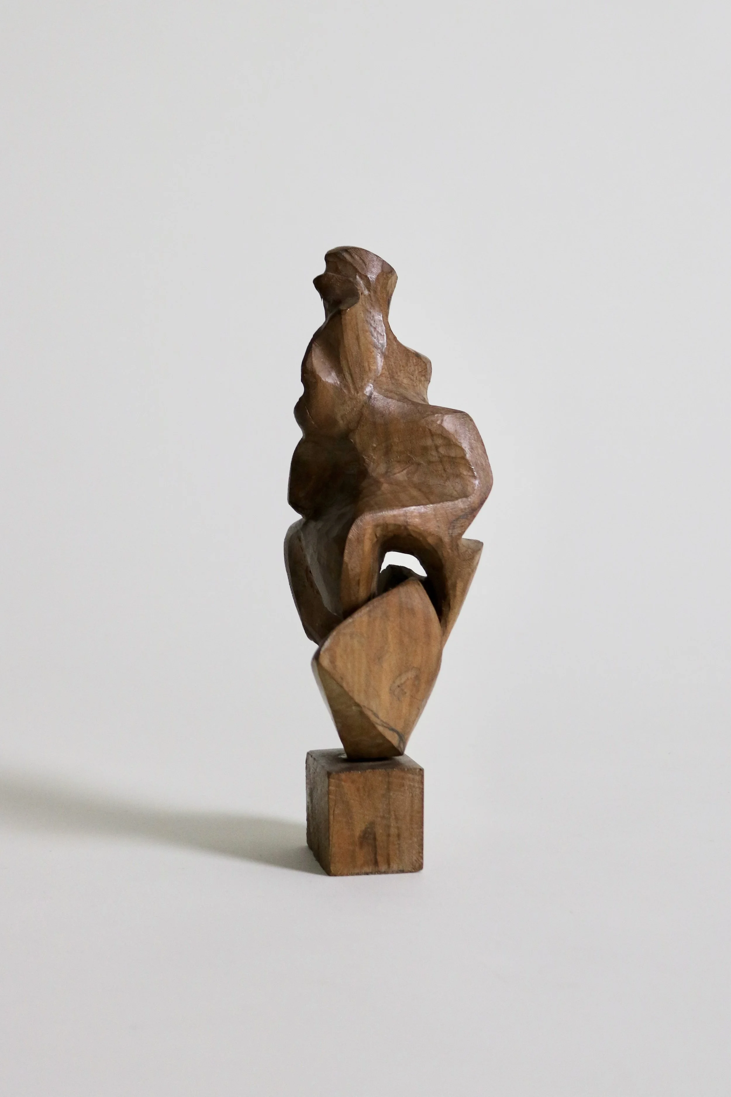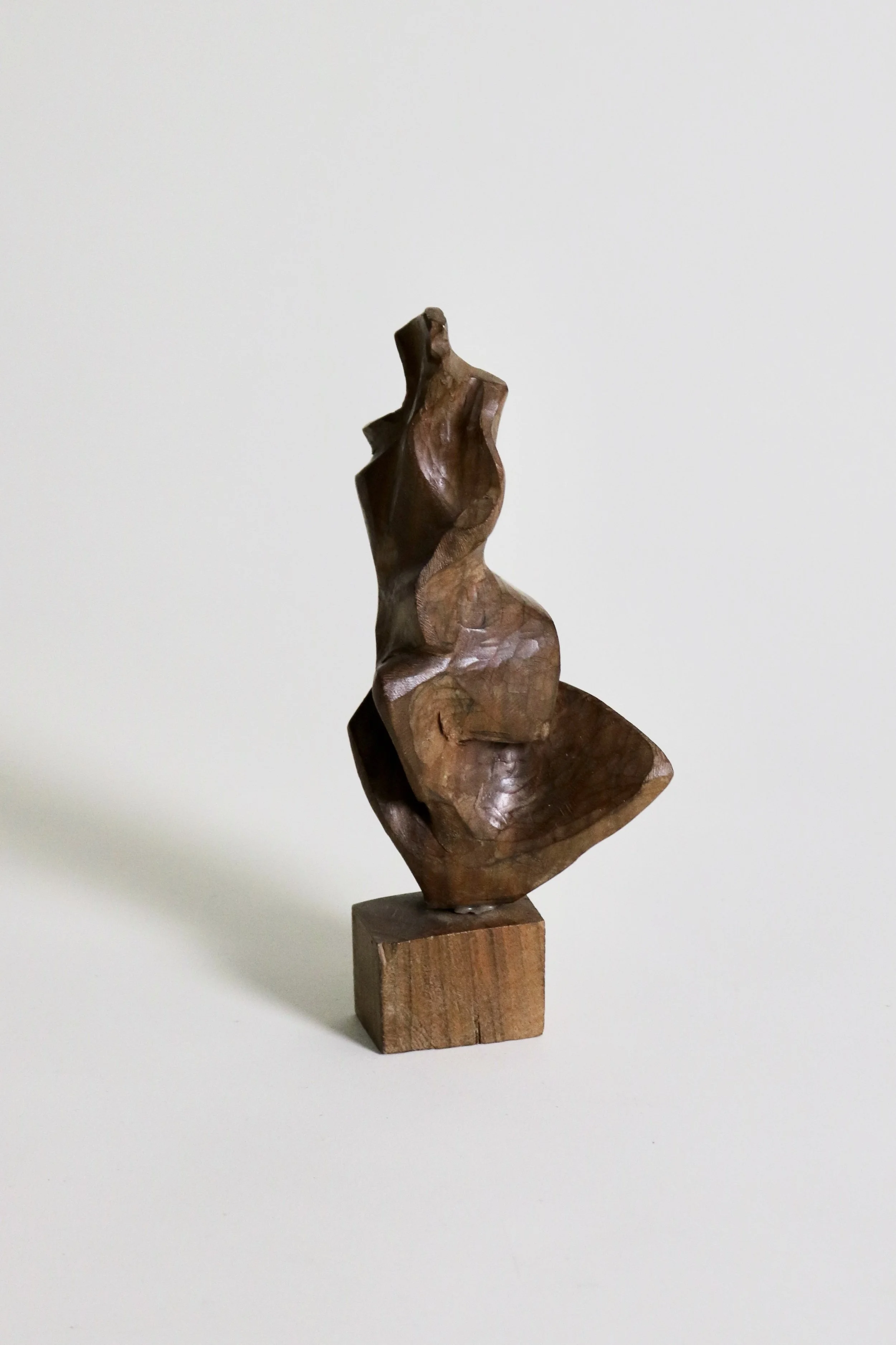 A skillfully and delicately carved piece from French sculptor Guy Burais. A maquette for his larger pieces, this small abstract sculpture has hints of a figurative form.