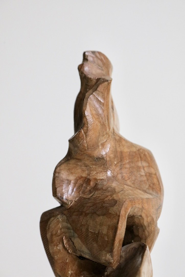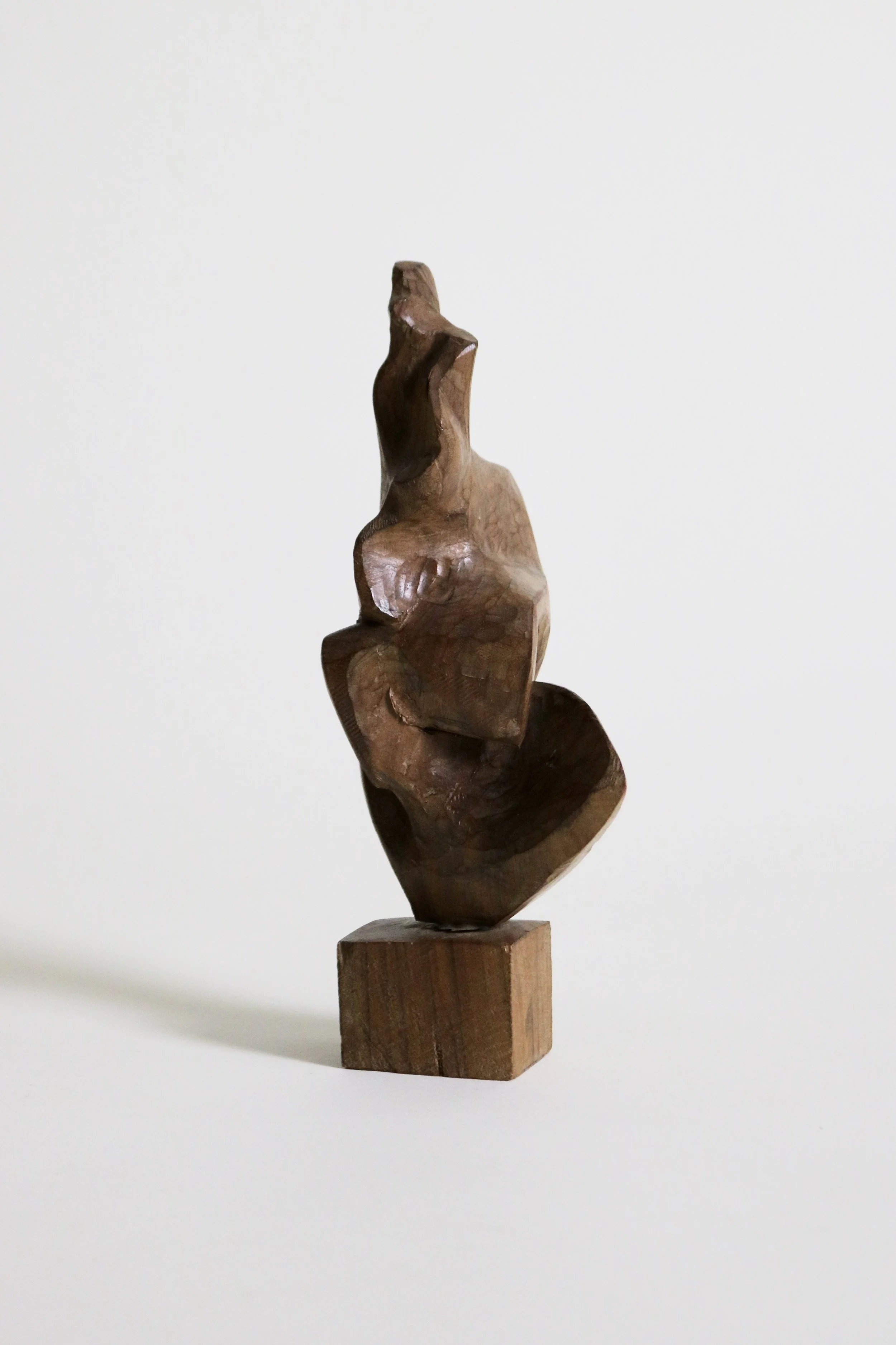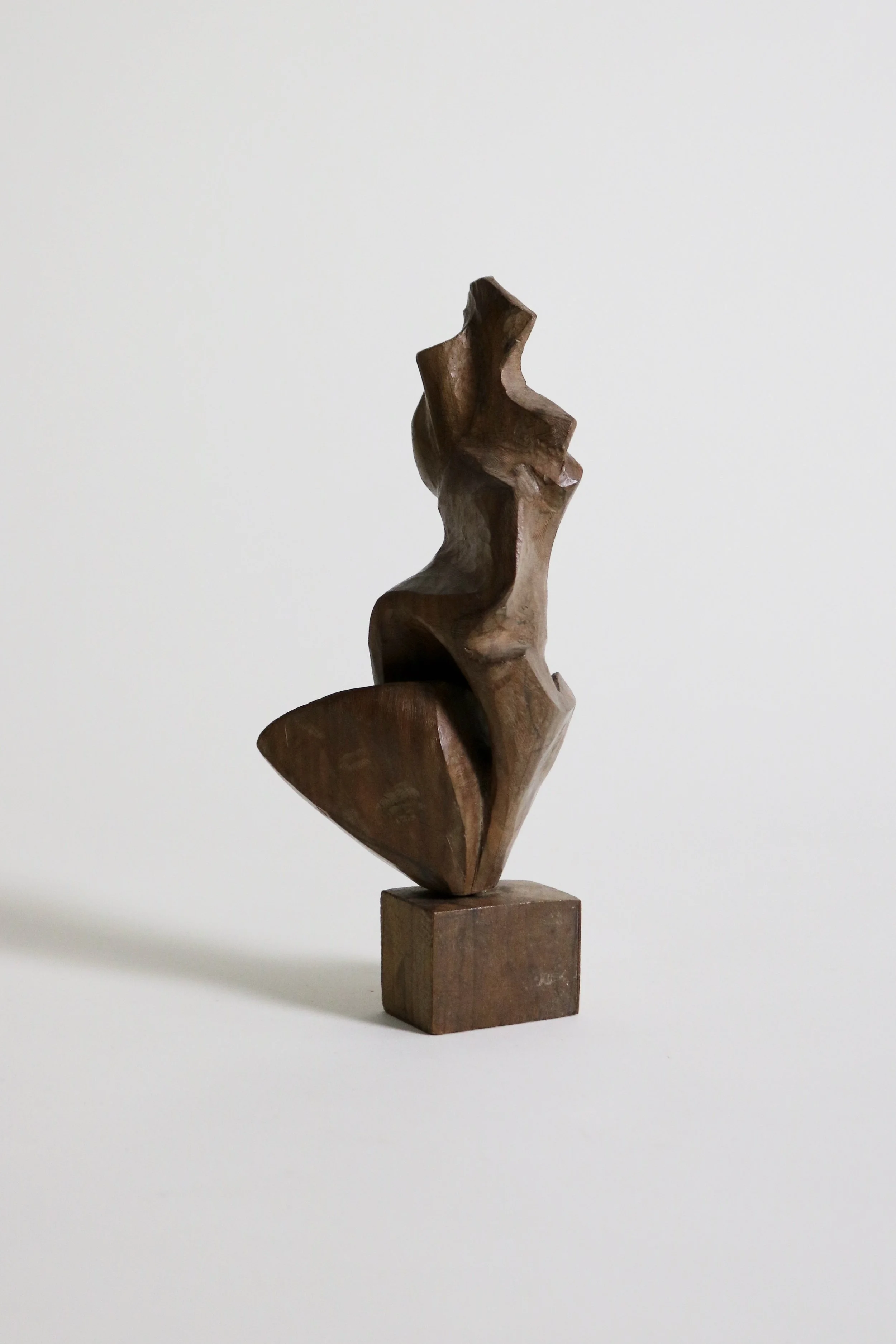 A skillfully and delicately carved piece from French sculptor Guy Burais. A maquette for his larger pieces, this small abstract sculpture has hints of a figurative form.