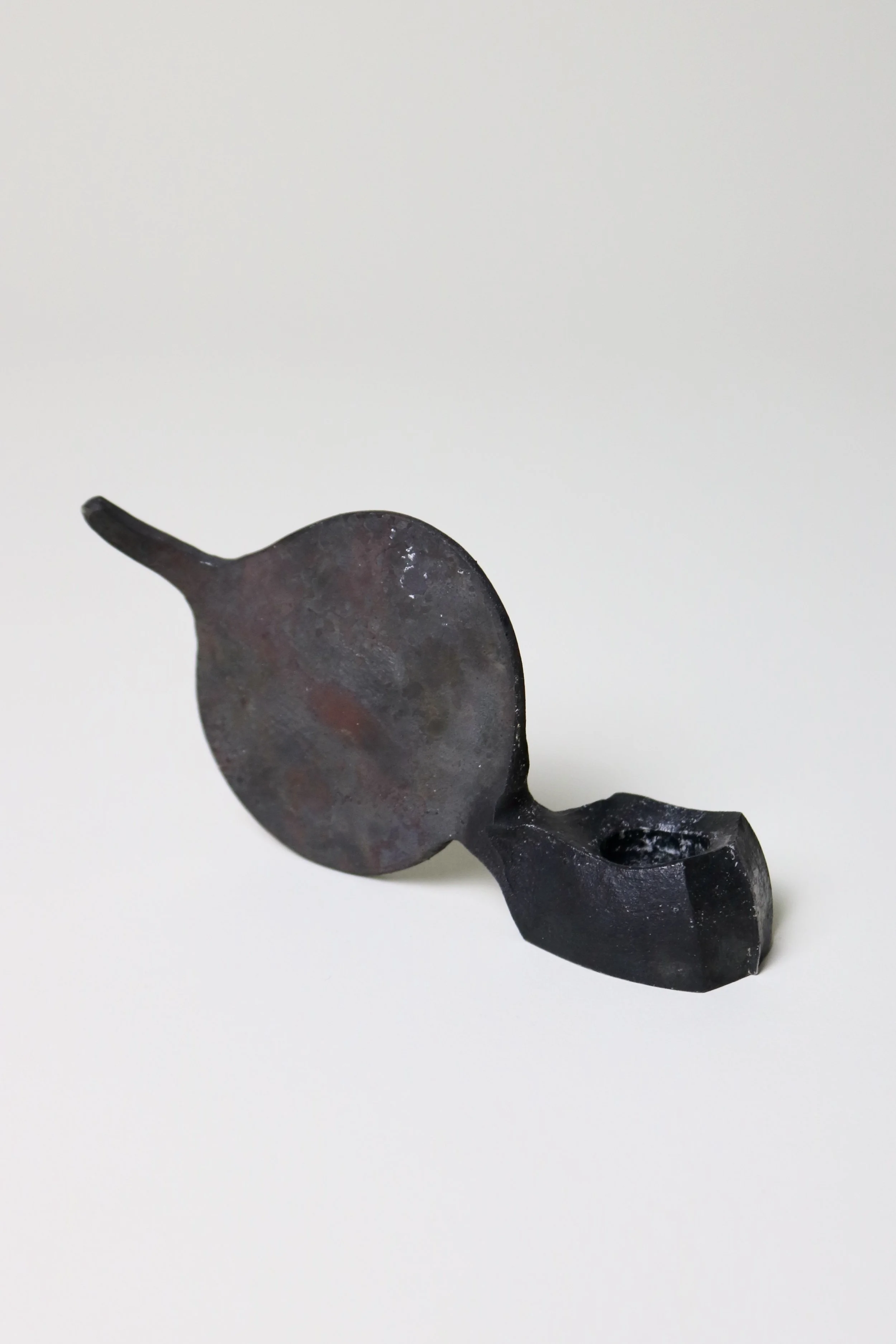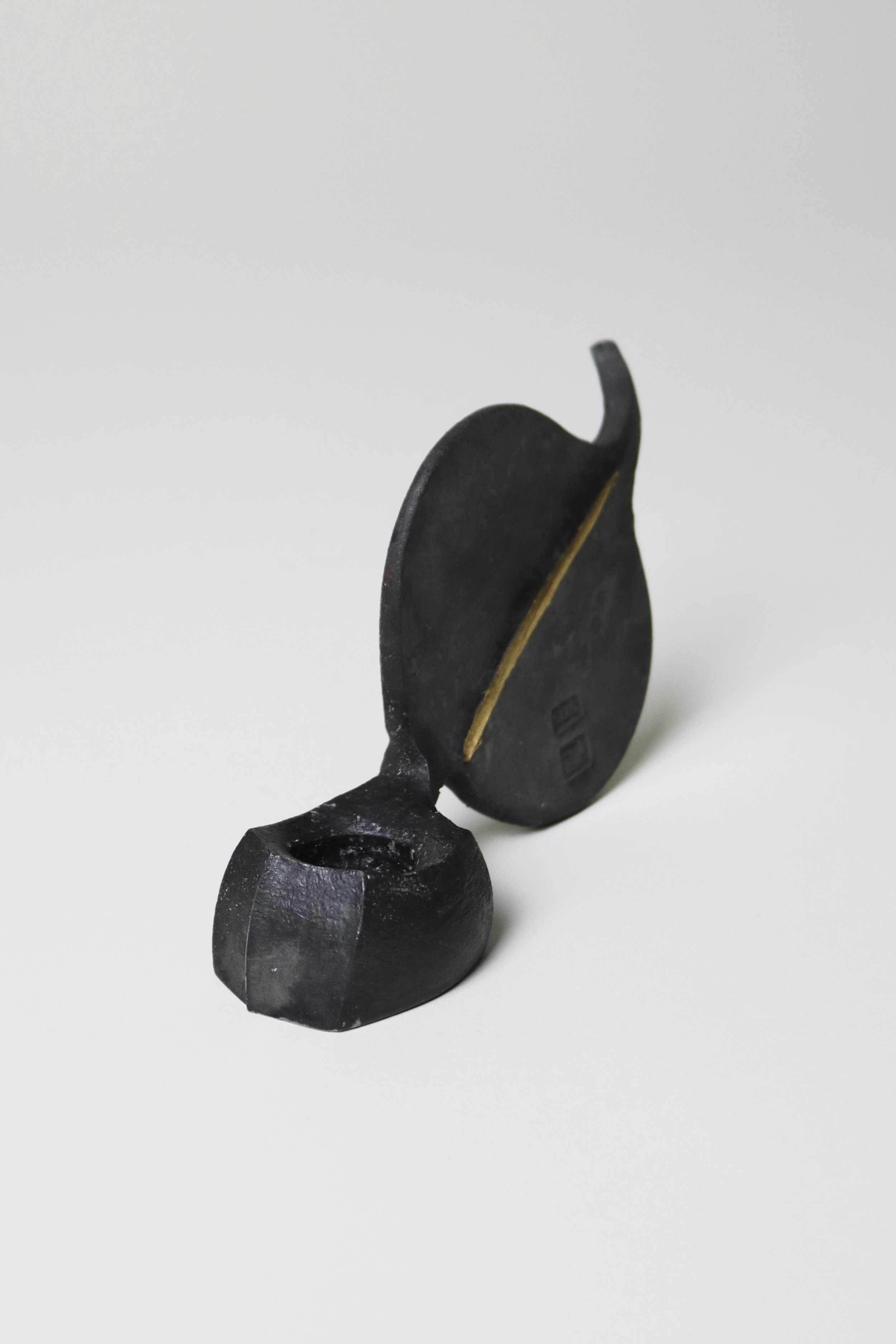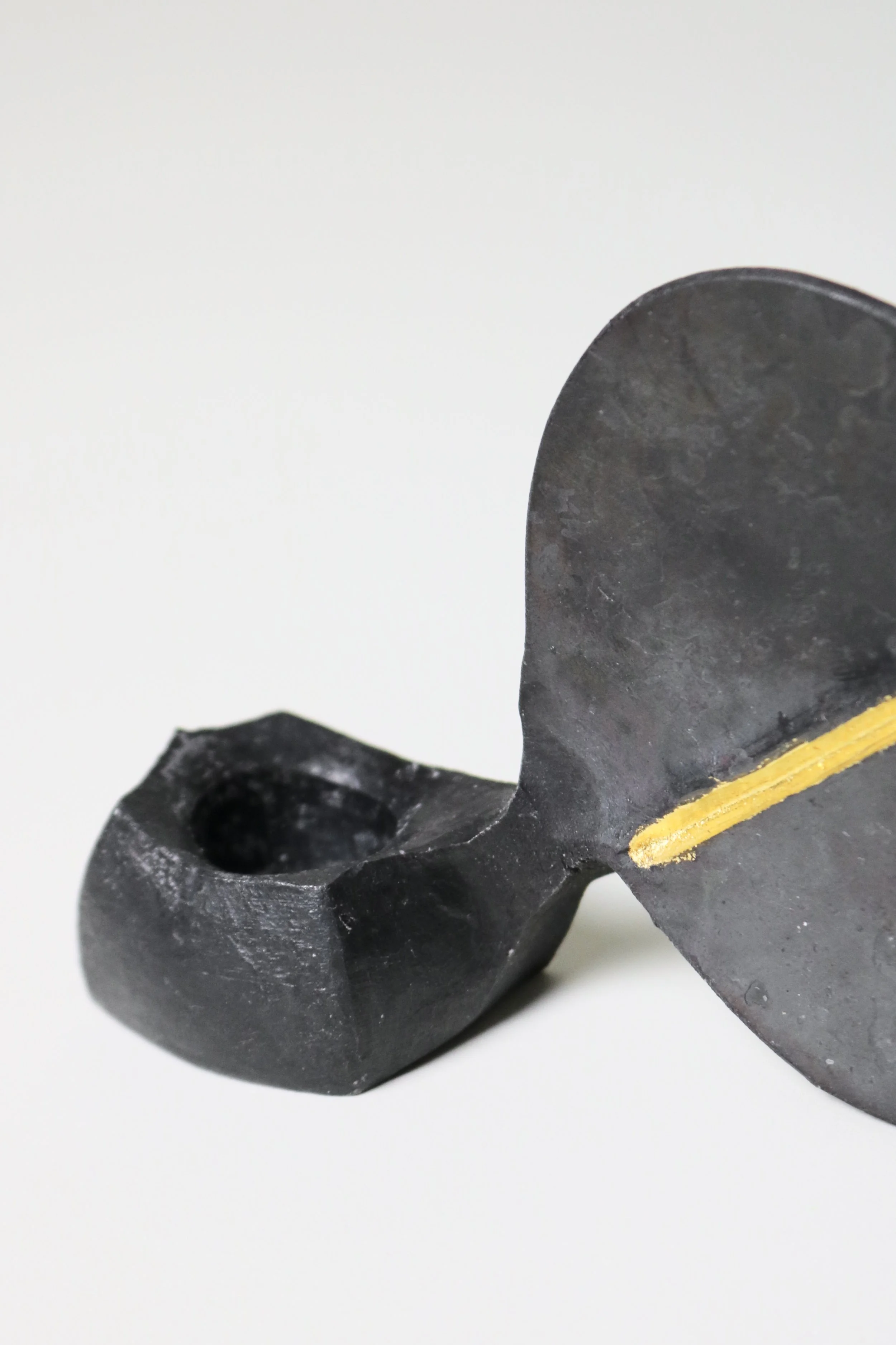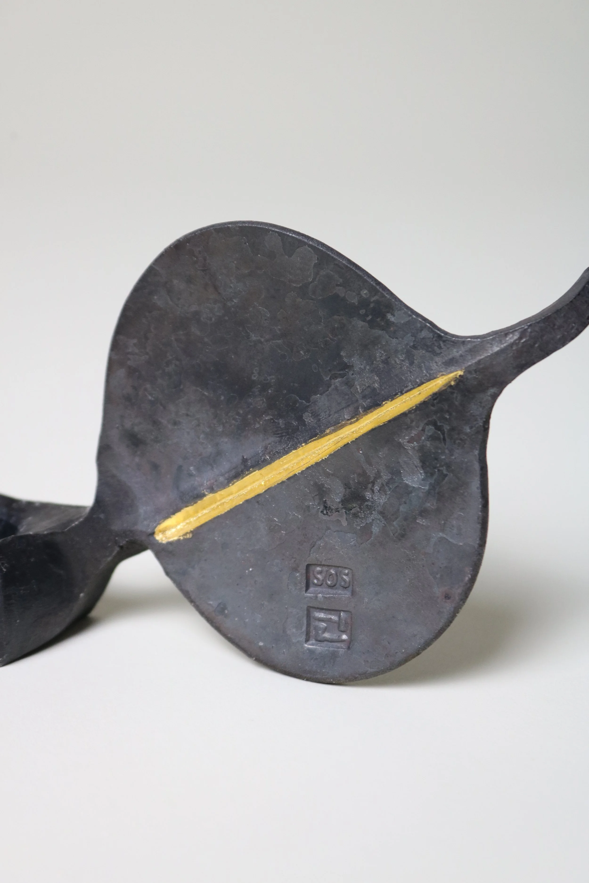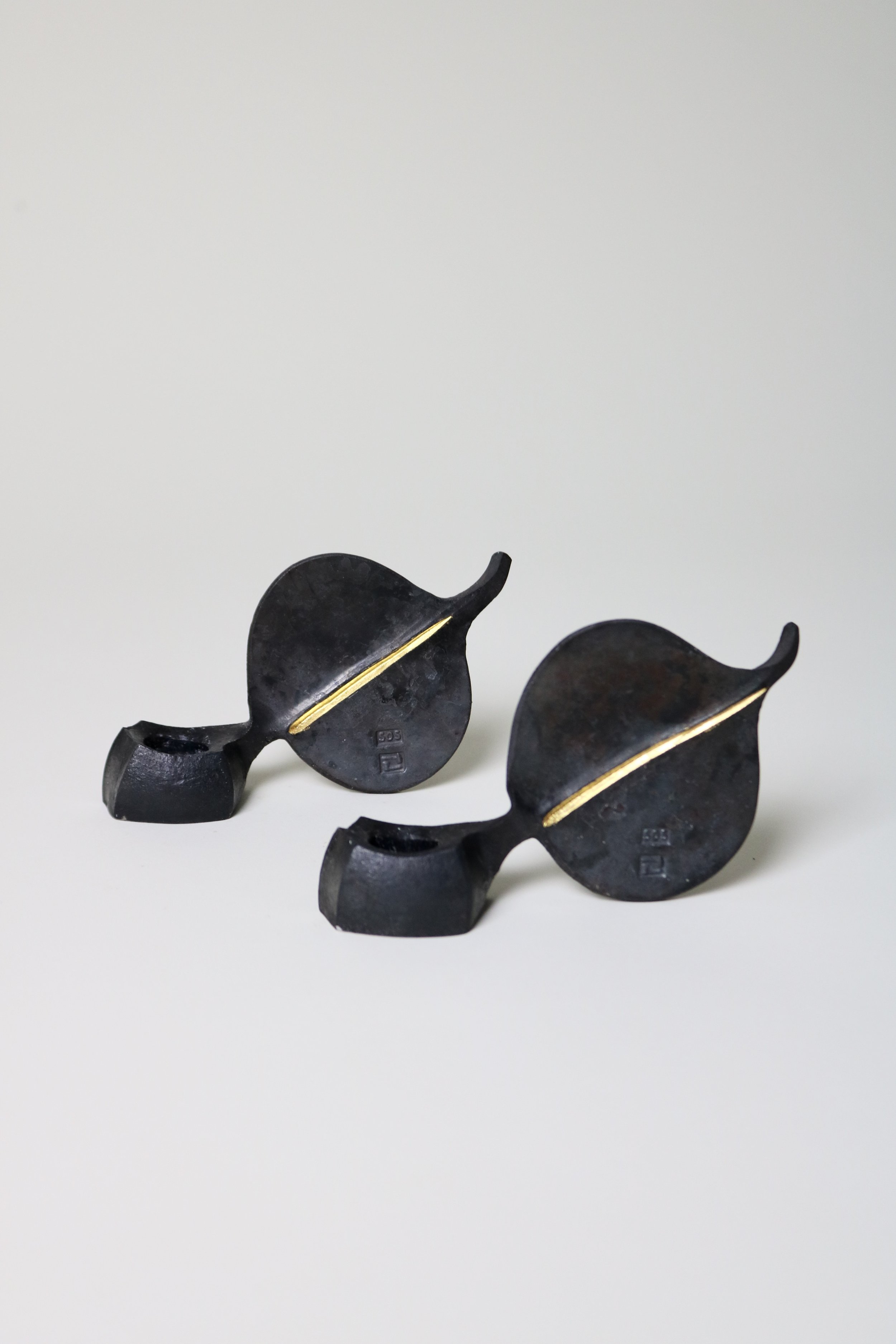 A pair of iron forged candlesticks with gold leaf detailing. By Swedish sculptor Sven-Olof Sundberg.