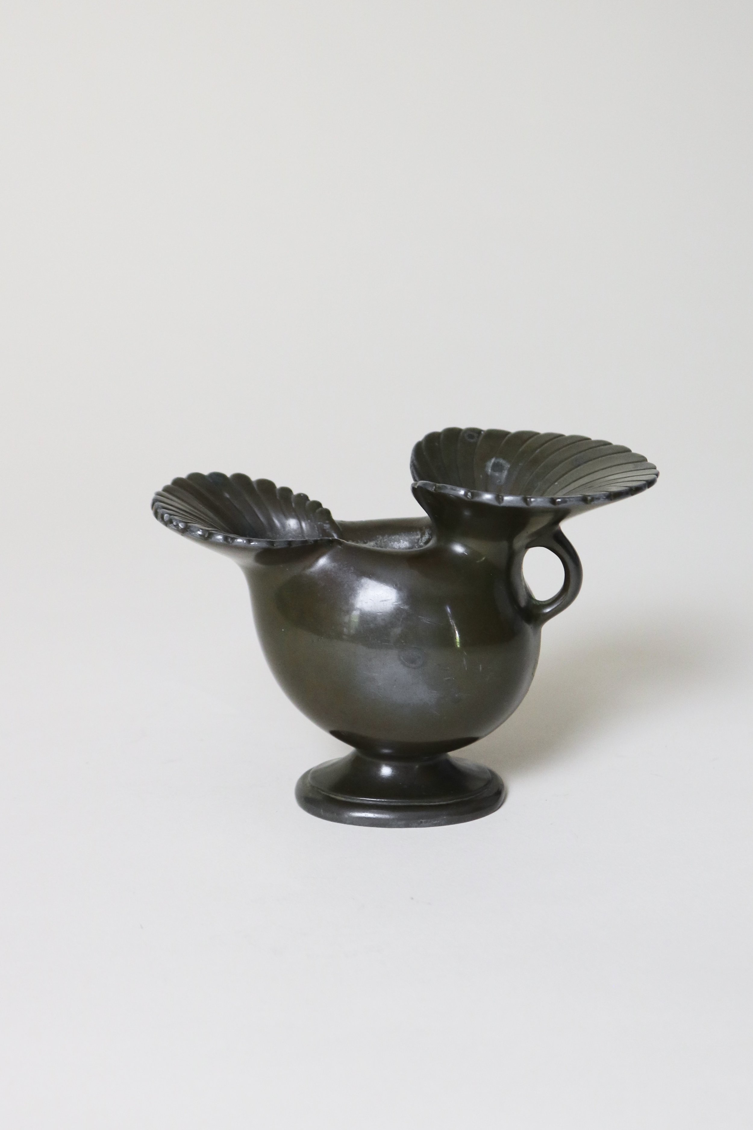 A signature art-deco vase from Just Andersen. Made using Disko metal, the alloy material developed by Just to replicate Bronze.