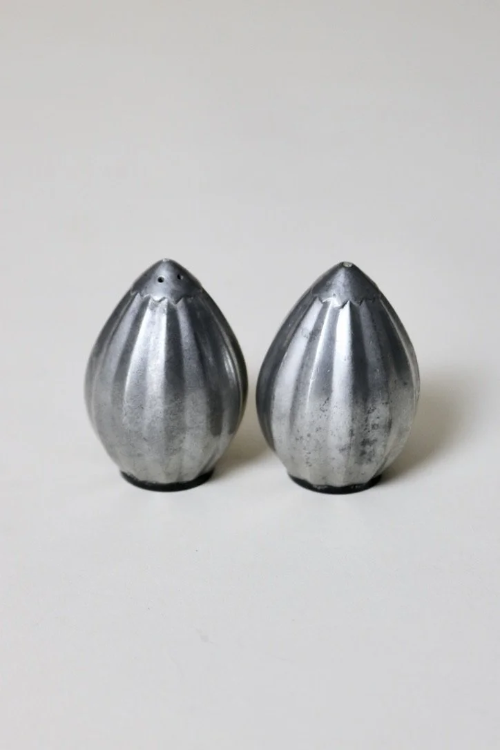 Pewter salt and pepper shakers by Just Andersen c1930s.