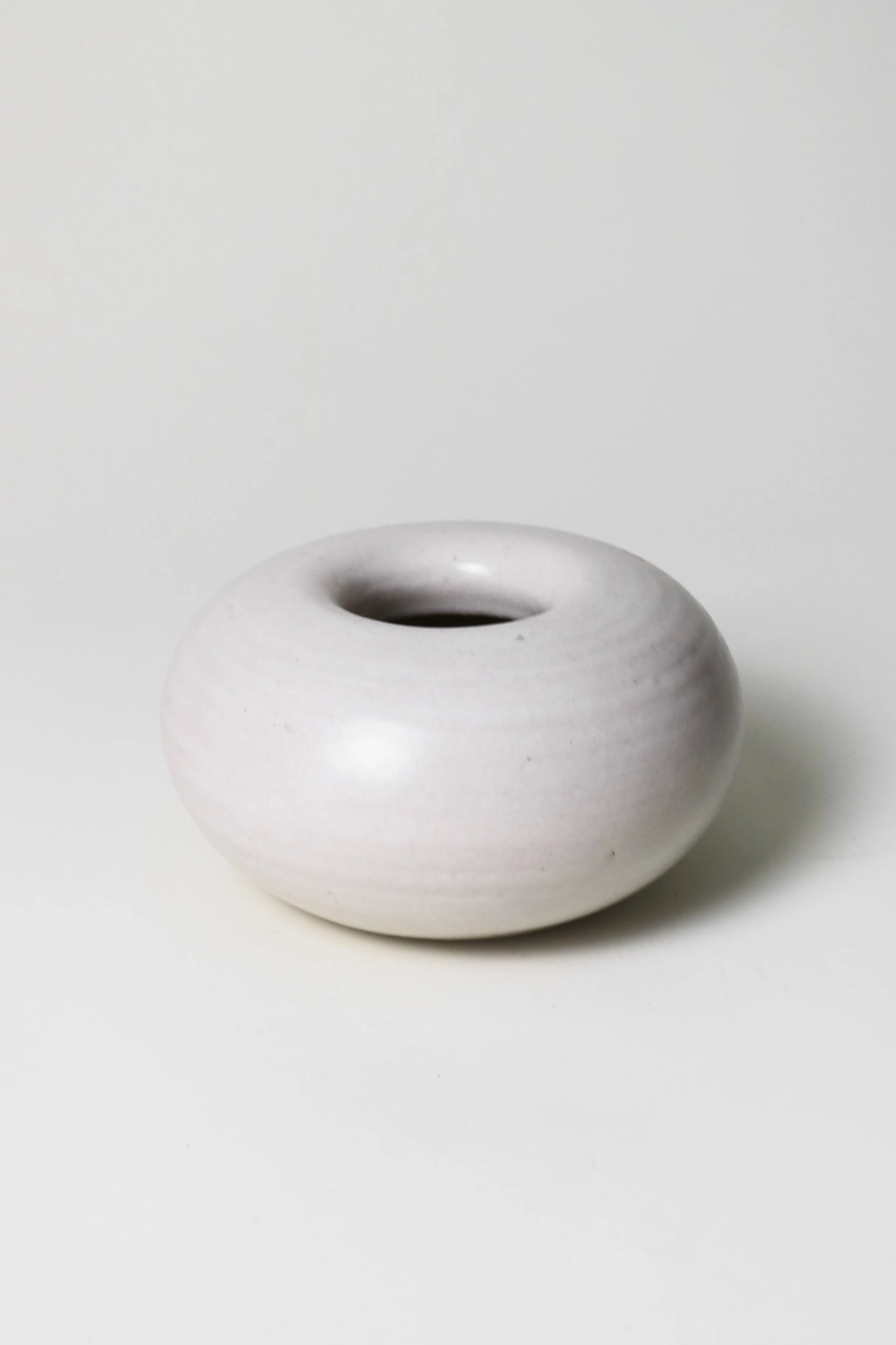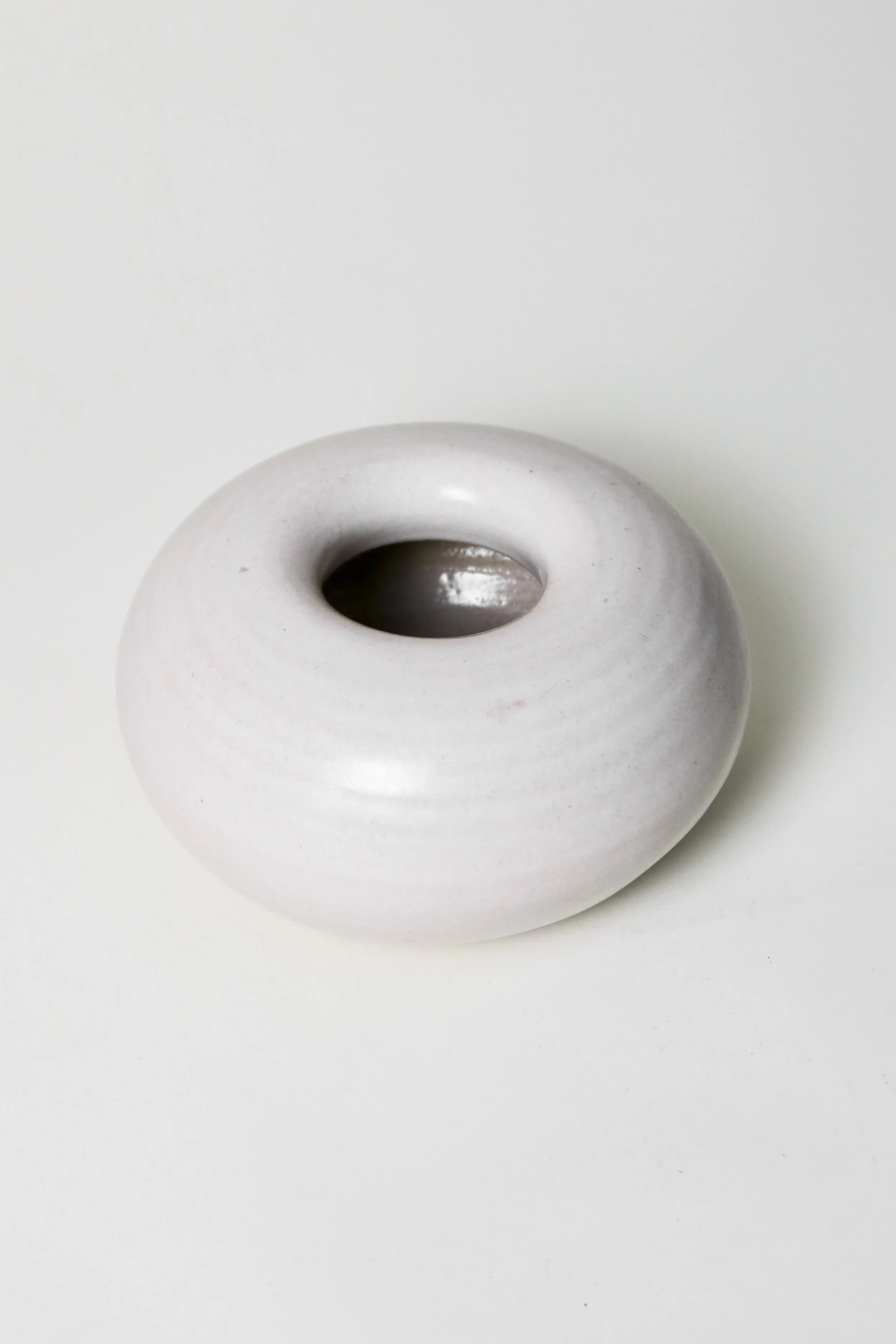 Archive › ON HOLD//Mobach Donut Vase Image 1 of 5 Image 2 of 5 Image 3 of 5 Image 4 of 5 Image 5 of 5 ON HOLD//Mobach Donut Vase £145.00 sold out A donut vase with a white glaze. By well known Dutch producer Mobach.H 11cm D 17cm Sold Out Added! A donut vase with a white glaze. By well known Dutch producer Mobach.H 11cm D 17cm