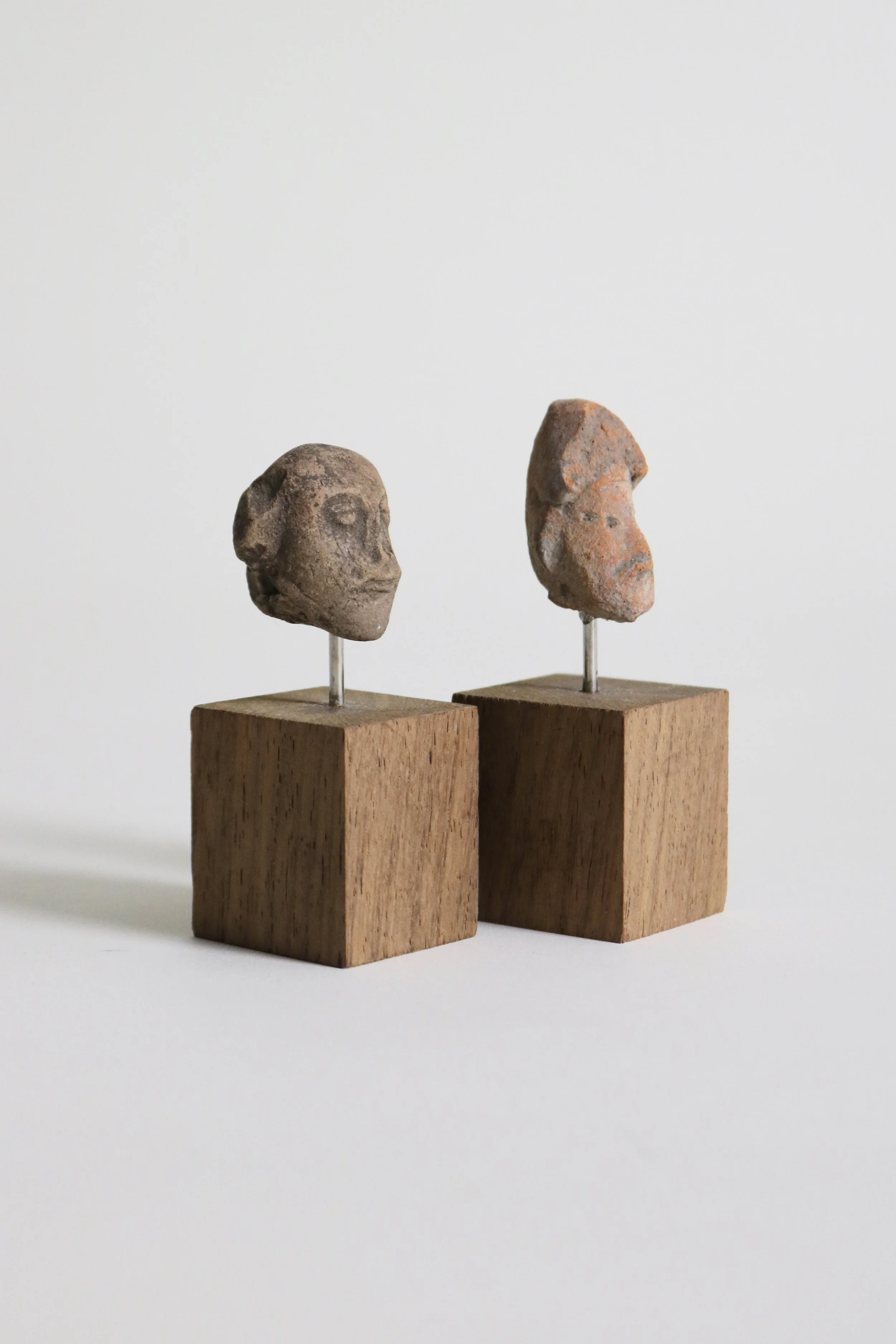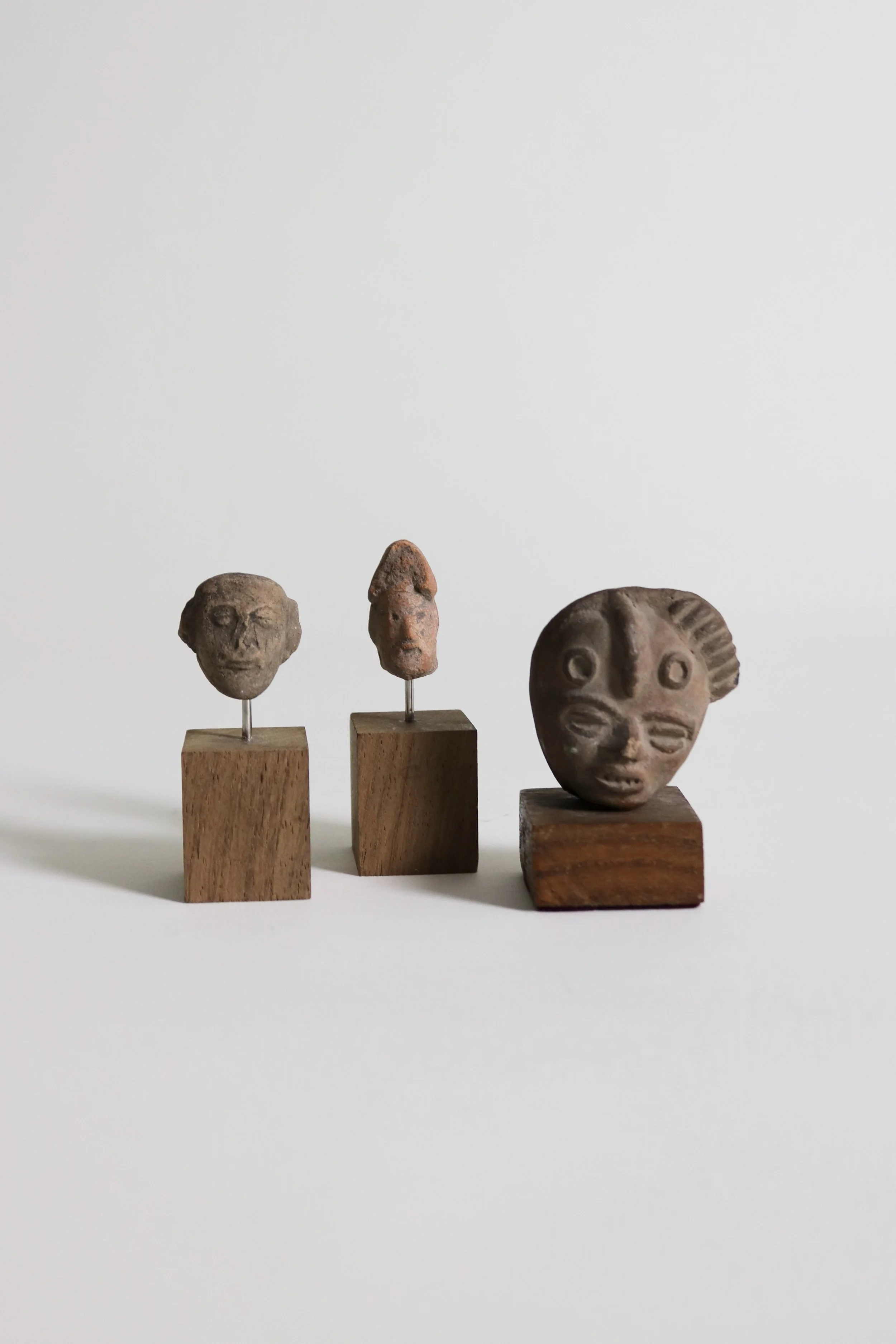 Antique replicas of pre-columbian terracotta figurines. mounted on solid wood.
