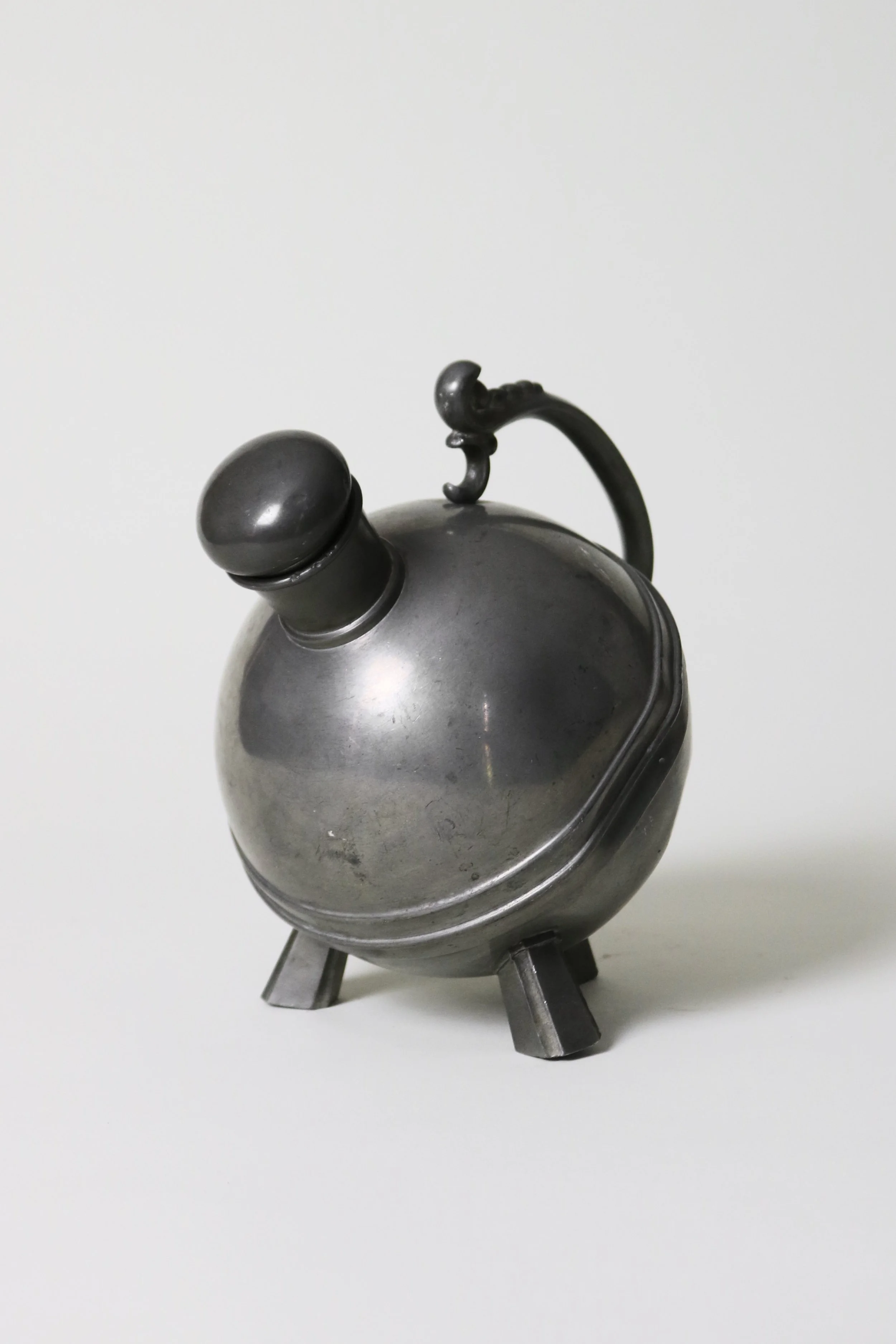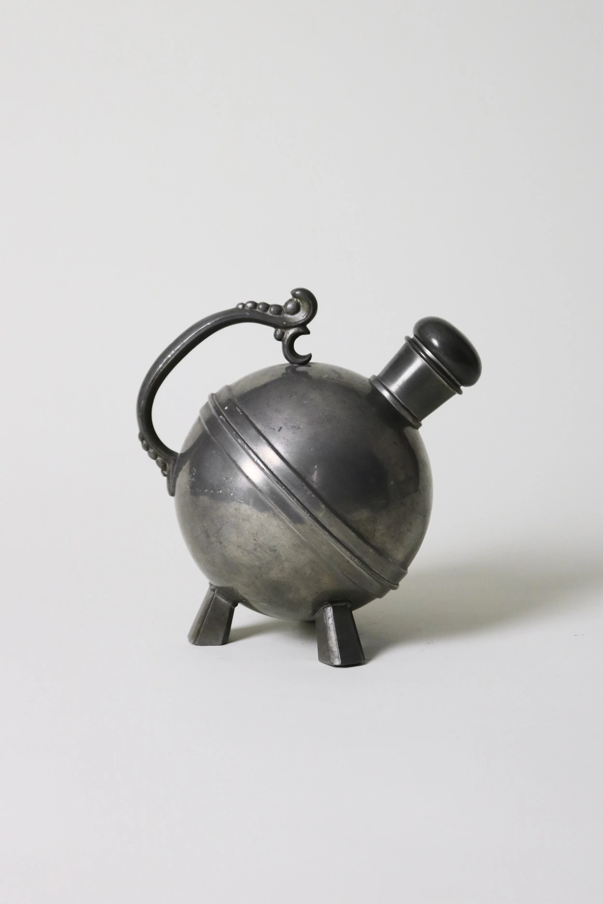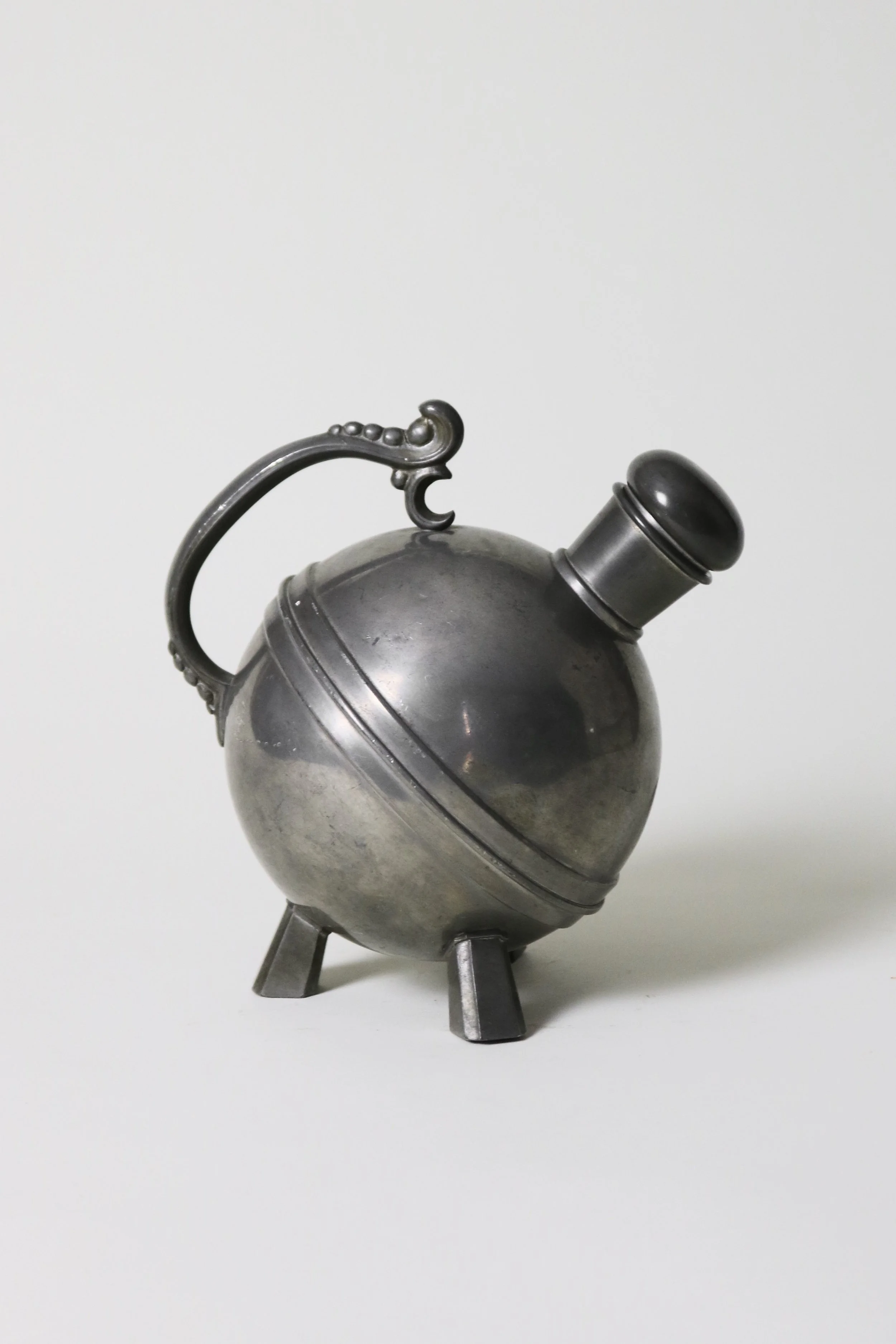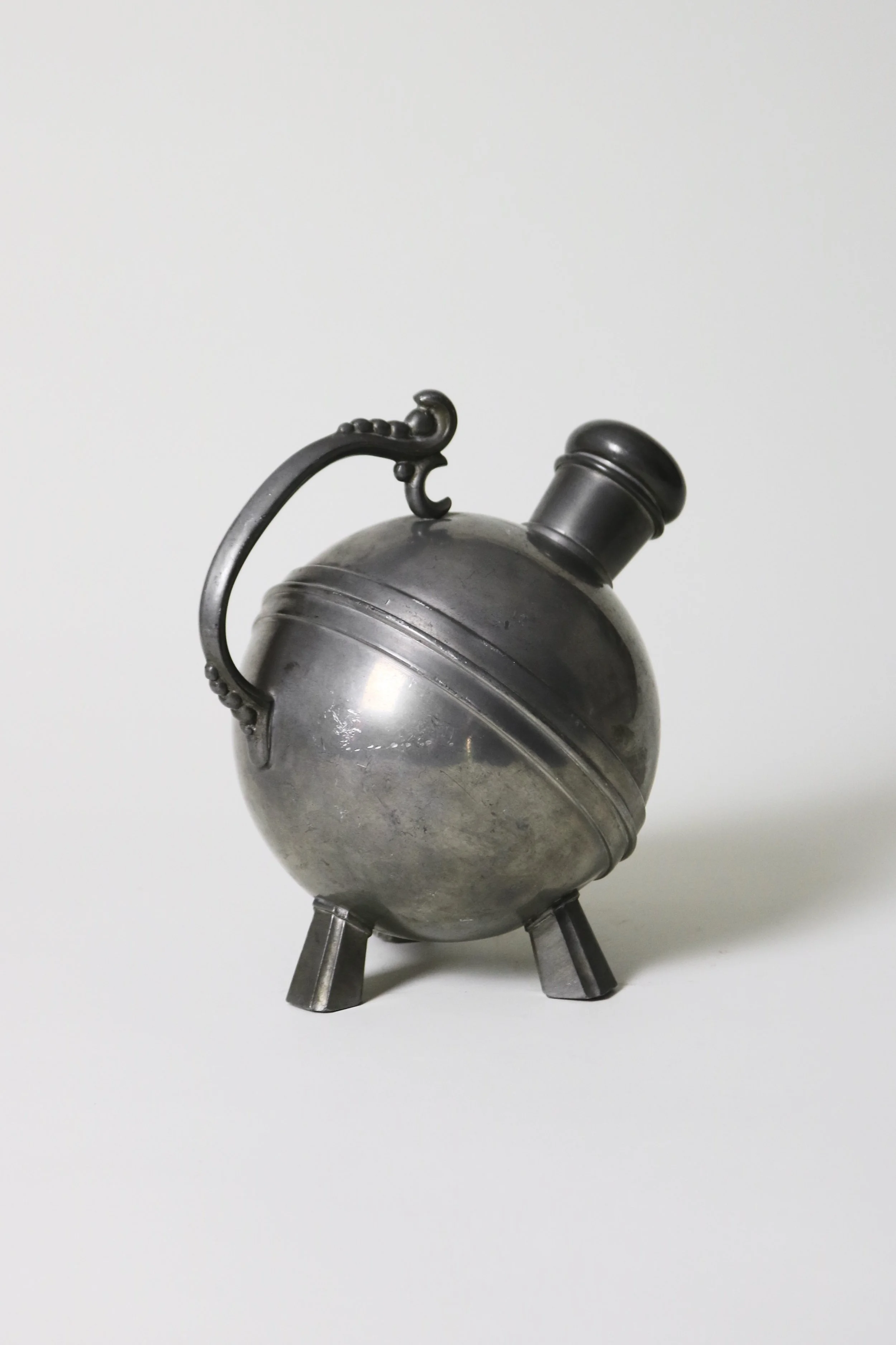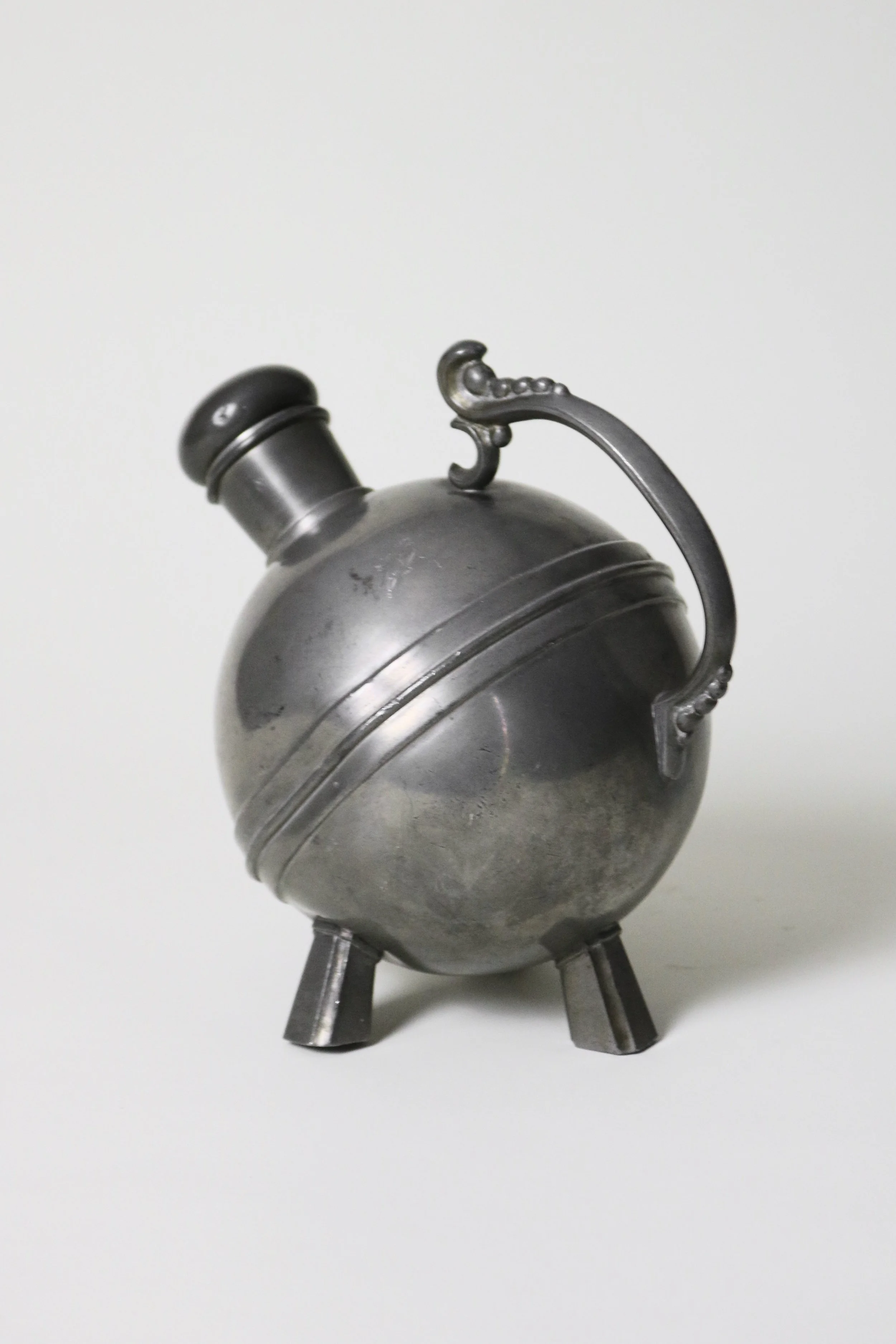 Archive › Norwegian Tinn Flask Image 1 of 8 Image 2 of 8 Image 3 of 8 Image 4 of 8 Image 5 of 8 Image 6 of 8 Image 7 of 8 Image 8 of 8 Norwegian Tinn Flask £185.00 sold out A decorative tin flask on 3 feet. Made in Norway c1930s.H 20cmD 16cm Sold Out Added! A decorative tin flask on 3 feet. Made in Norway c1930s.H 20cmD 16cm