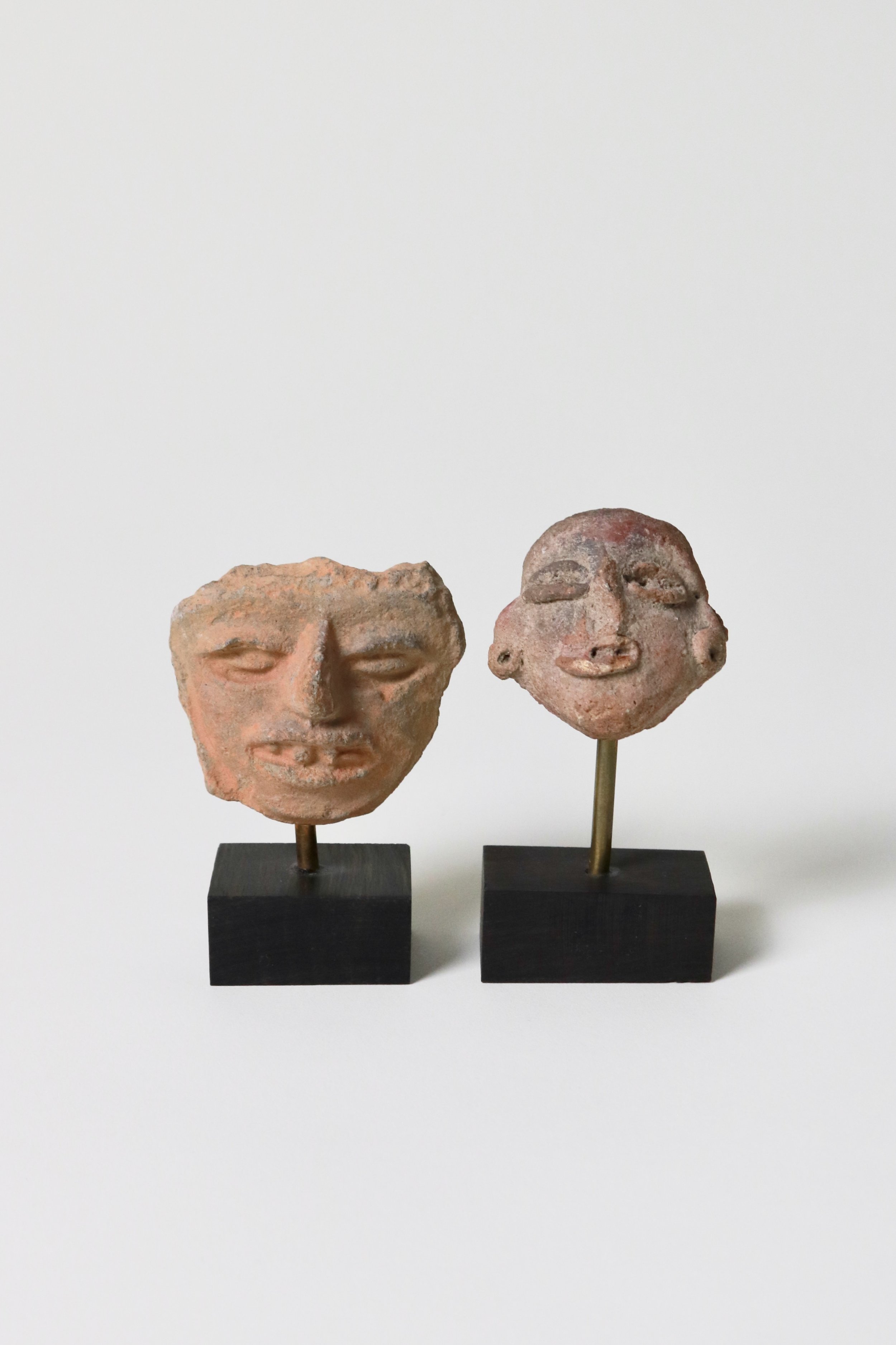 Archive › Pre-Columbian mounted heads Image 1 of 7 Image 2 of 7 Image 3 of 7 Image 4 of 7 Image 5 of 7 Image 6 of 7 Image 7 of 7 Pre-Columbian mounted heads £205.00 sold out Pre-Columbian terracotta faces from Ecuador, mounted on wooden blocksSold as a pair.H 9cmW 4.5cm Sold Out Added! Pre-Columbian terracotta faces from Ecuador, mounted on wooden blocksSold as a pair.H 9cmW 4.5cm
