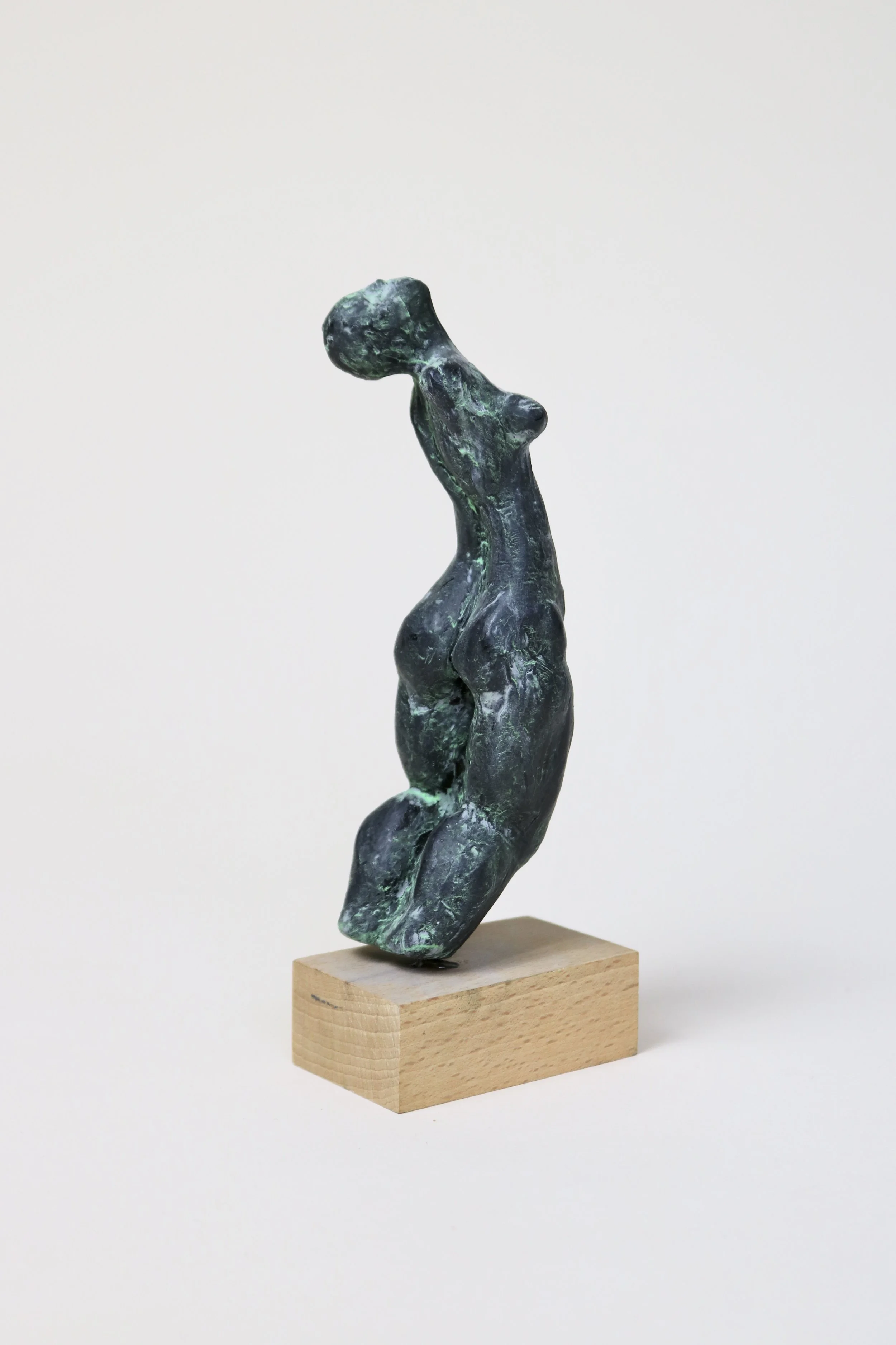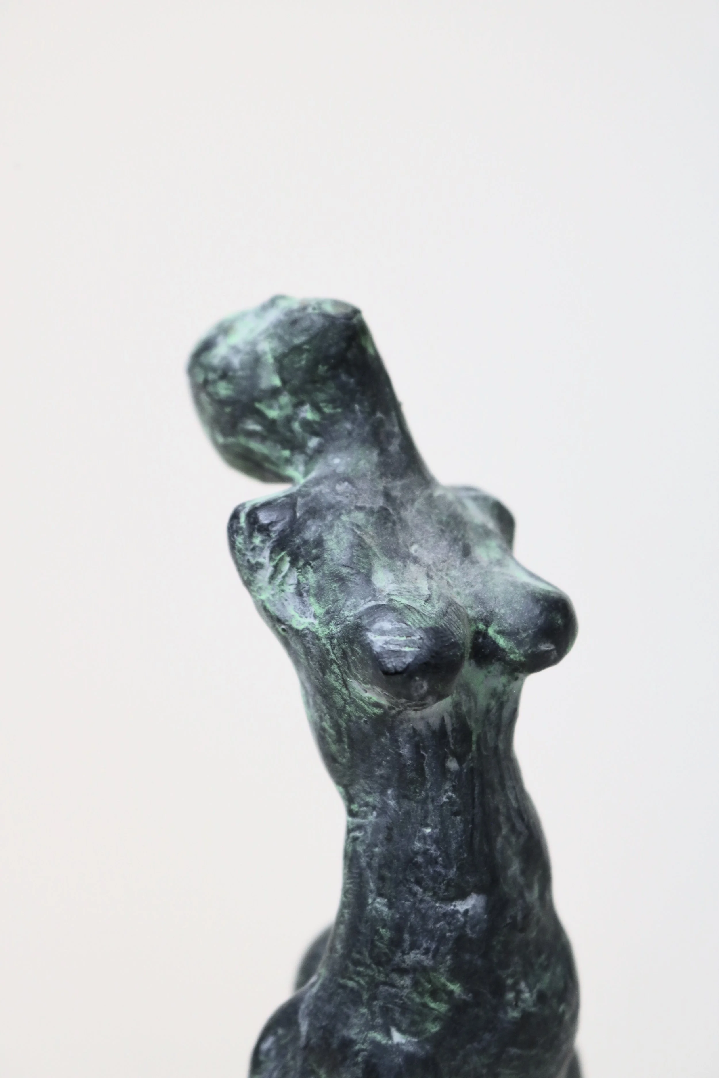 Figurative cast sculptures on wooden plinths by German artist Hedrik Hause, 1989