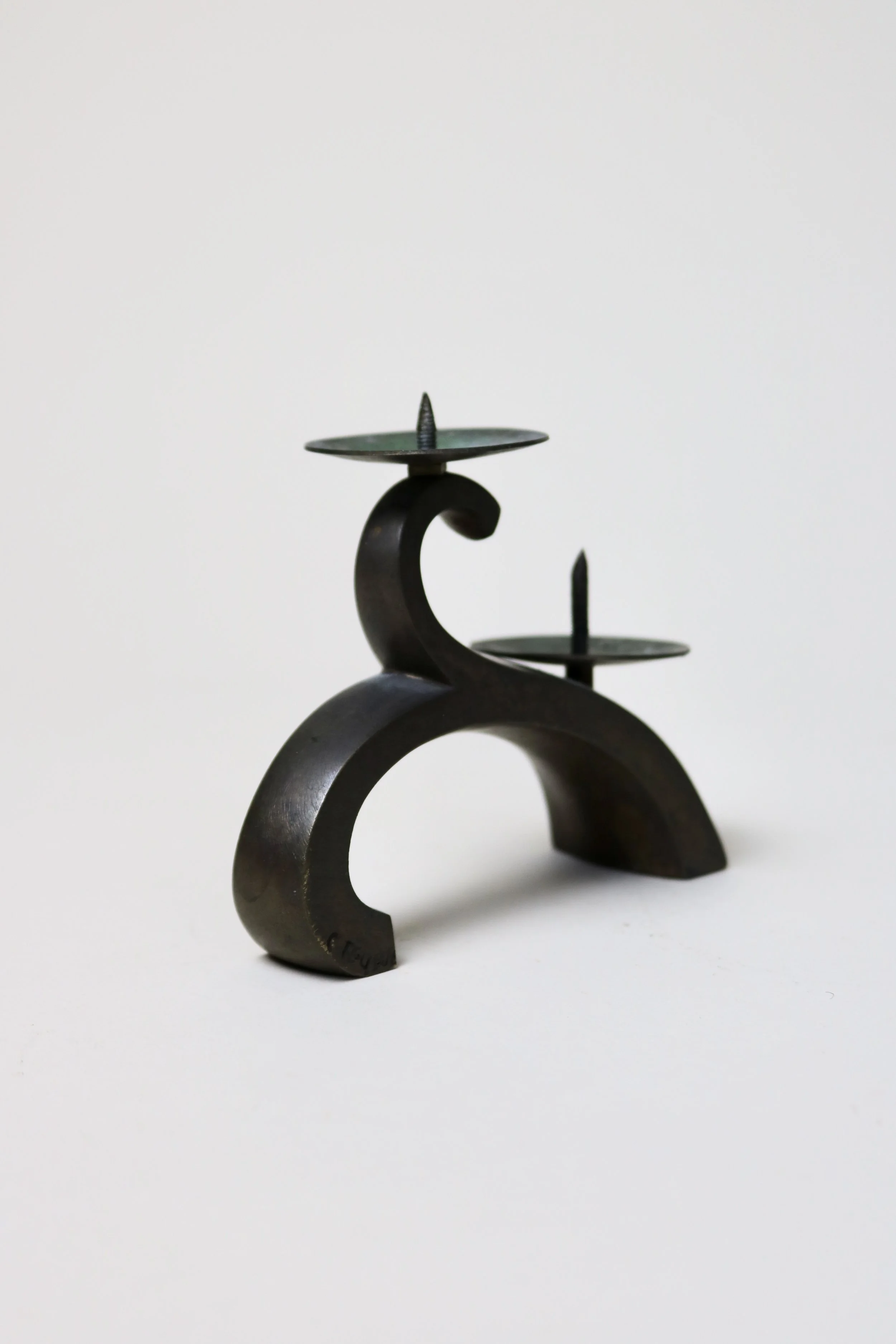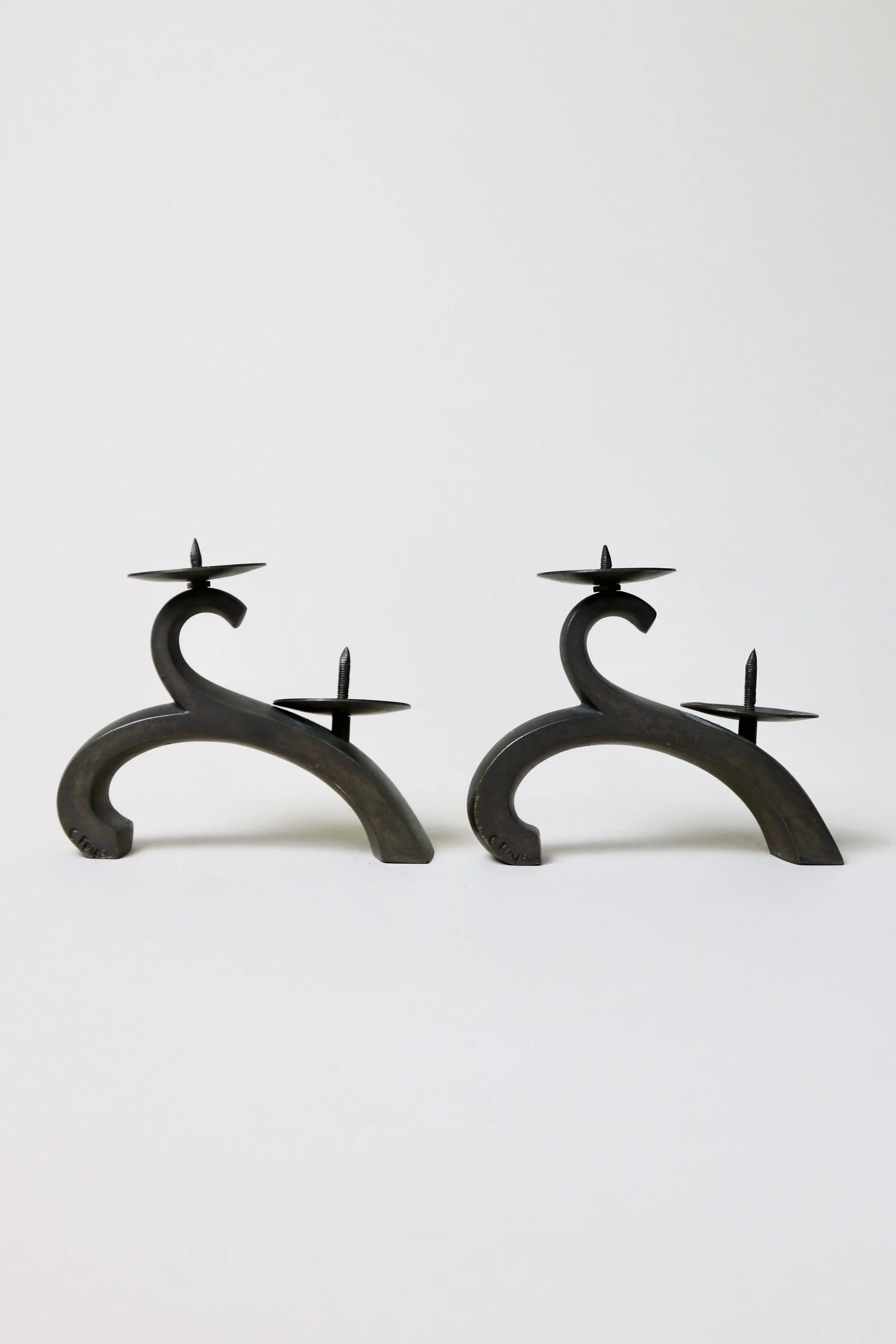 Archive › Solid Bronze Candlestick Pair Image 1 of 11 Image 2 of 11 Image 3 of 11 Image 4 of 11 Image 5 of 11 Image 6 of 11 Image 7 of 11 Image 8 of 11 Image 9 of 11 Image 10 of 11 Image 11 of 11 Solid Bronze Candlestick Pair £235.00 sold out A small but weighty pair of elegant bronze candlesticks.Signed by the artist maker.H 11cmL 12cmW 4cm Sold Out Added! A small but weighty pair of elegant bronze candlesticks.Signed by the artist maker.H 11cmL 12cmW 4cm