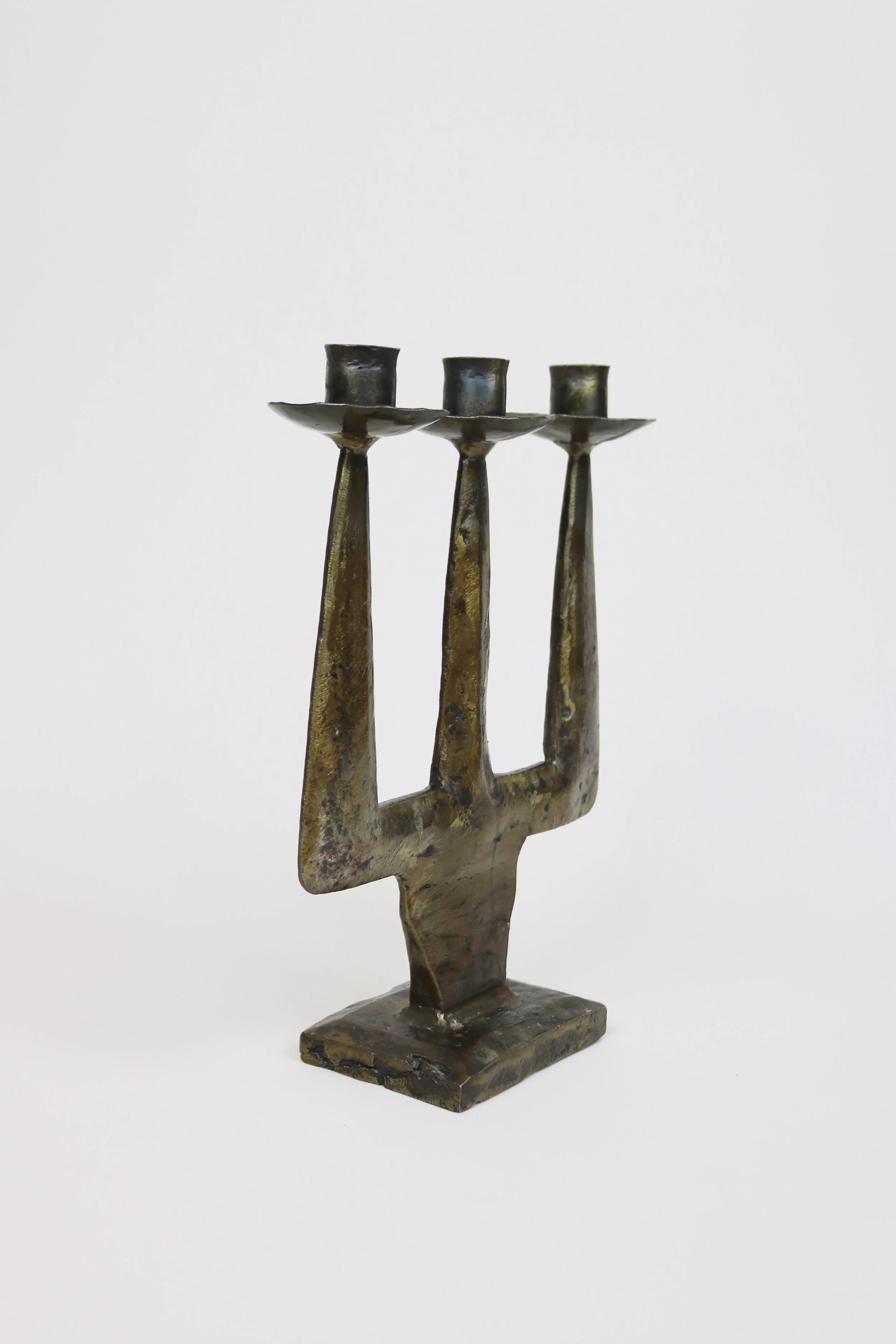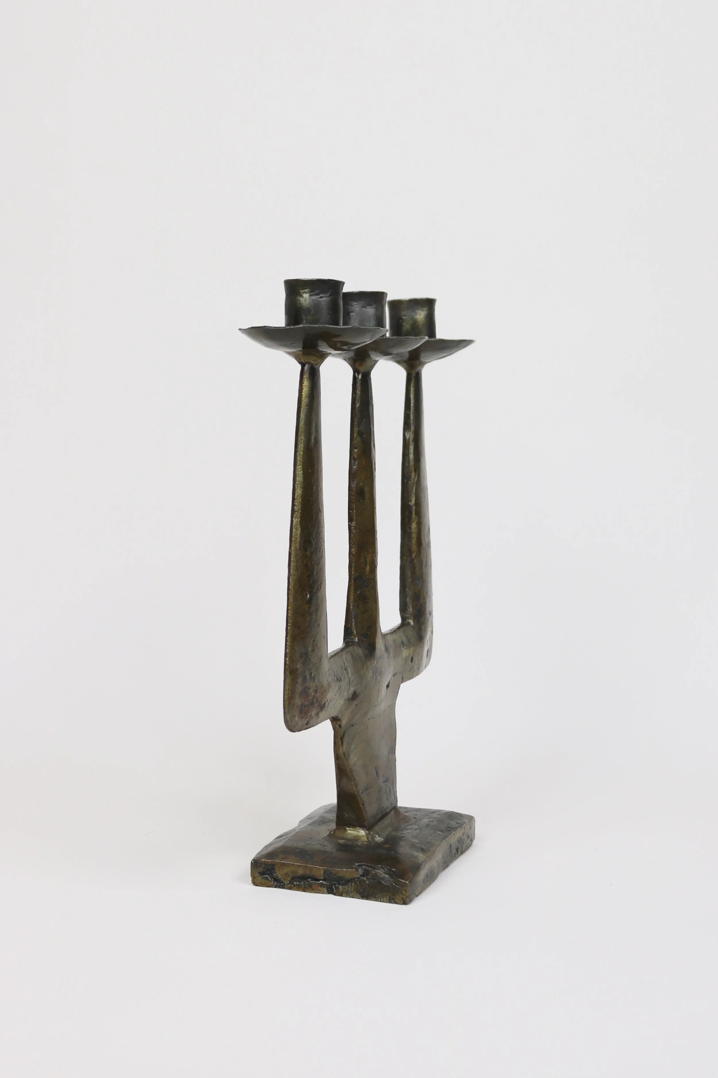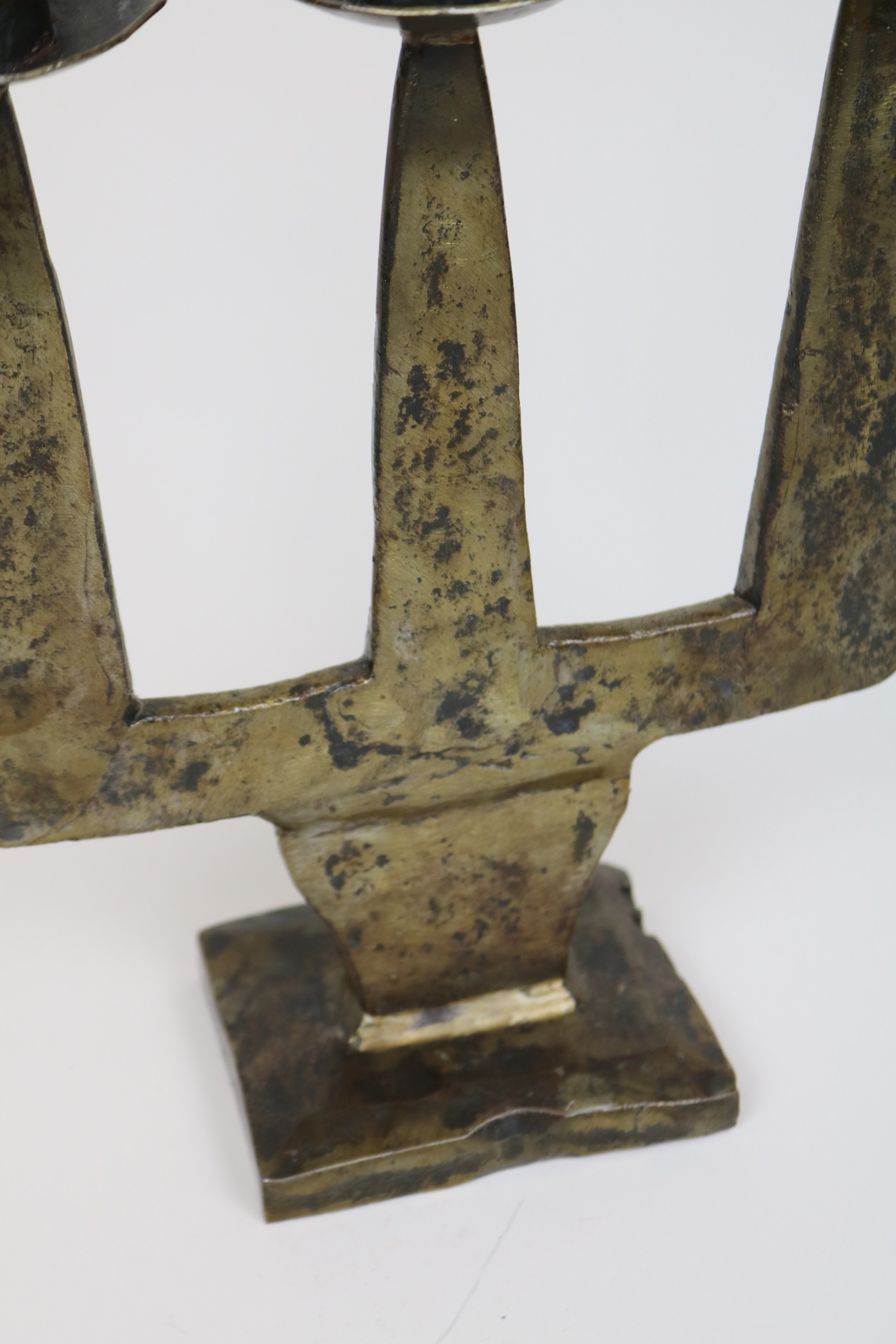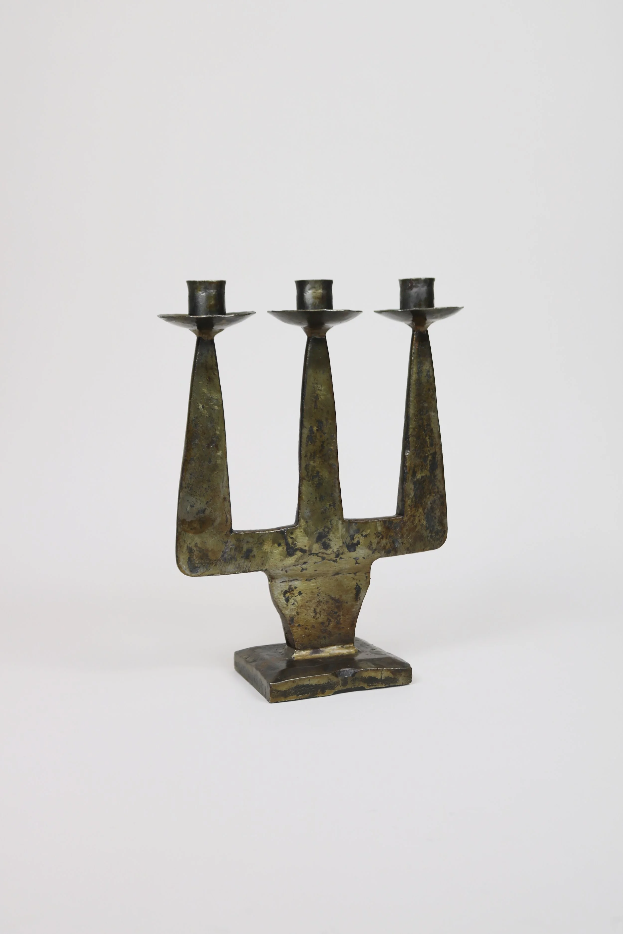 Archive › Heavy Metal Candelabra Image 1 of 6 Image 2 of 6 Image 3 of 6 Image 4 of 6 Image 5 of 6 Image 6 of 6 Heavy Metal Candelabra £295.00 sold out A solid and very heavy candelabra of bronze or brass with a flat body. Made in France in the mid 20th Century.H29cmW23cm Sold Out Added! A solid and very heavy candelabra of bronze or brass with a flat body. Made in France in the mid 20th Century.H29cmW23cm