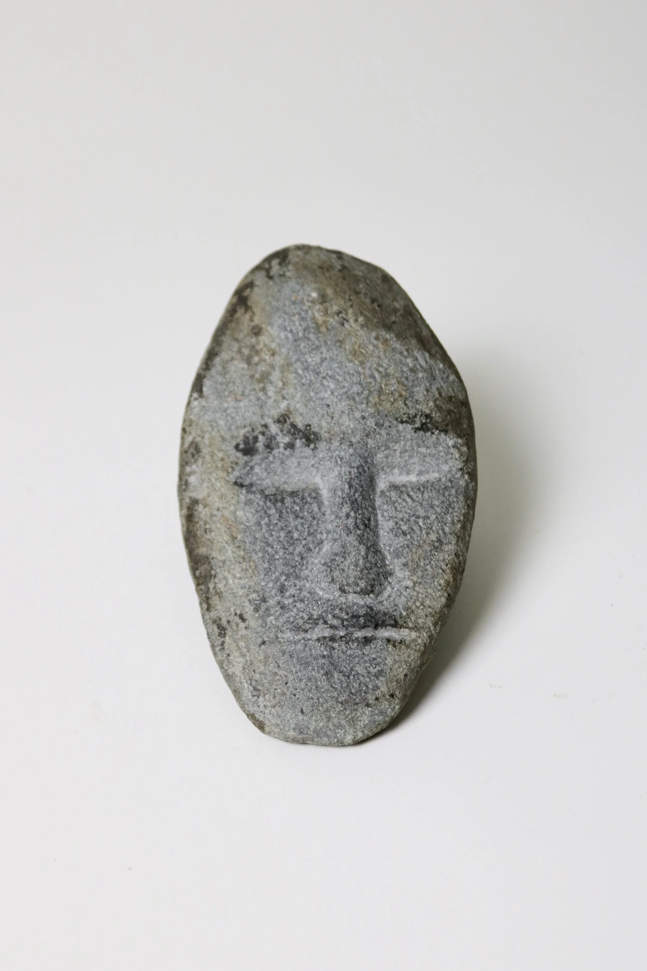 Archive › Carved Stone Face Image 1 of 4 Image 2 of 4 Image 3 of 4 Image 4 of 4 Carved Stone Face £125.00 sold out A stone with a face carved into it. A hook has been installed in the back for hanging.H 18cmW 10cm Sold Out Added! A stone with a face carved into it. A hook has been installed in the back for hanging.H 18cmW 10cm