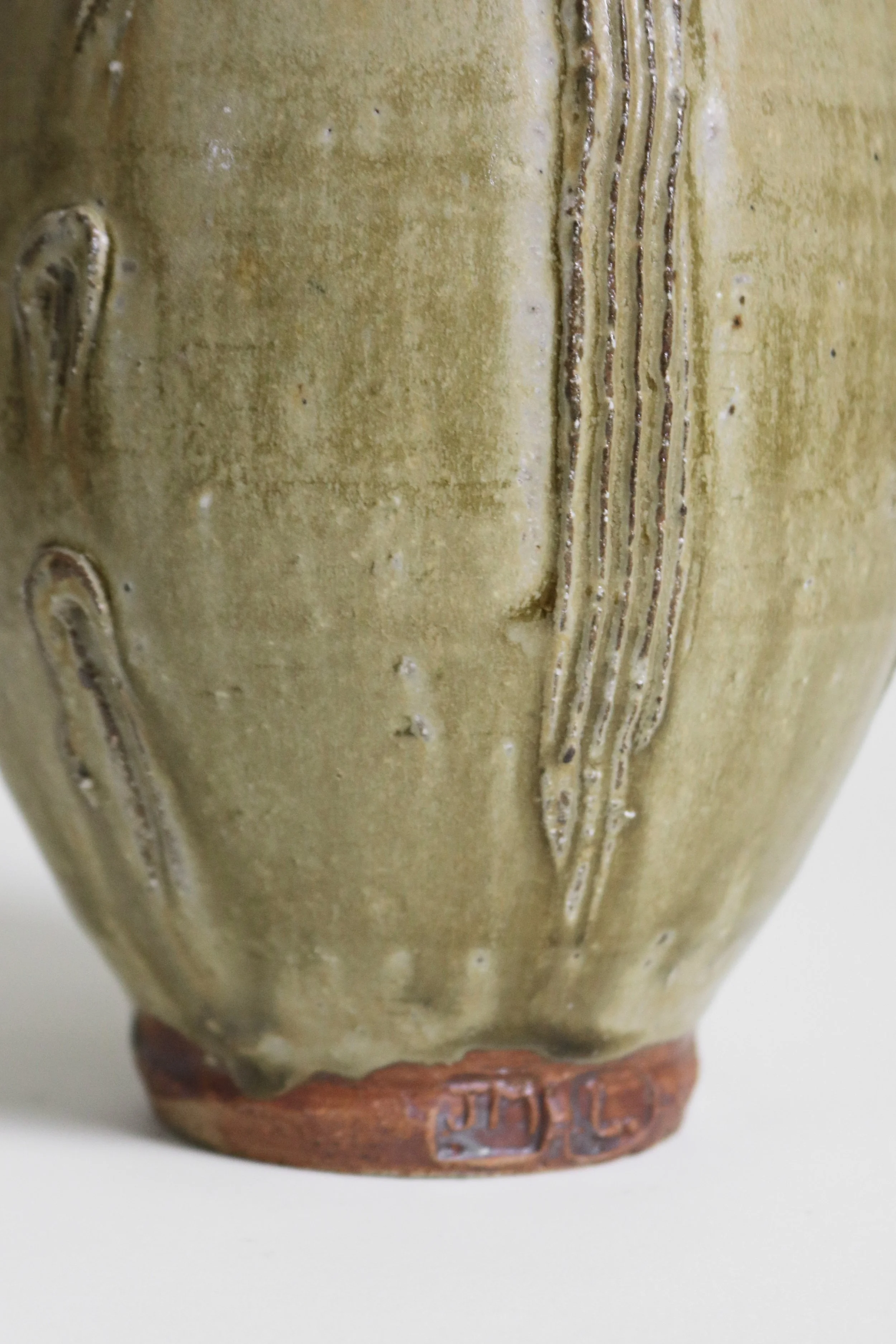 Archive › Jim Malone Vase Image 1 of 4 Image 2 of 4 Image 3 of 4 Image 4 of 4 Jim Malone Vase £265.00 sold out A stoneware bottle covered in a green ash glaze by British Potter Jim Malone.H 25cmD 18cm Sold Out Added! A stoneware bottle covered in a green ash glaze by British Potter Jim Malone.H 25cmD 18cm