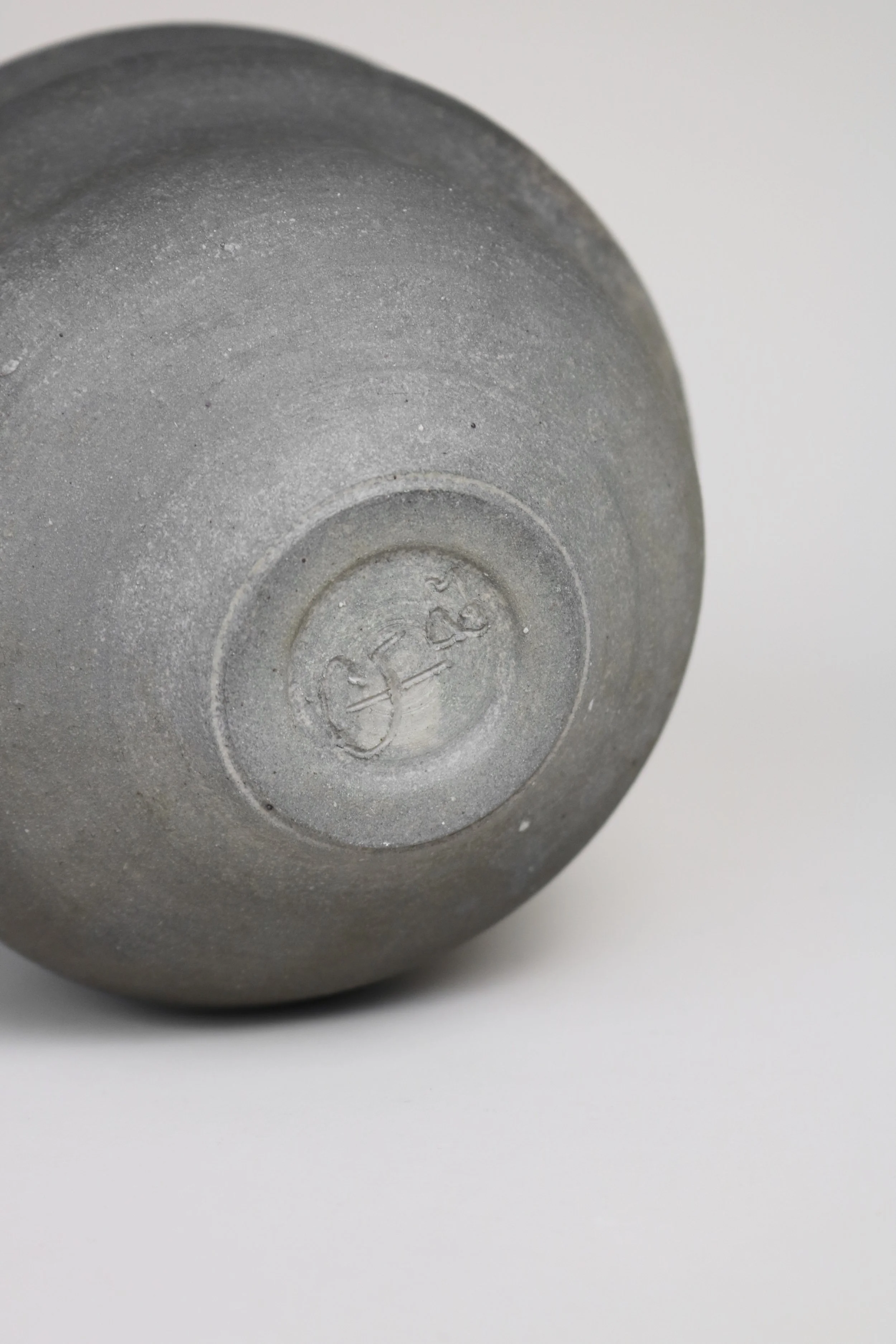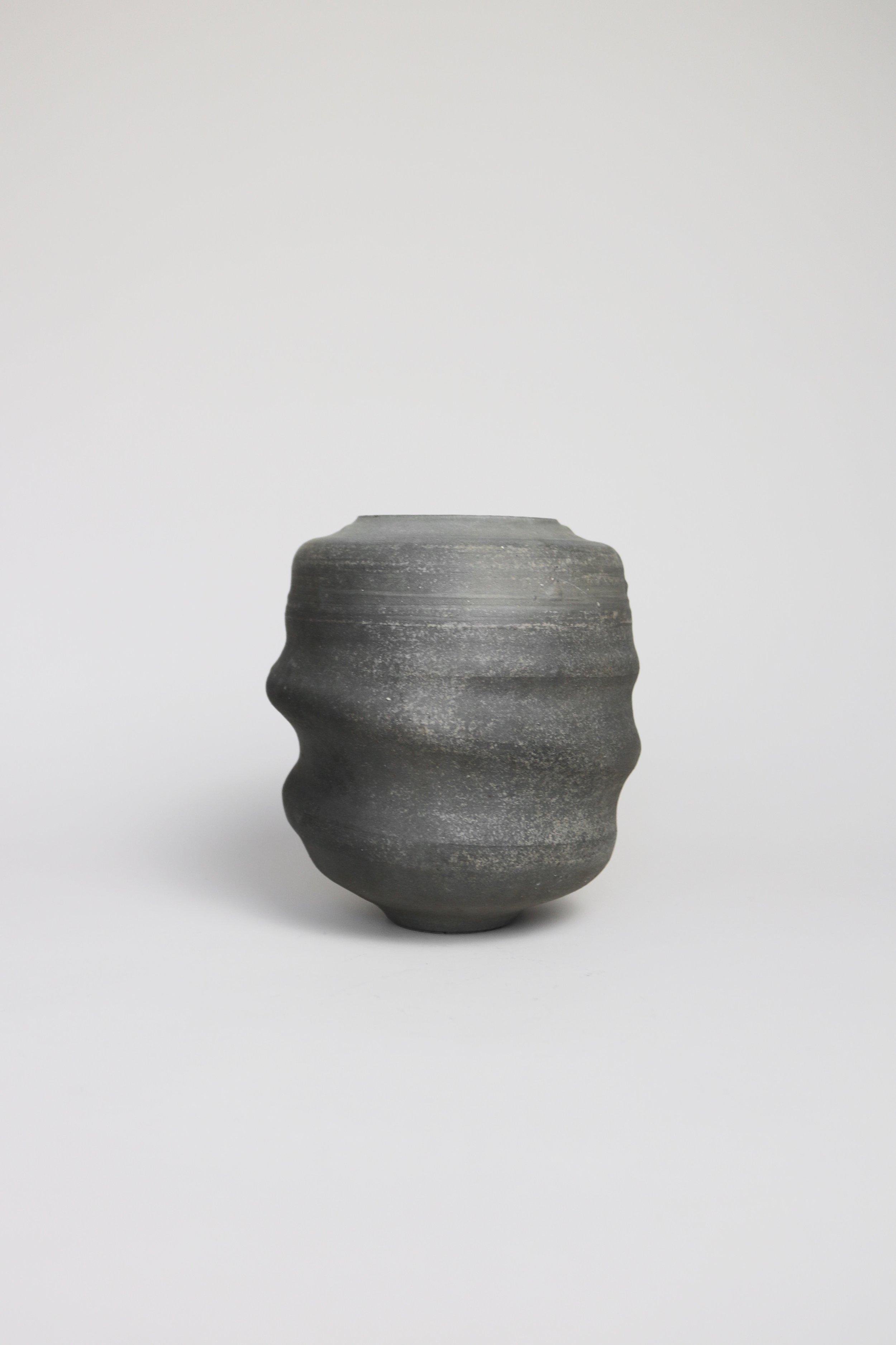 A studio pottery vase in a beautiful black clay. Textured to touch and skilfully thrown.
