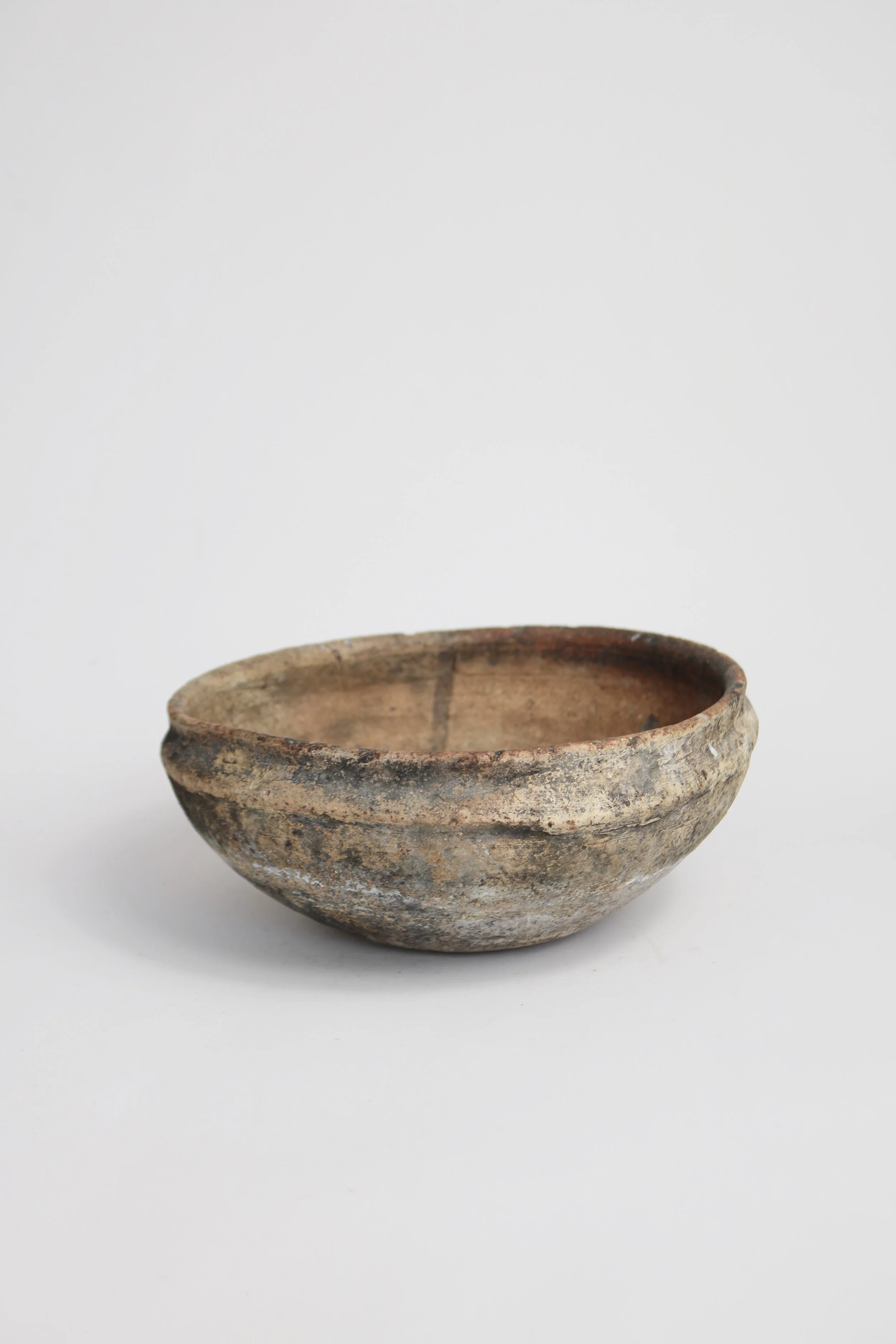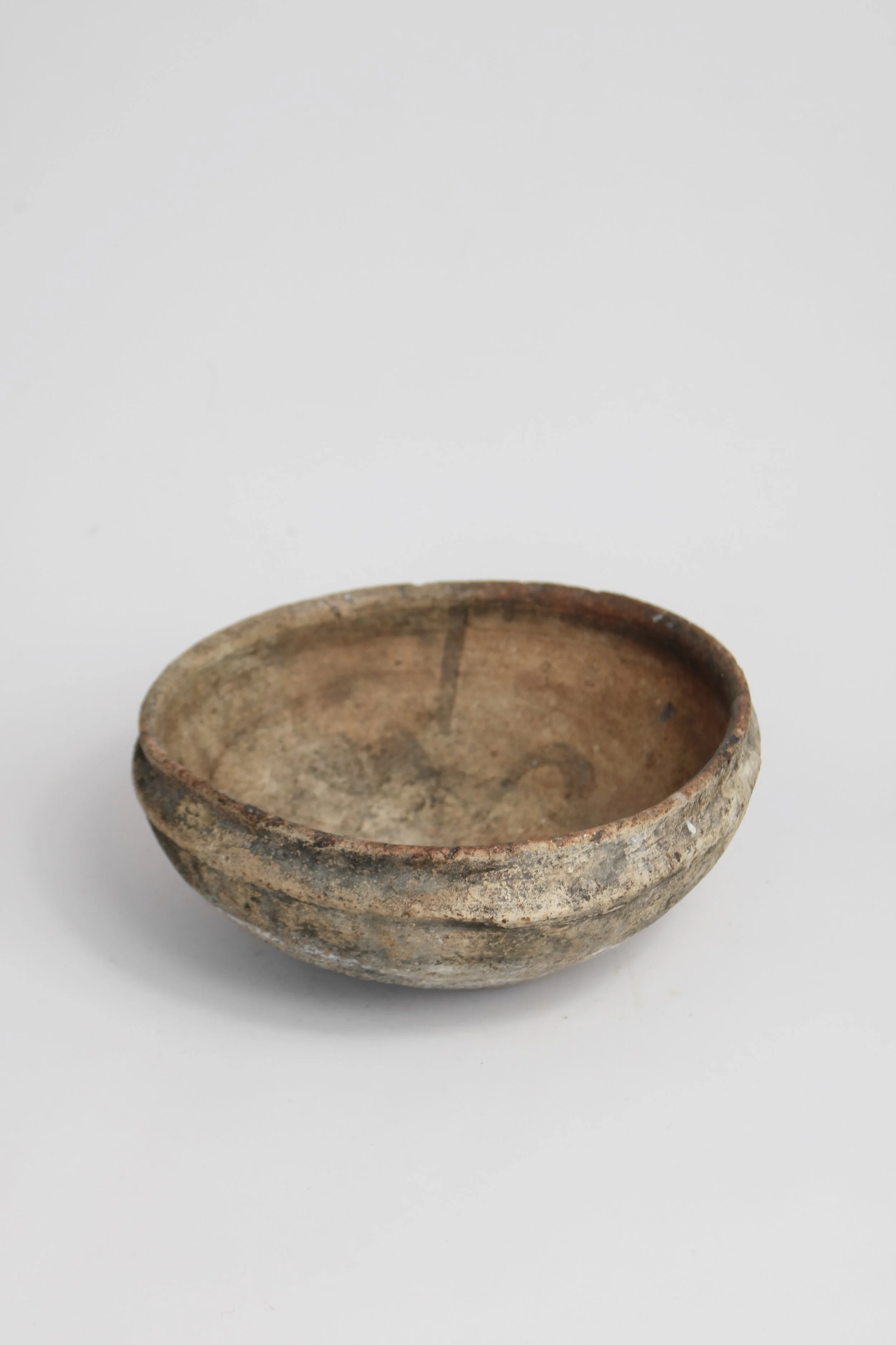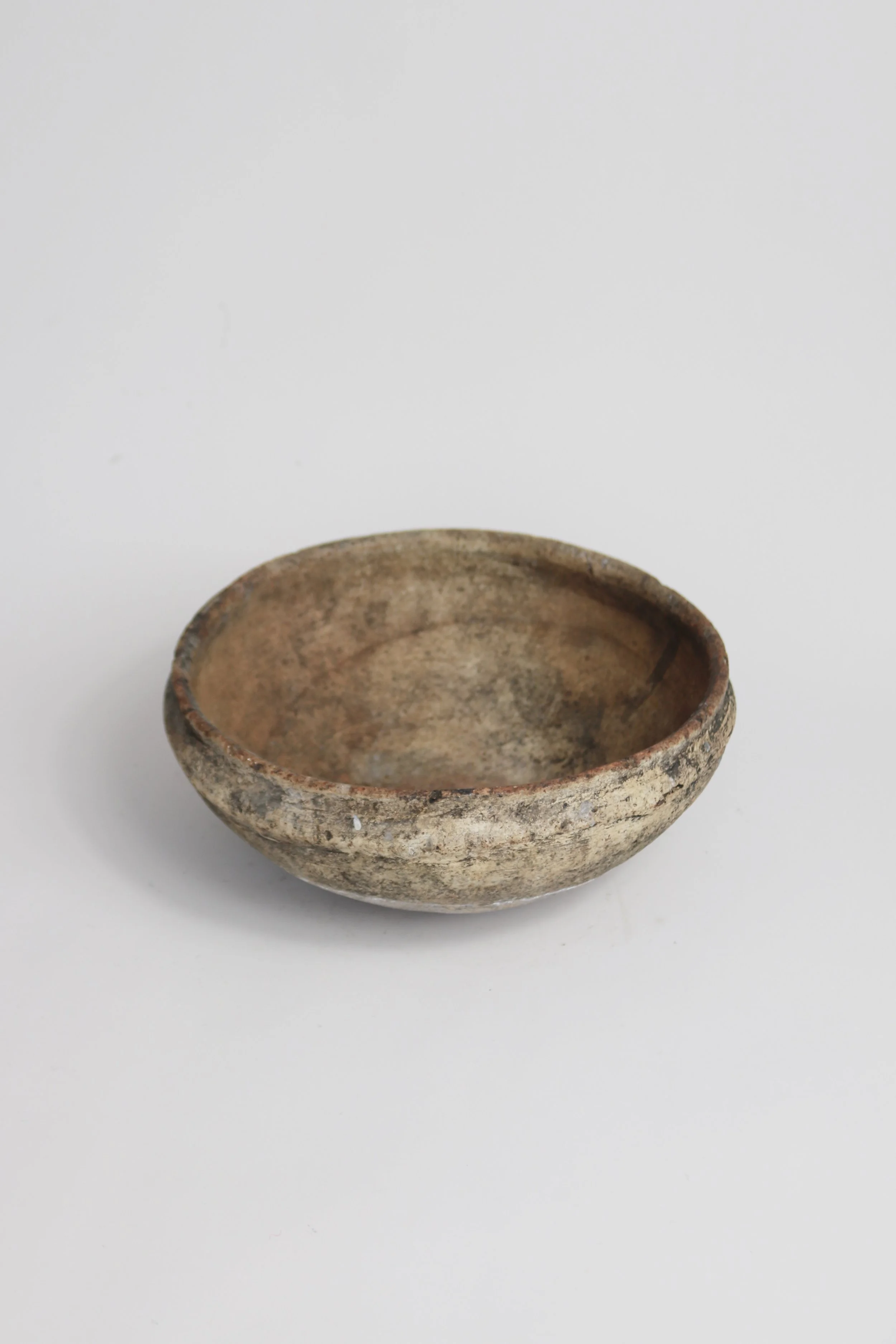 An antique bowl from North Africa, used for a long time as a functional utensil. Now its aged patina makes it a beautiful decorative piece.