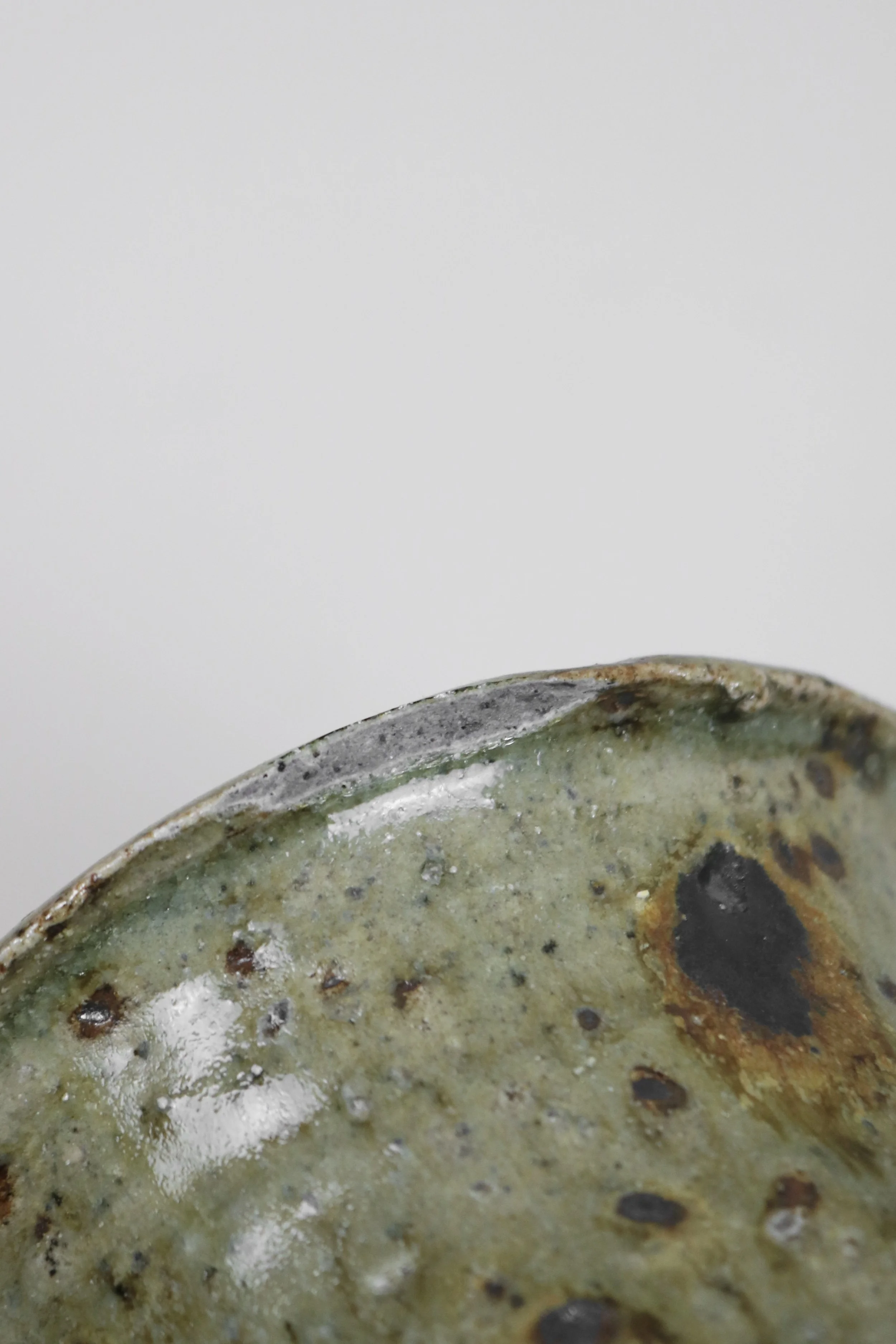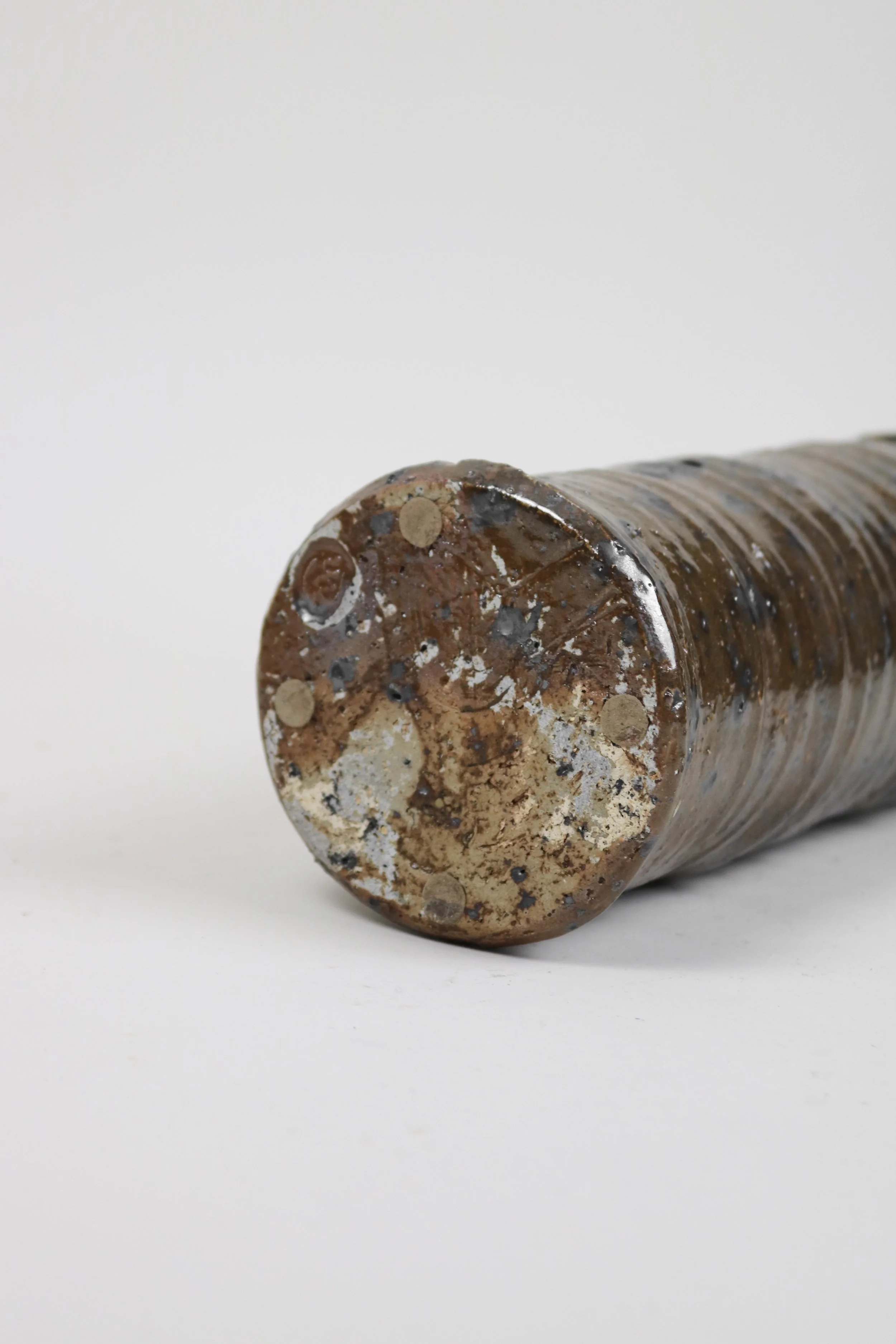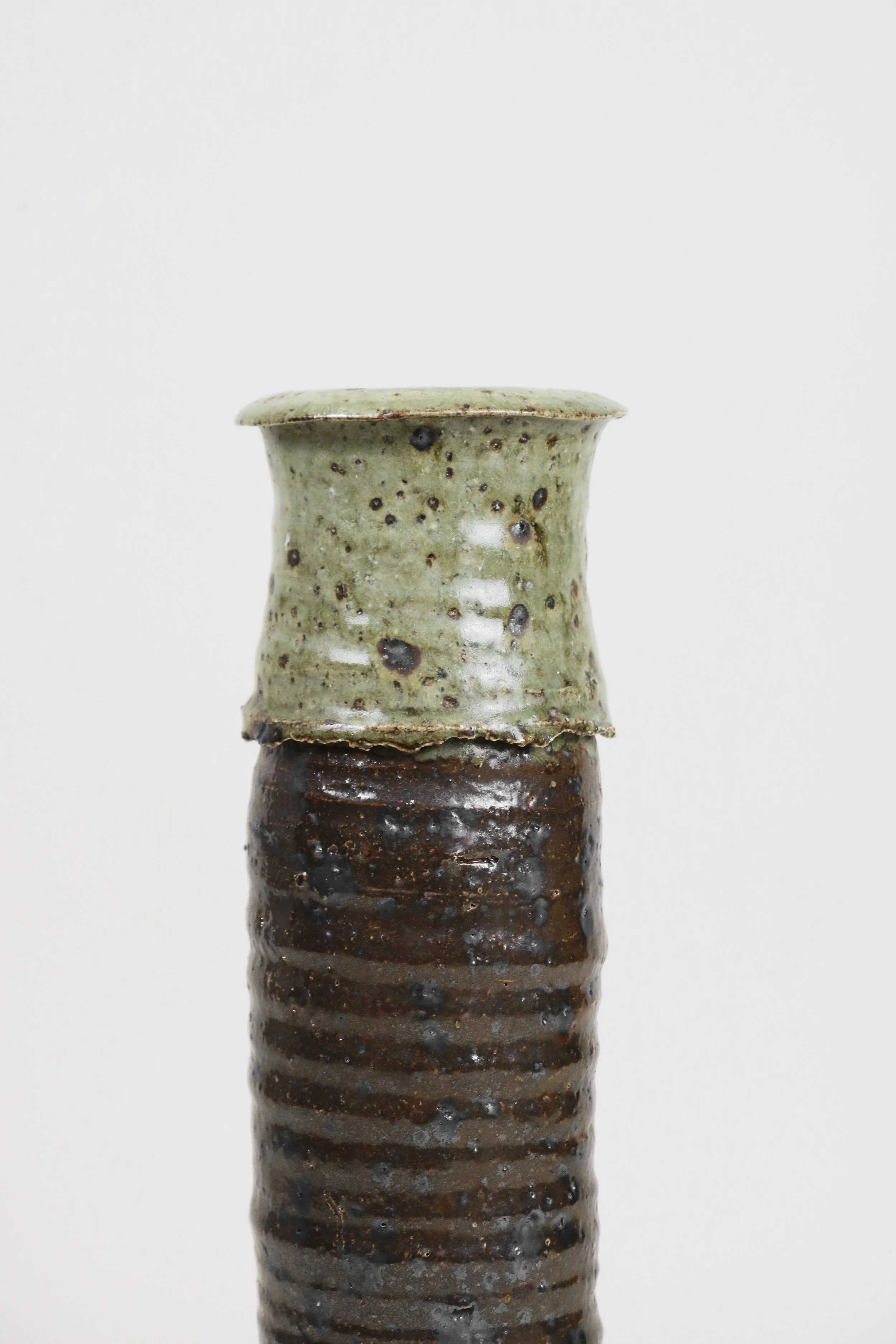 A British Studio pottery vase to hold long stem flowers. Hand-built with an oxidised glaze.