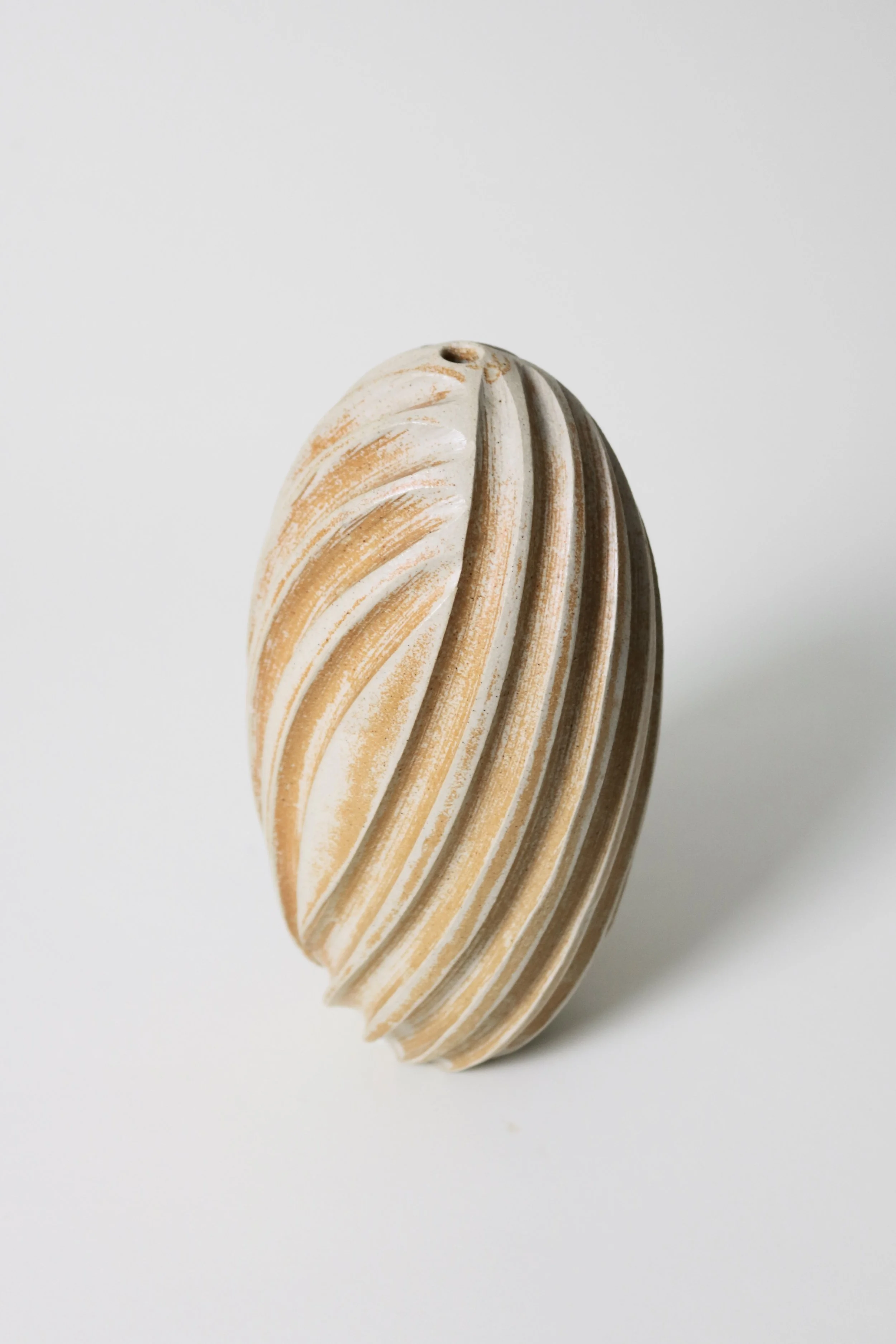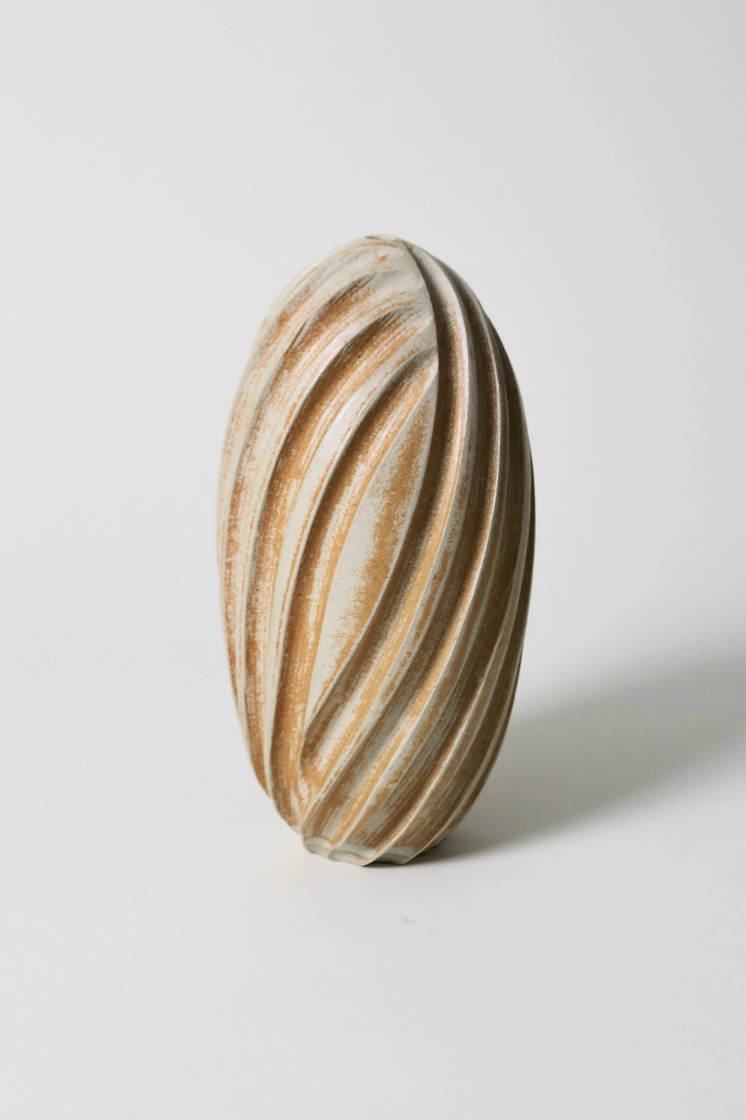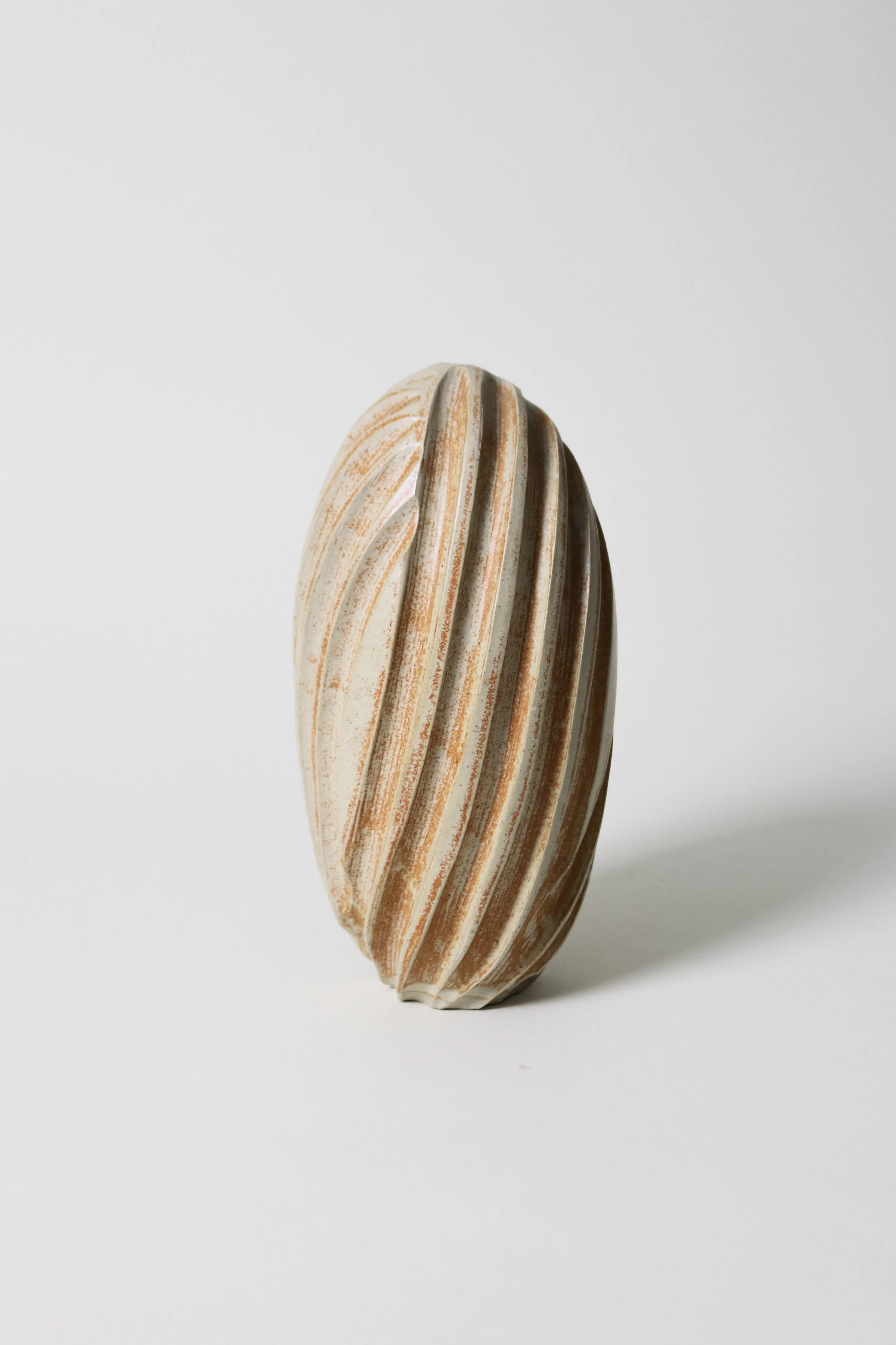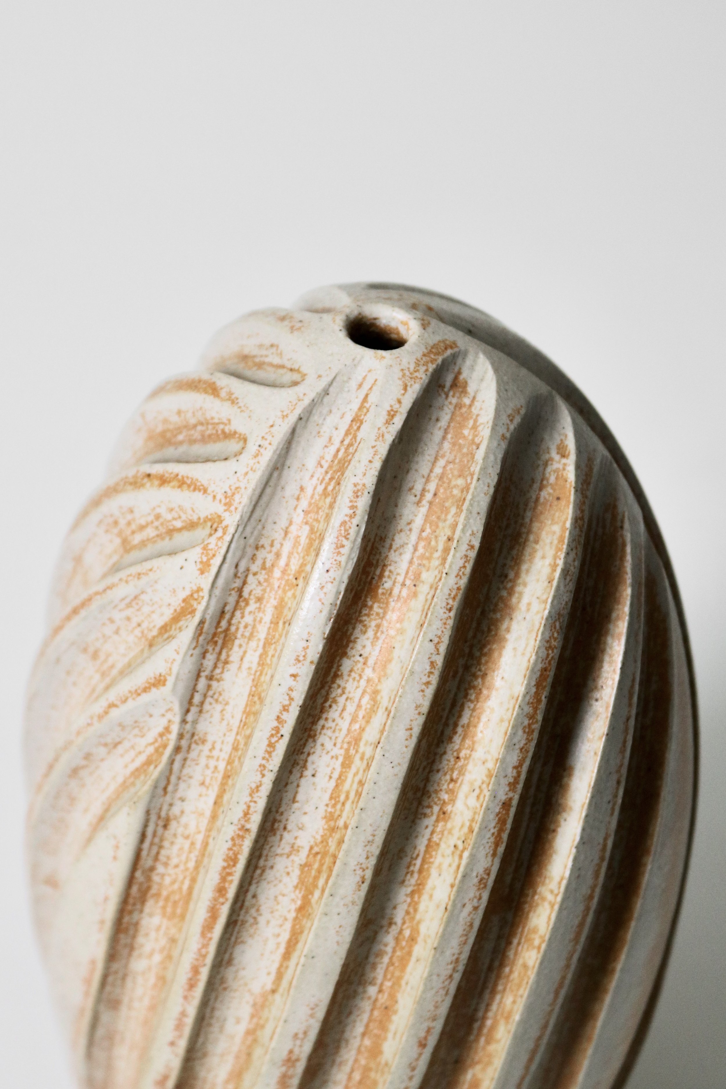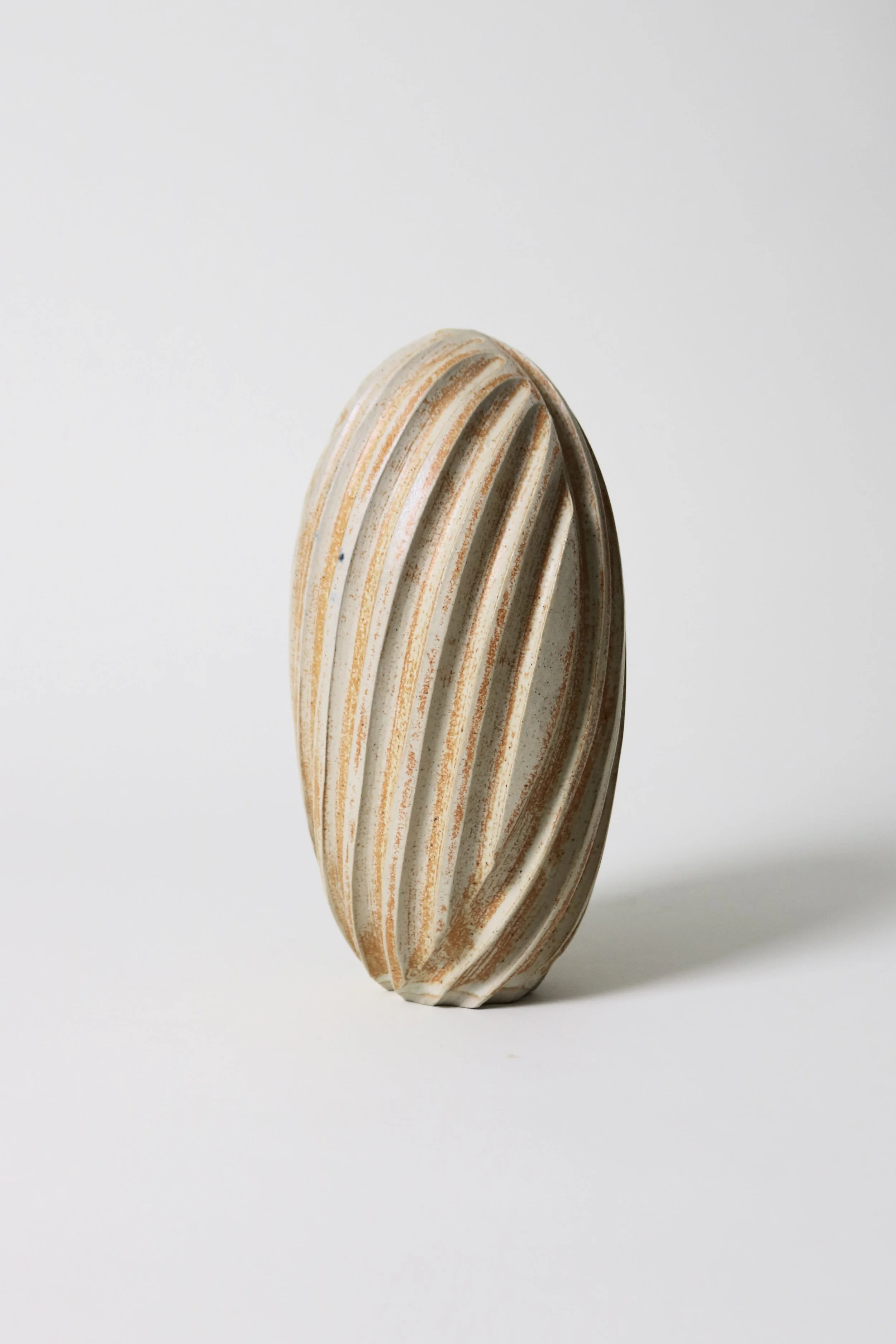 Sale › Usch Spettigue Studio Pottery Vase Image 1 of 7 Image 2 of 7 Image 3 of 7 Image 4 of 7 Image 5 of 7 Image 6 of 7 Image 7 of 7 Usch Spettigue Studio Pottery Vase Sale Price: £75.00 Original Price: £135.00 An ovoid vase with a small single stem hole and a deep fluted exterior, by studio potter Usch Spettigue. H 26cmD 13cm Add To Cart Added! An ovoid vase with a small single stem hole and a deep fluted exterior, by studio potter Usch Spettigue. H 26cmD 13cm