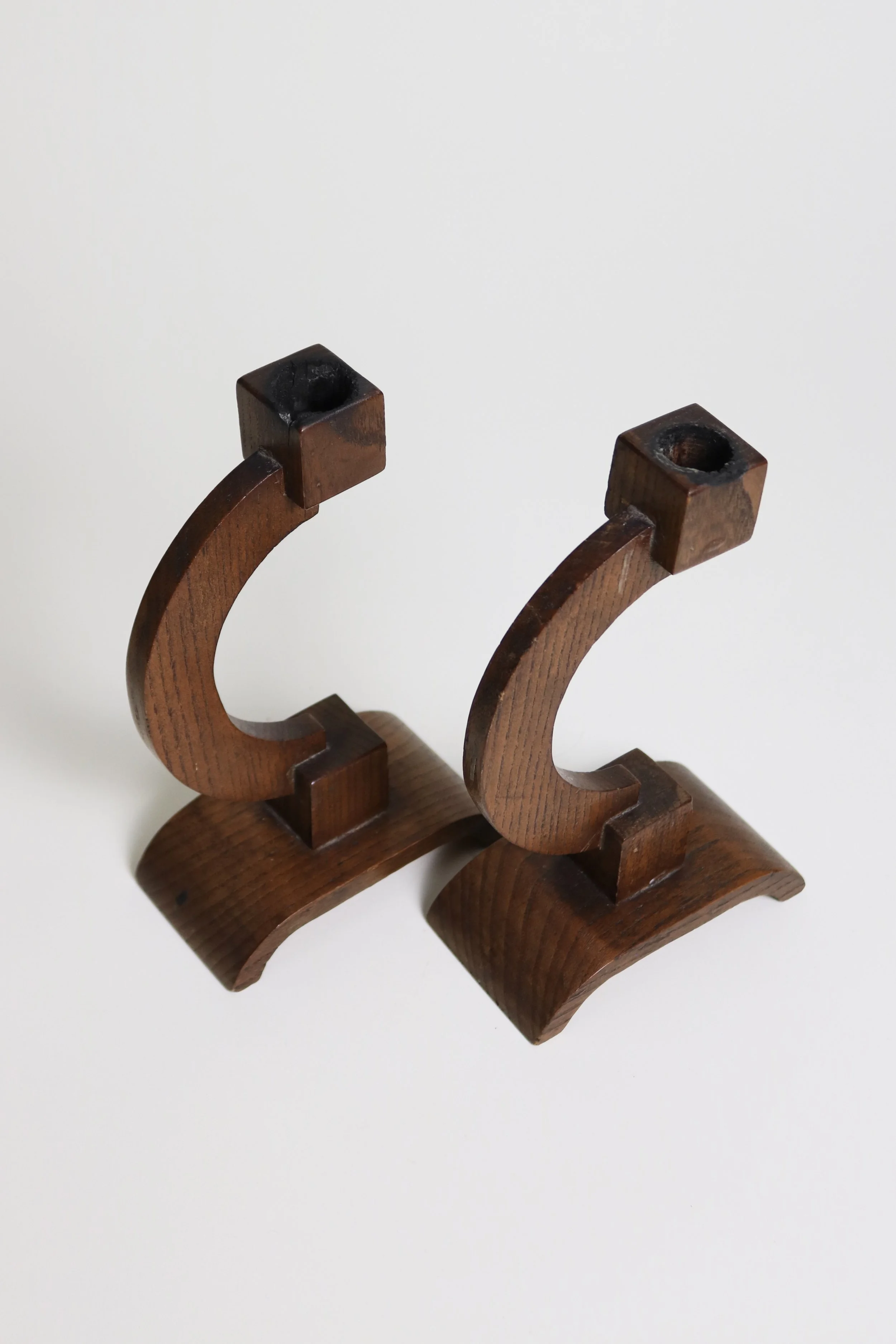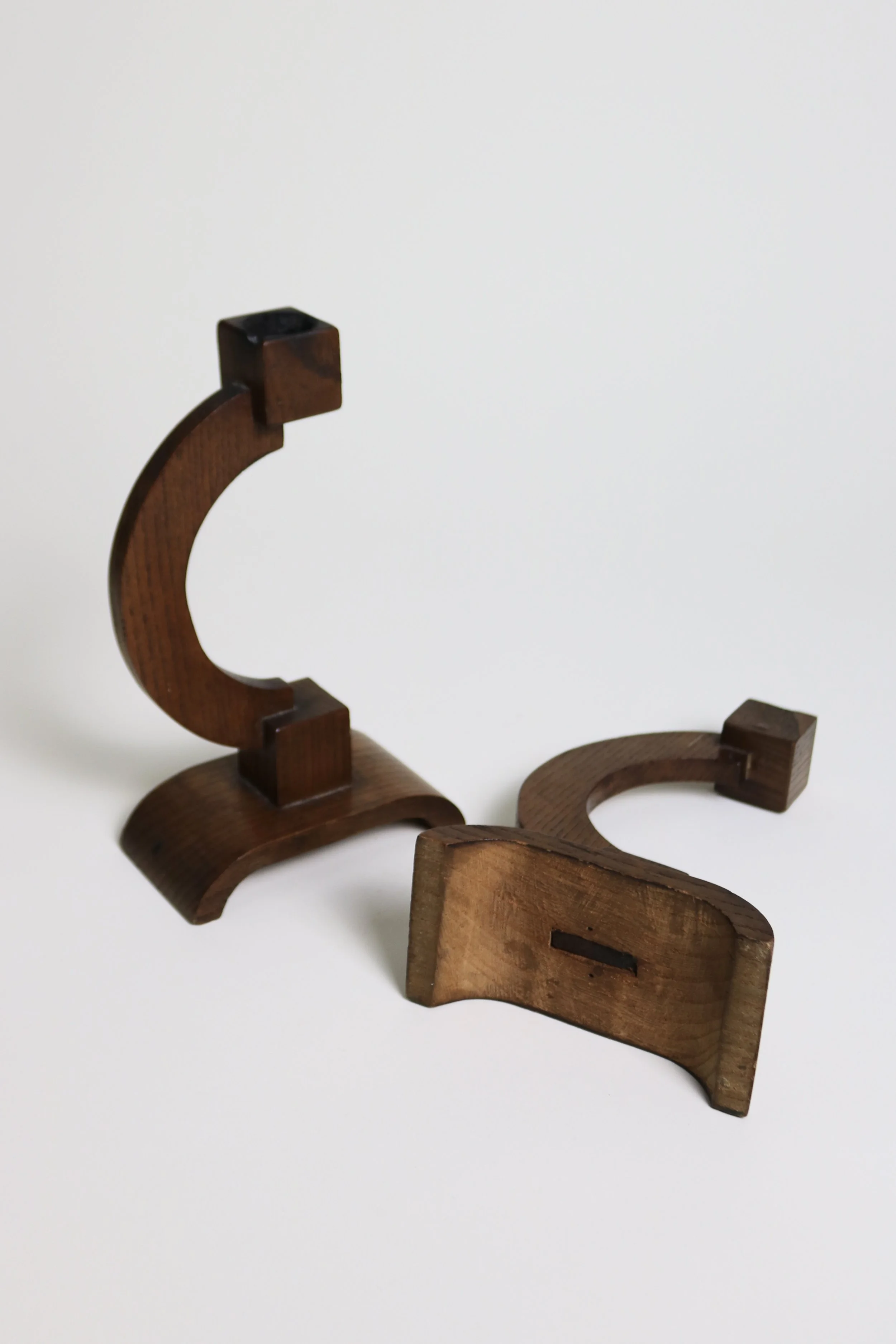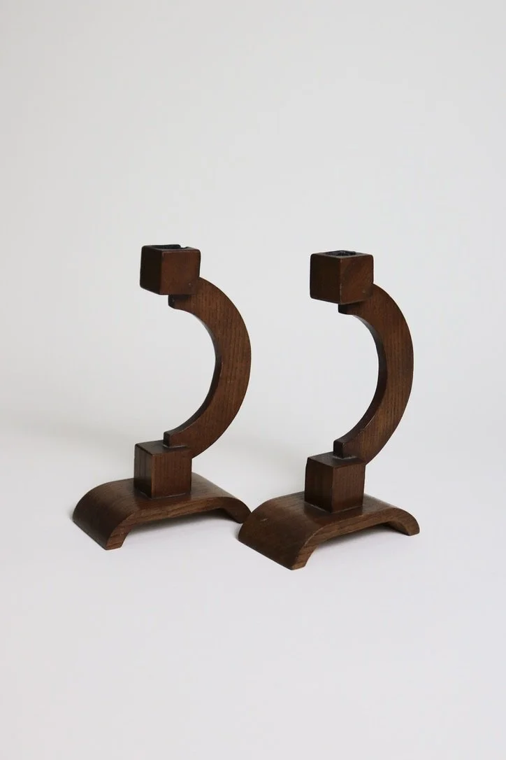 Sale › Wooden Candlestick Pair Image 1 of 6 Image 2 of 6 Image 3 of 6 Image 4 of 6 Image 5 of 6 Image 6 of 6 Wooden Candlestick Pair Sale Price: £35.00 Original Price: £105.00 A well made candlestick pair.Holes of the candle holders have been burnt and chard.H 23cmW 13cm Add To Cart Added! A well made candlestick pair.Holes of the candle holders have been burnt and chard.H 23cmW 13cm